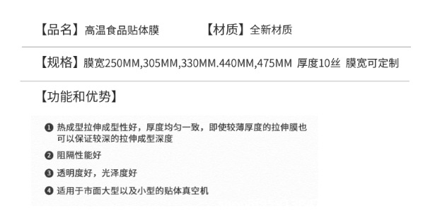 牛排冷鲜肉三文鱼海参贴体包装专用薄膜耐穿刺中高阻隔贴体包装膜