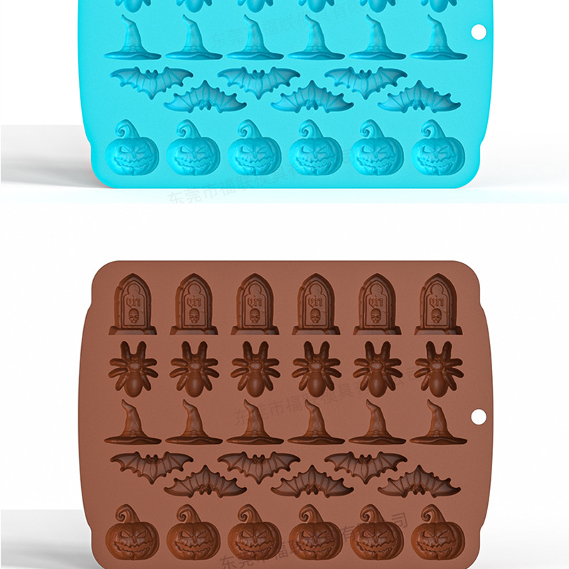 2024新款万圣节南瓜装饰品搞怪女巫帽巧克力模具创意手工滴胶模具