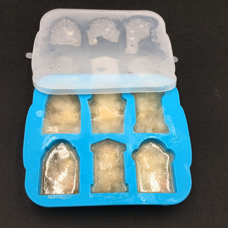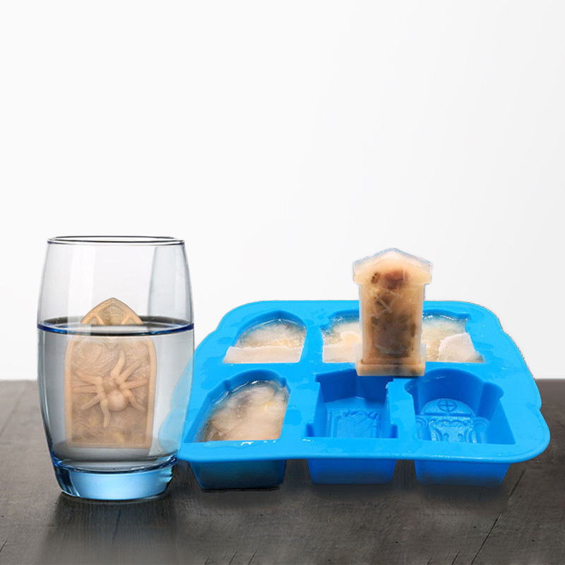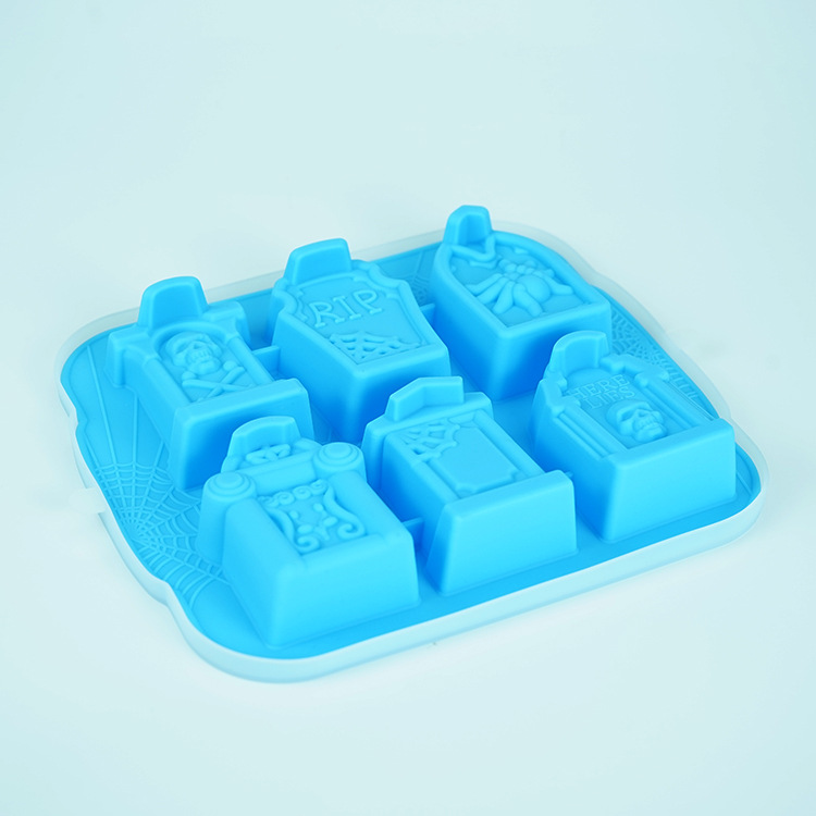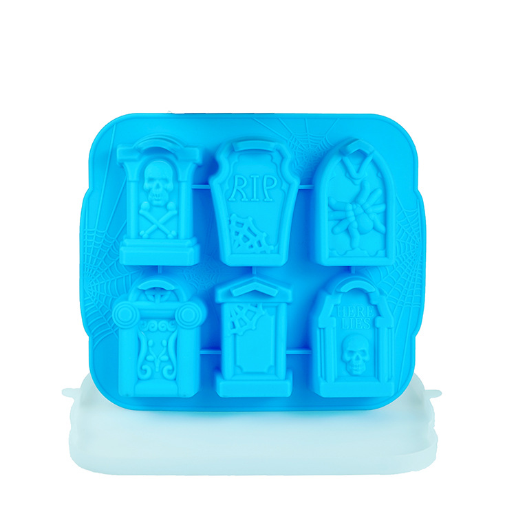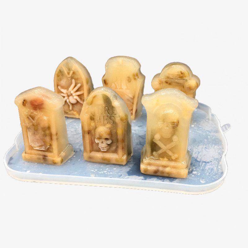 万圣节礼品硅胶6连墓碑冰格硅胶冰格模具复活节恐怖墓碑冰模带盖