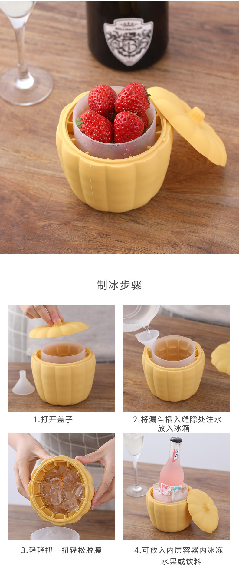跨境爆款南瓜冰桶多冰粒硅胶冰块盒37格冰格双层威士忌模具冰模