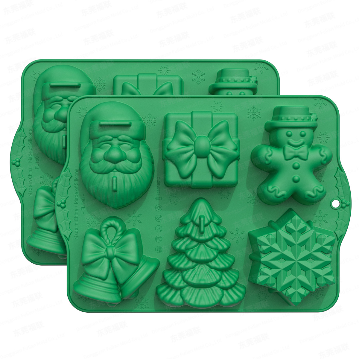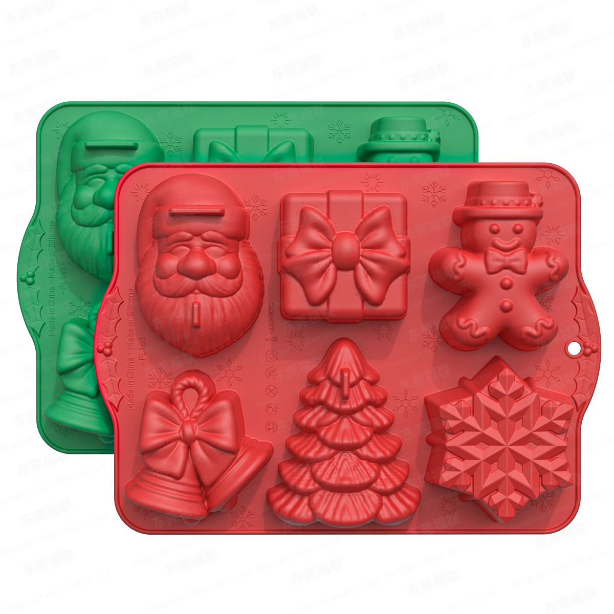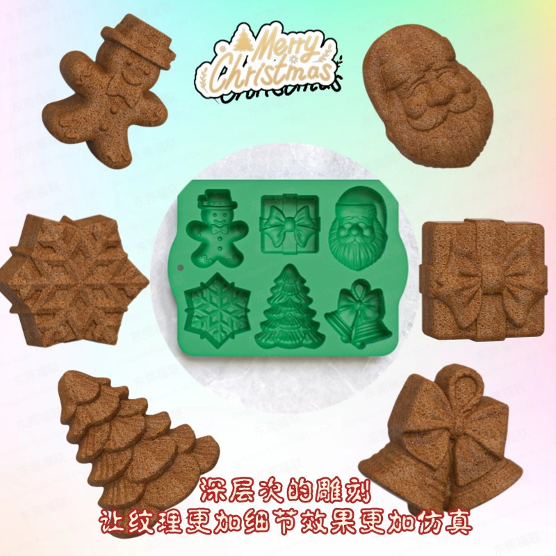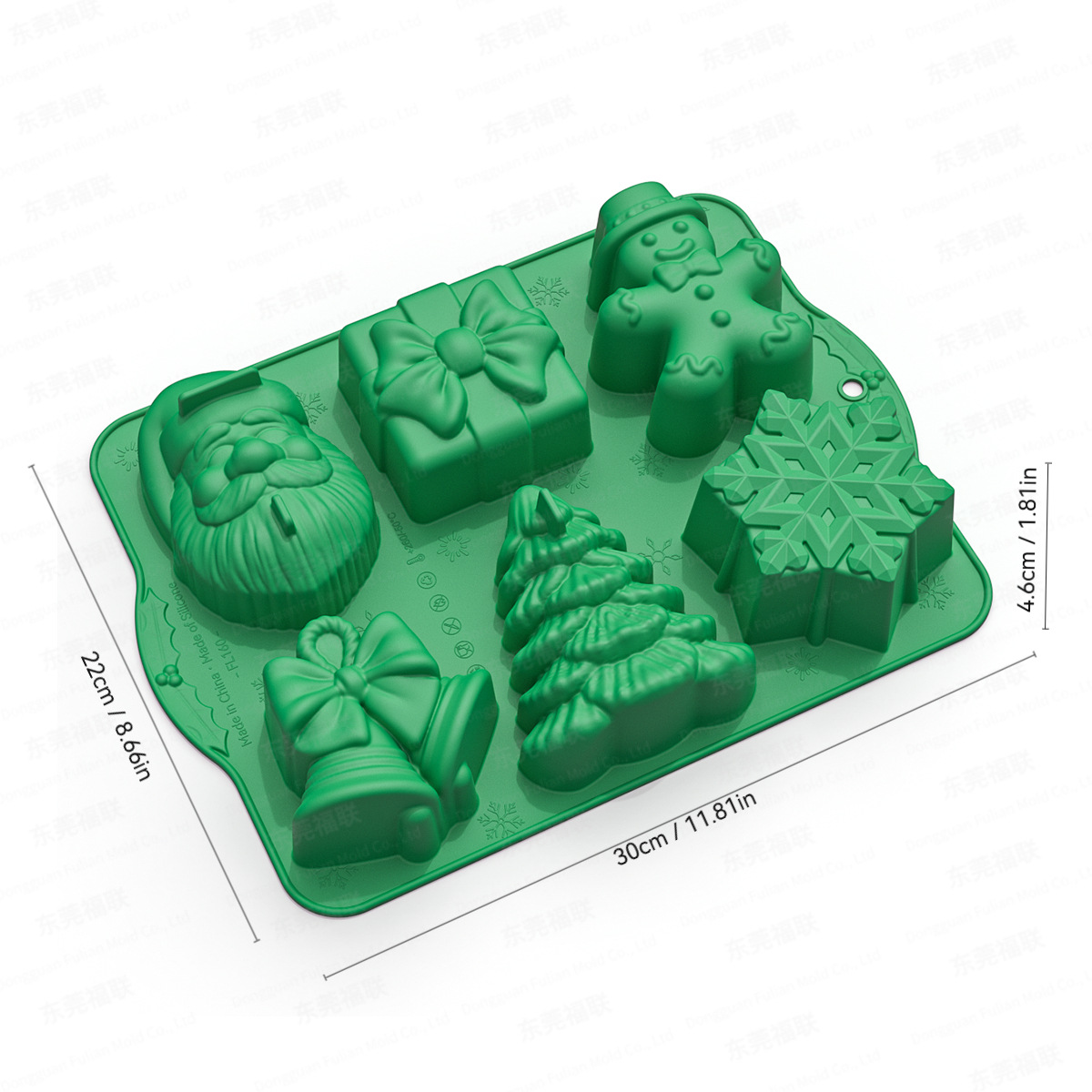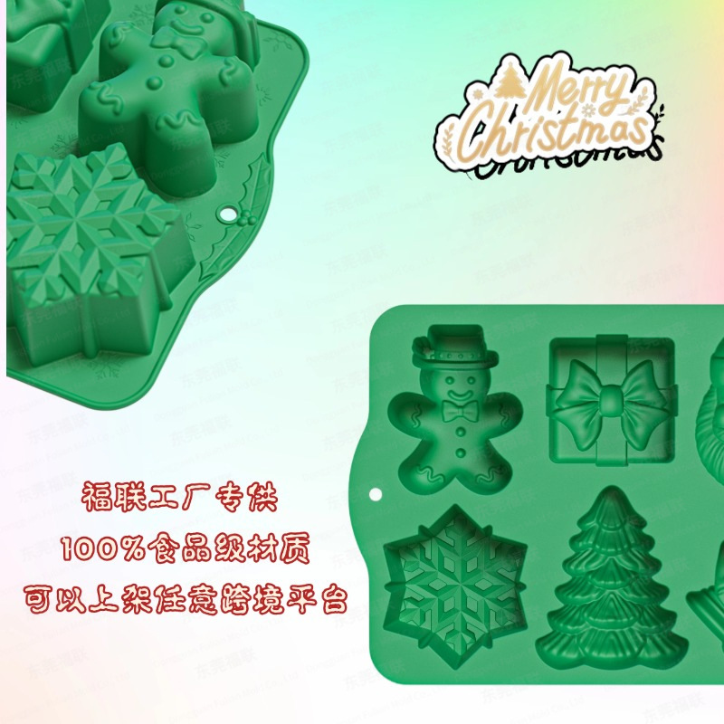 福联跨境新品圣诞节蛋糕模具6格圣诞树模姜饼人饼干源头工厂硅胶