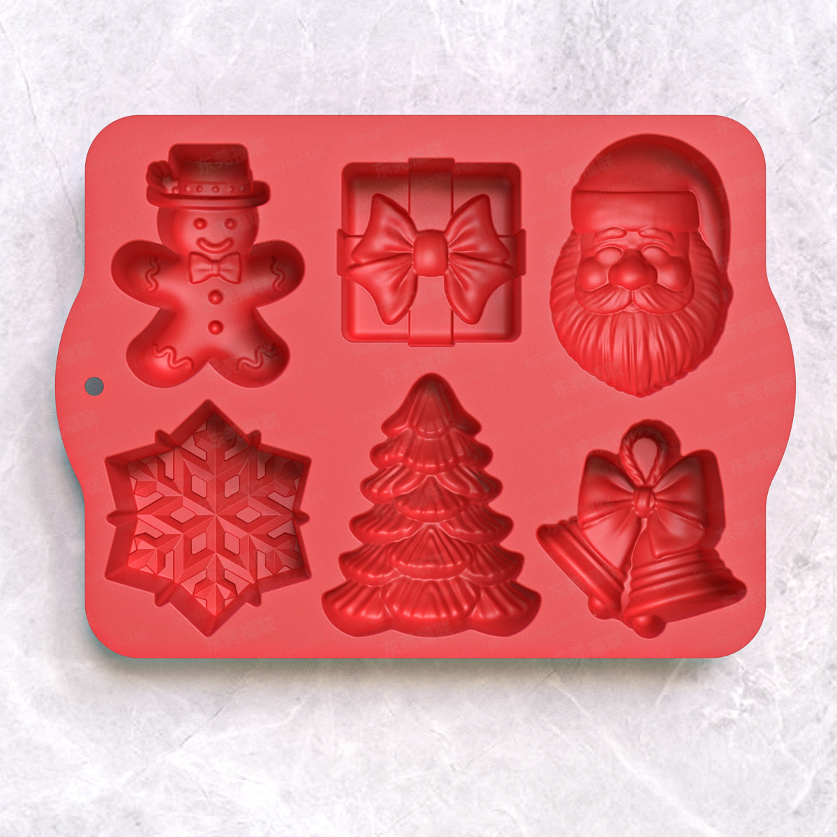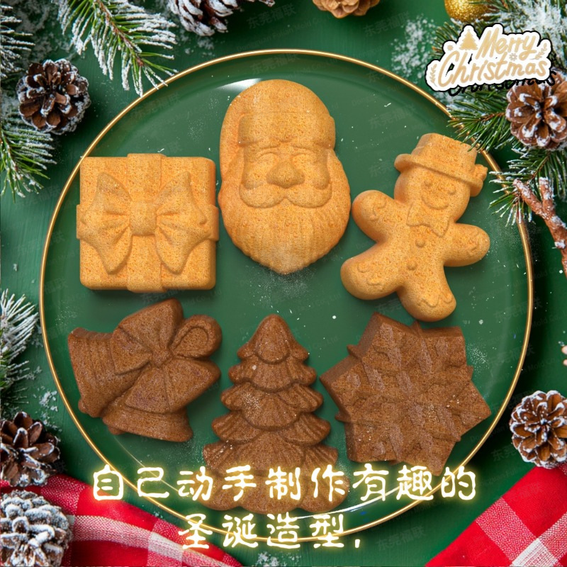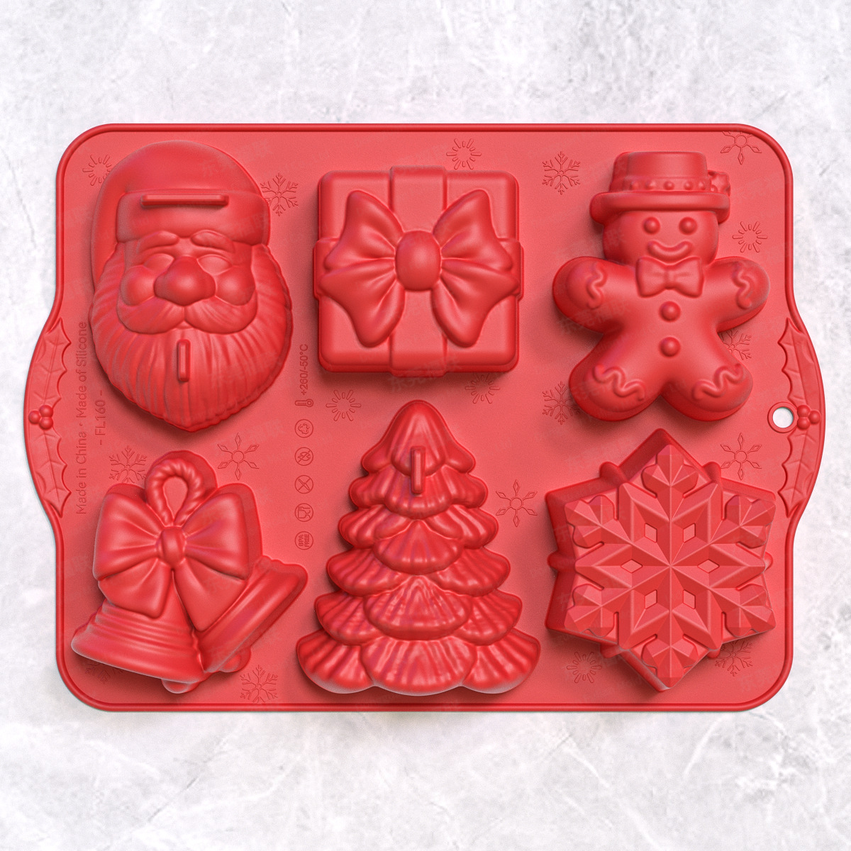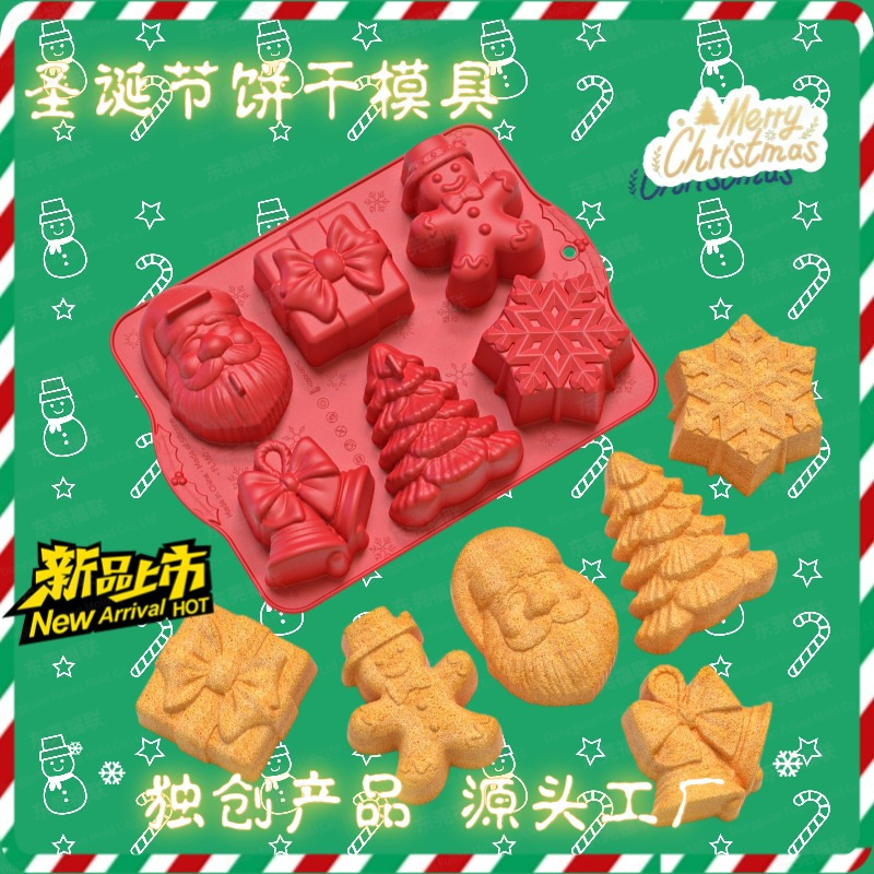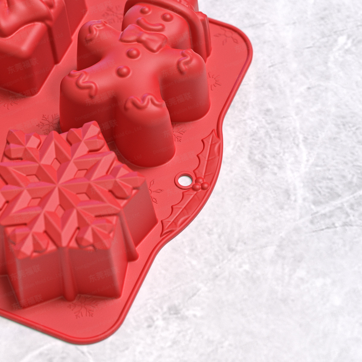 福联跨境新品圣诞节蛋糕模具6格圣诞树模姜饼人饼干源头工厂硅胶