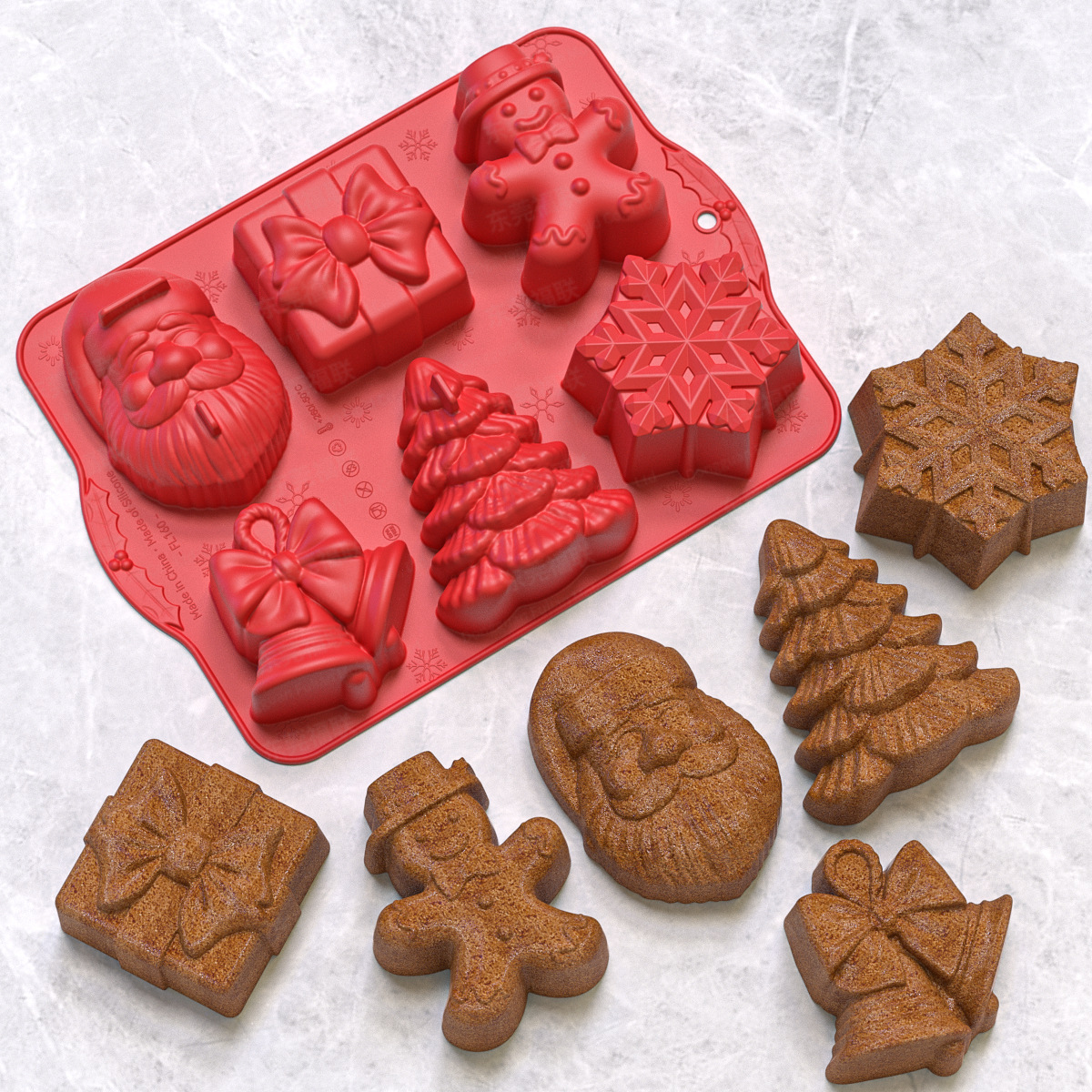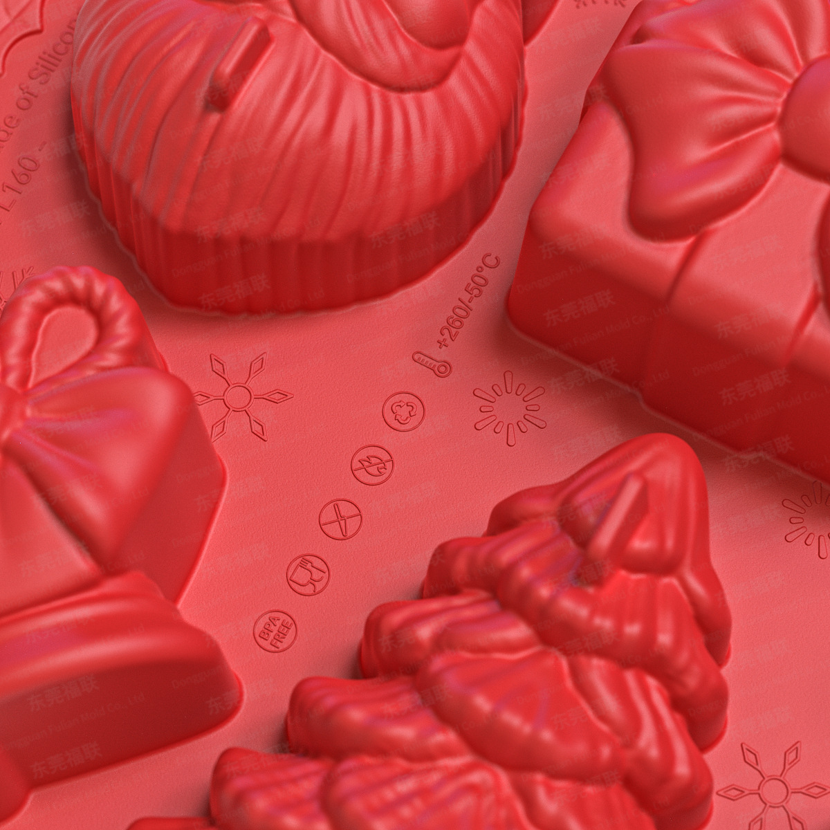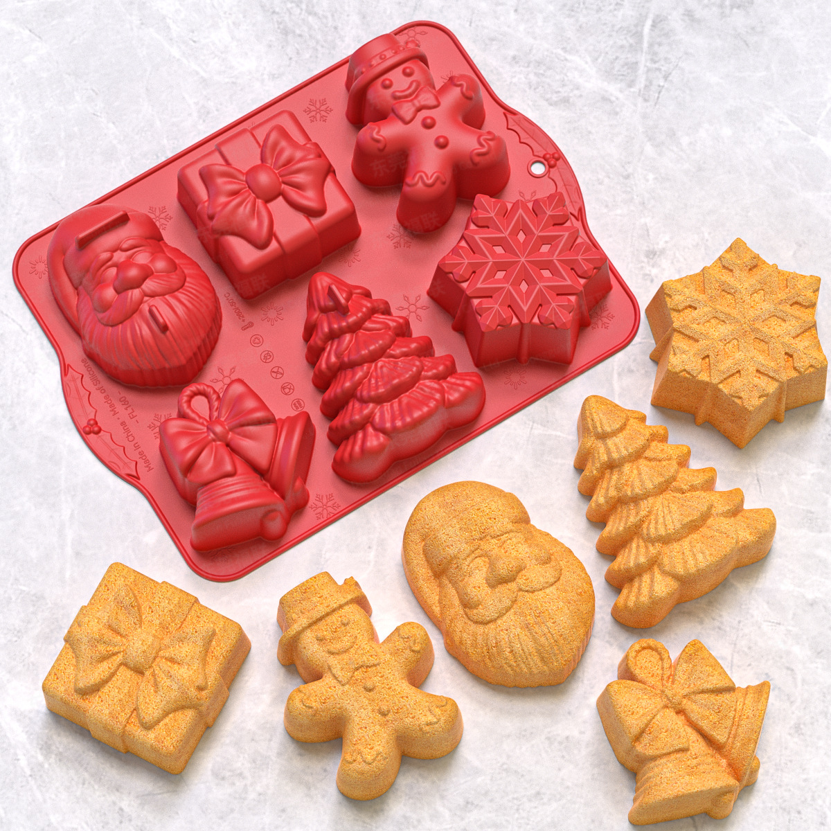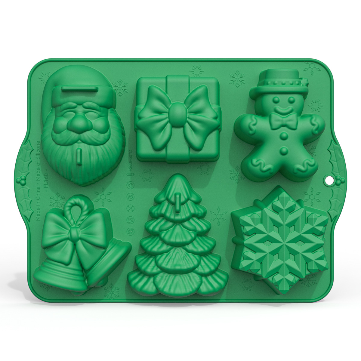 福联跨境新品圣诞节蛋糕模具6格圣诞树模姜饼人饼干源头工厂硅胶