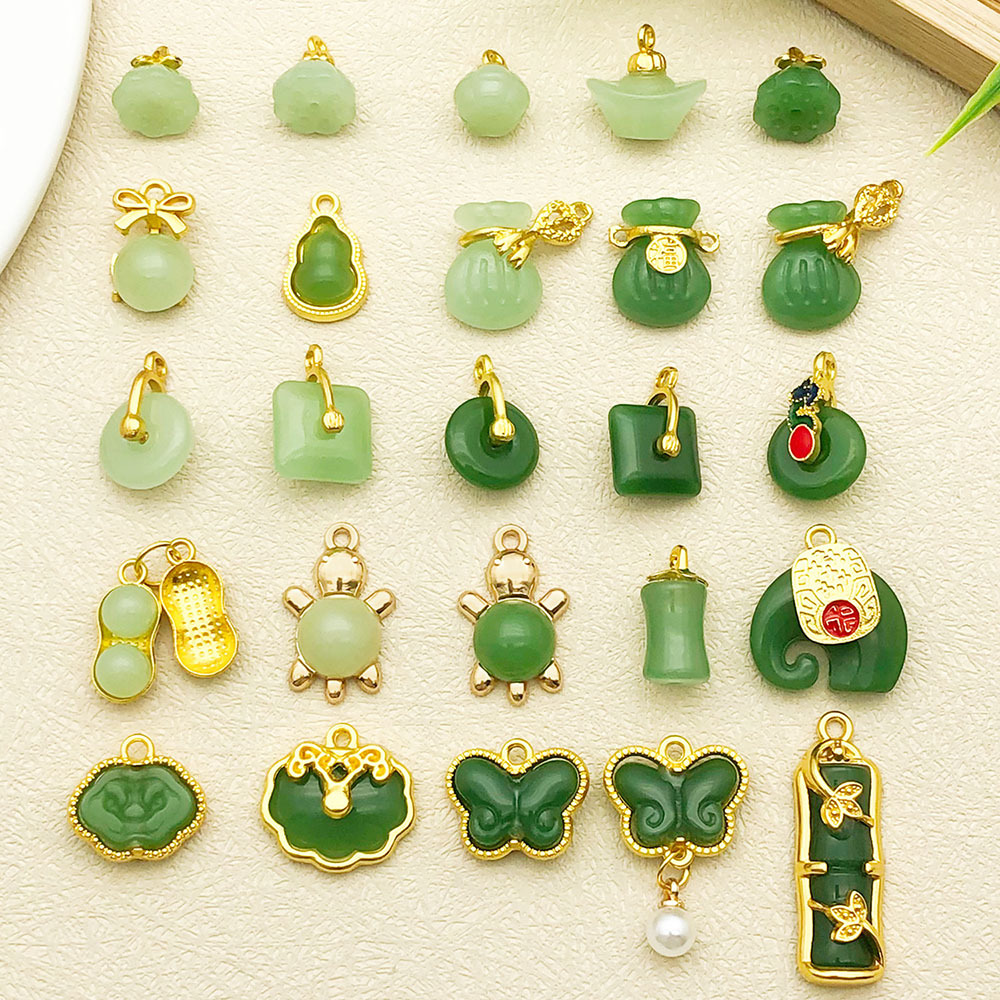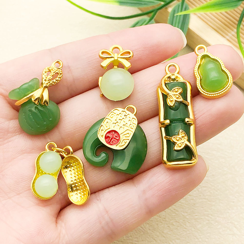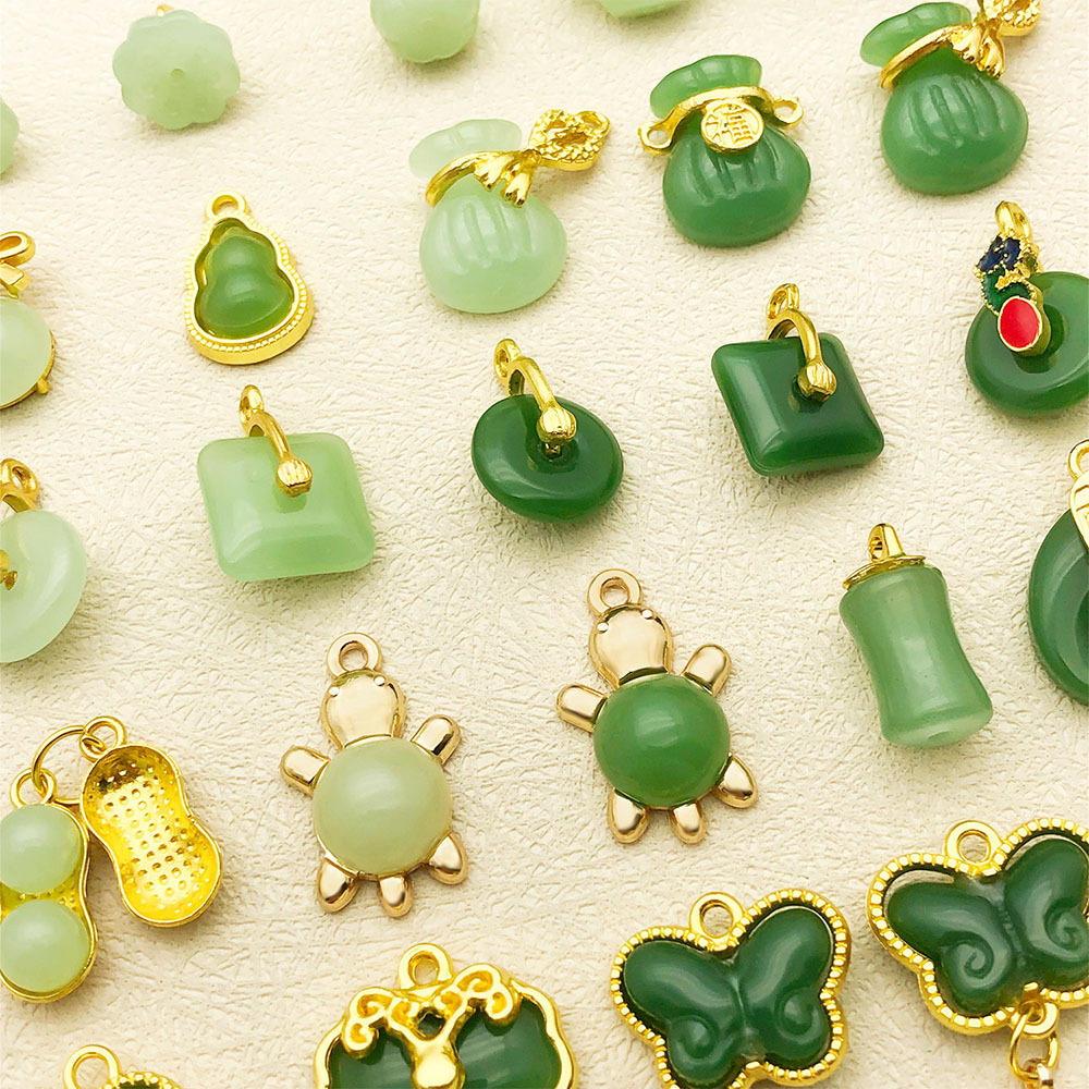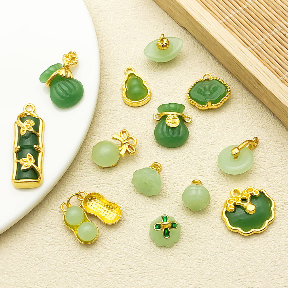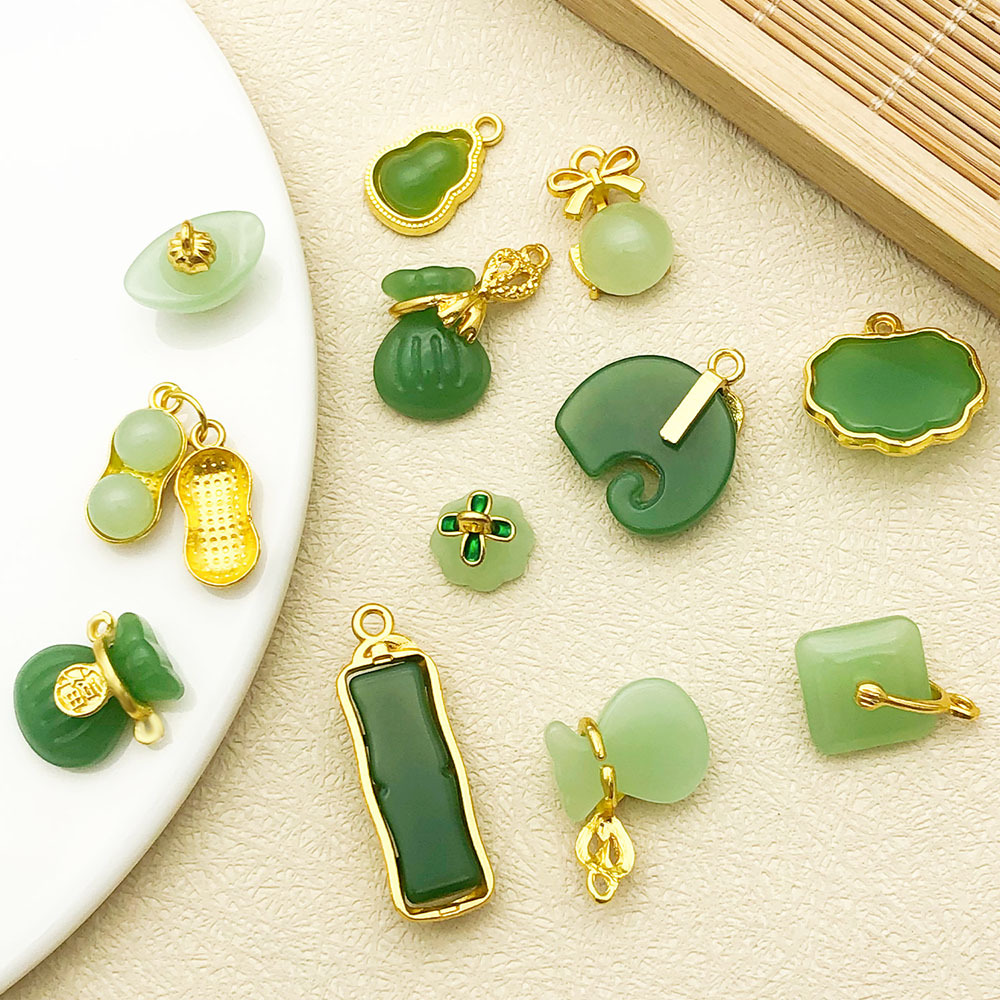 中国风绿色琉璃平安扣福袋葫芦莲蓬吊坠手工手链项链饰品配件材料