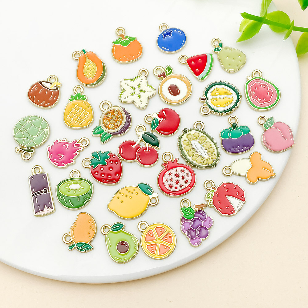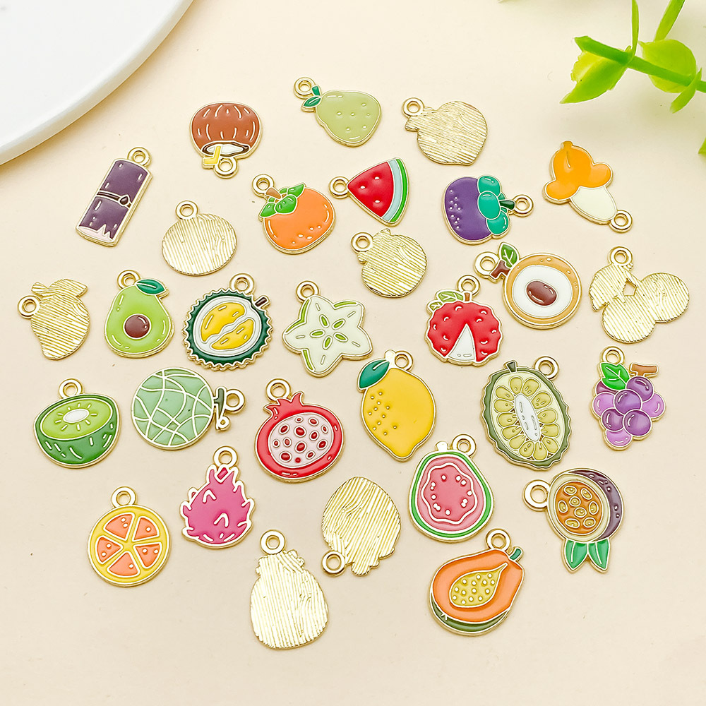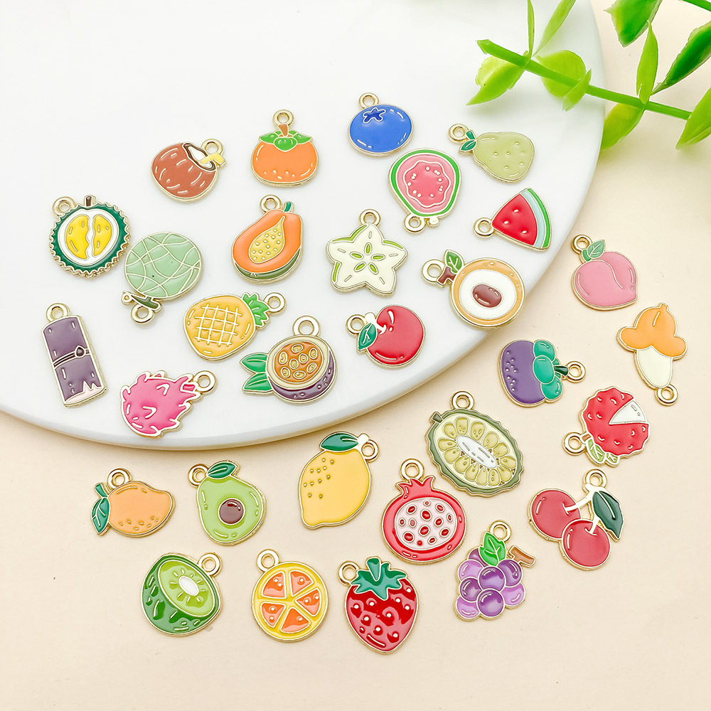 混30款仿真迷你滴油水果西瓜荔枝芒果葡萄香蕉等合金吊坠饰品配件