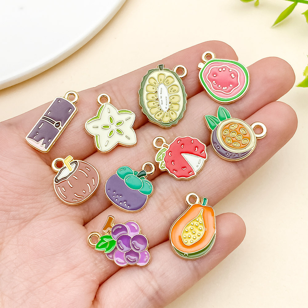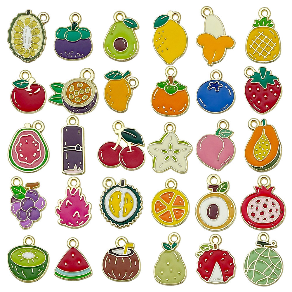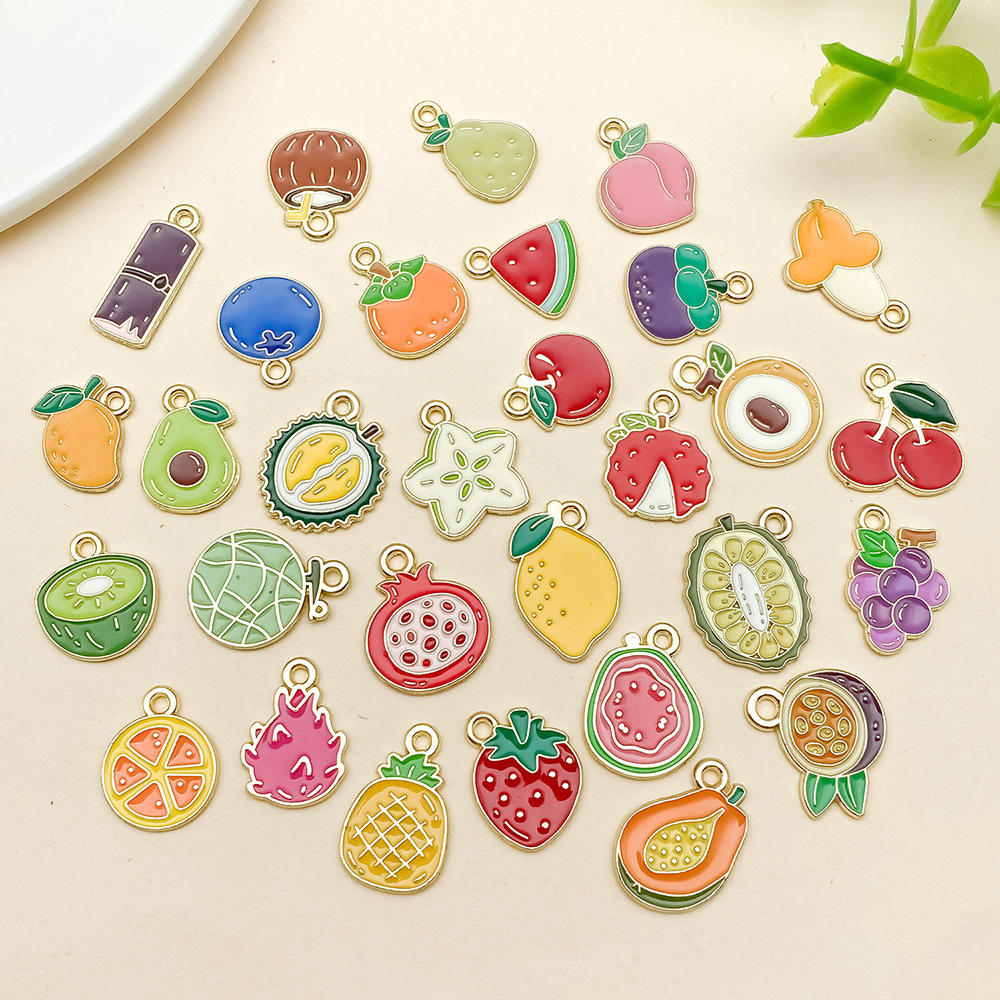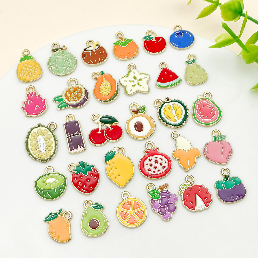 混30款仿真迷你滴油水果西瓜荔枝芒果葡萄香蕉等合金吊坠饰品配件
