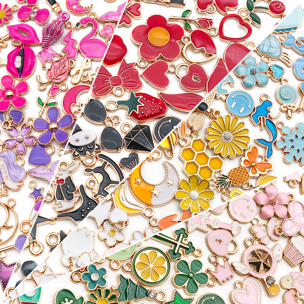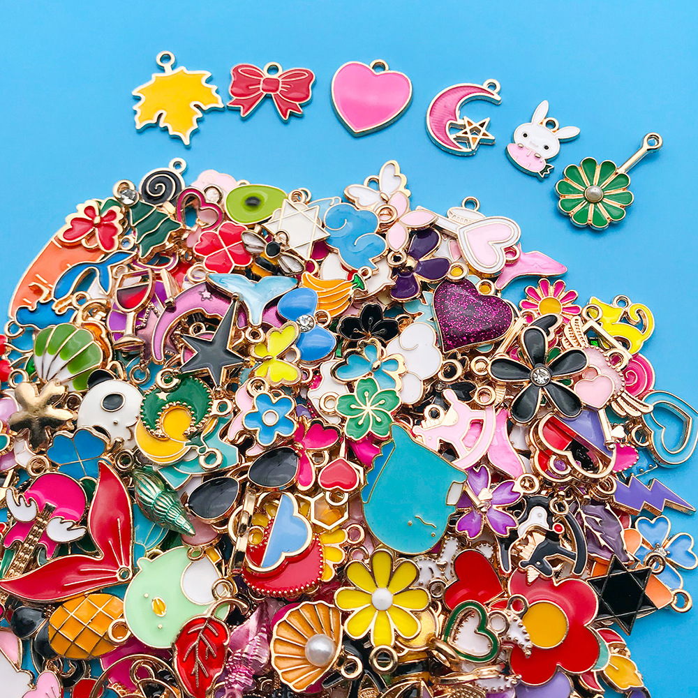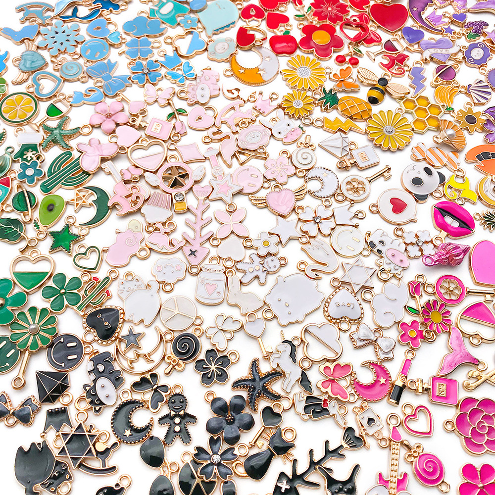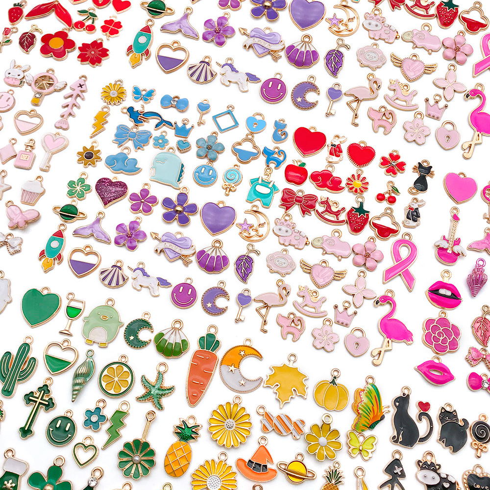 跨境新品270个混色滴油卡通合金小吊坠手工DIY手链钥匙扣饰品配件