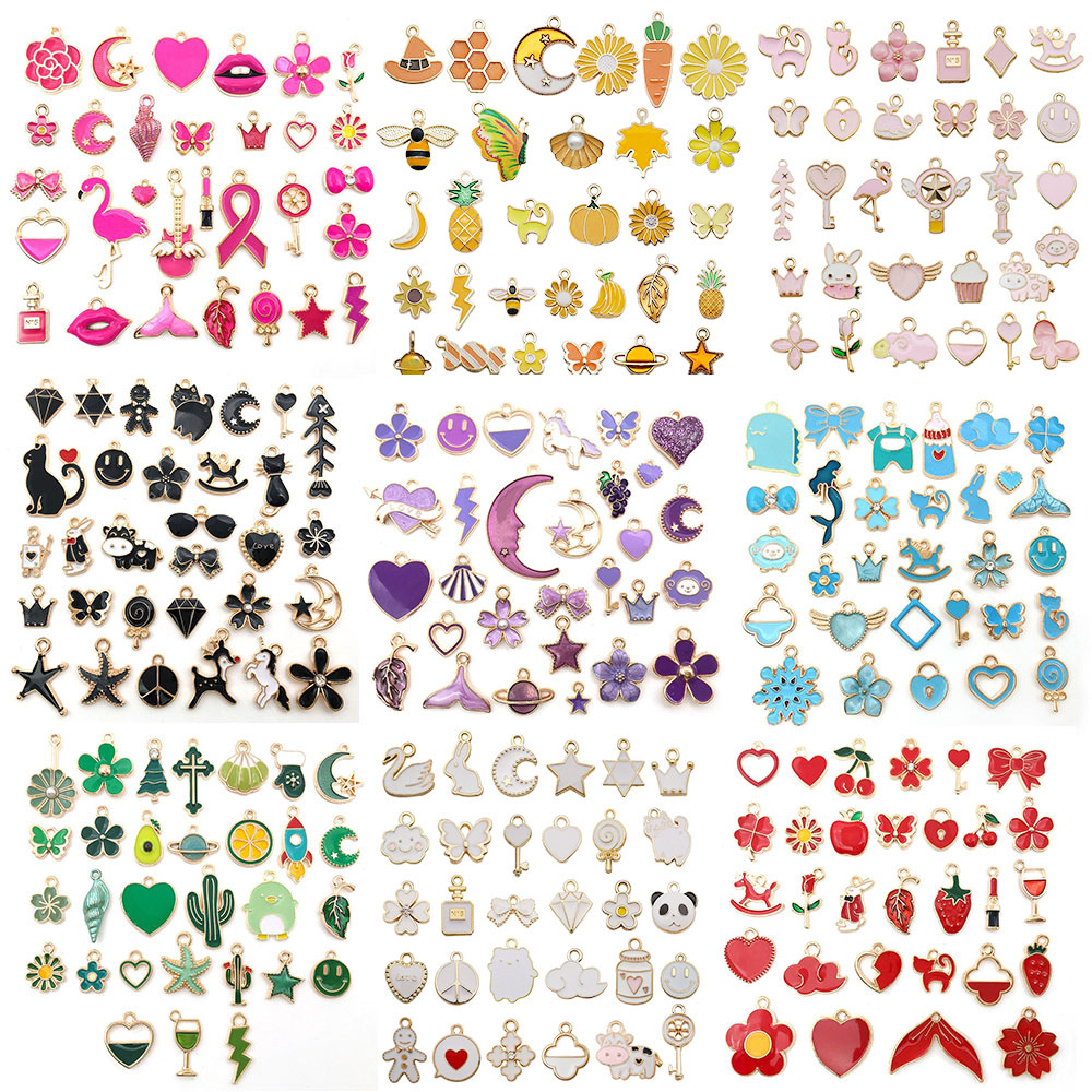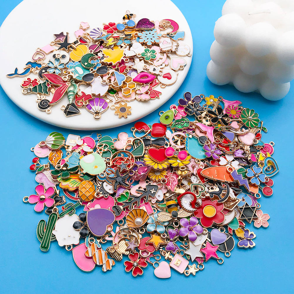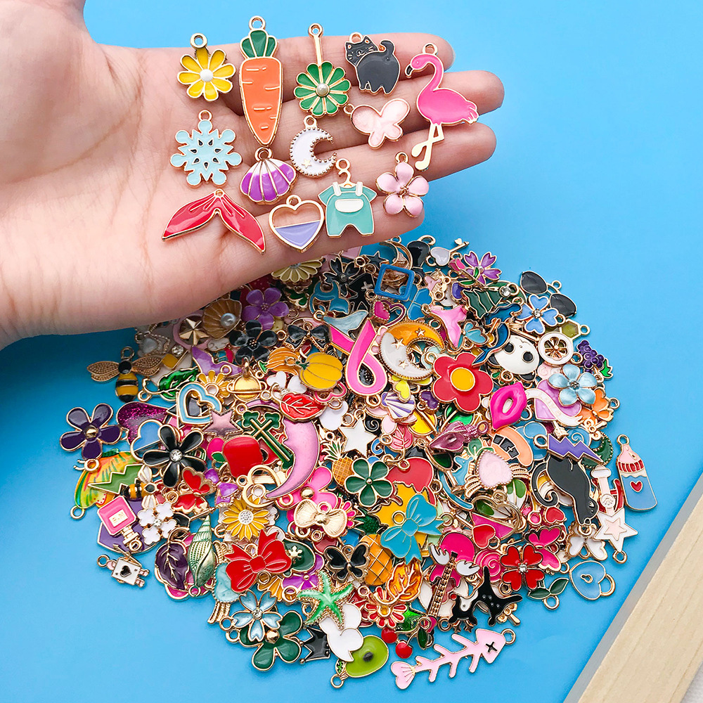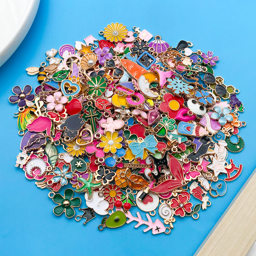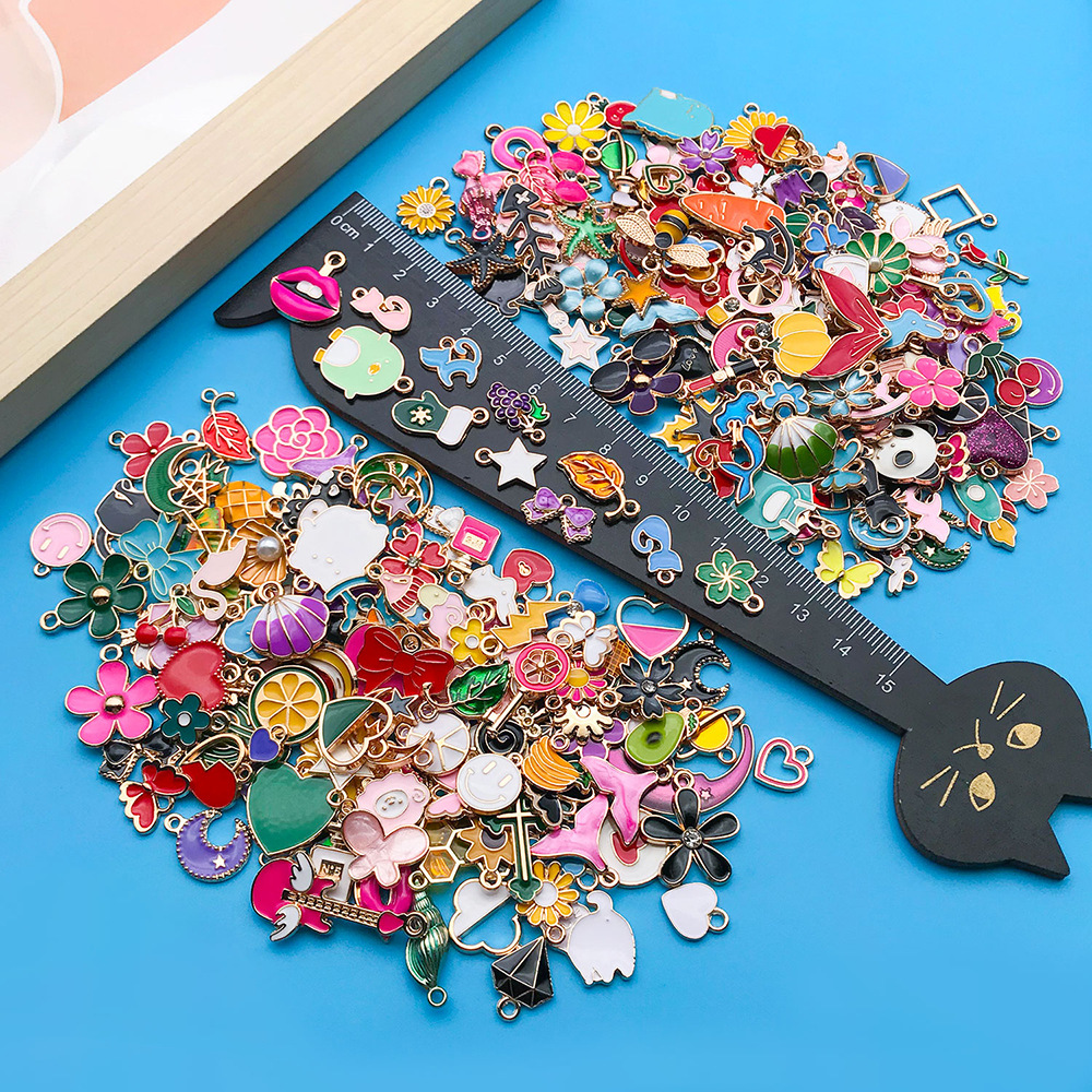 跨境新品270个混色滴油卡通合金小吊坠手工DIY手链钥匙扣饰品配件