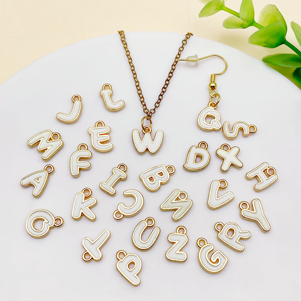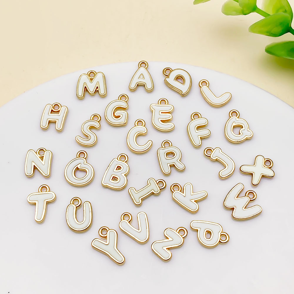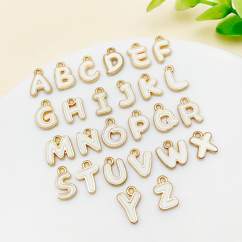 白色字母卡通滴油双面26个字母吊坠DIY手链项链饰品配件厂家批发