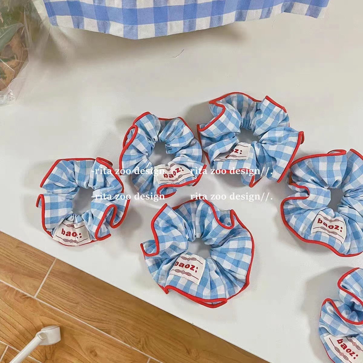 韩版红蓝撞色蓝格子格纹可爱童趣大肠圈发绳马尾发绳皮筋发饰新款