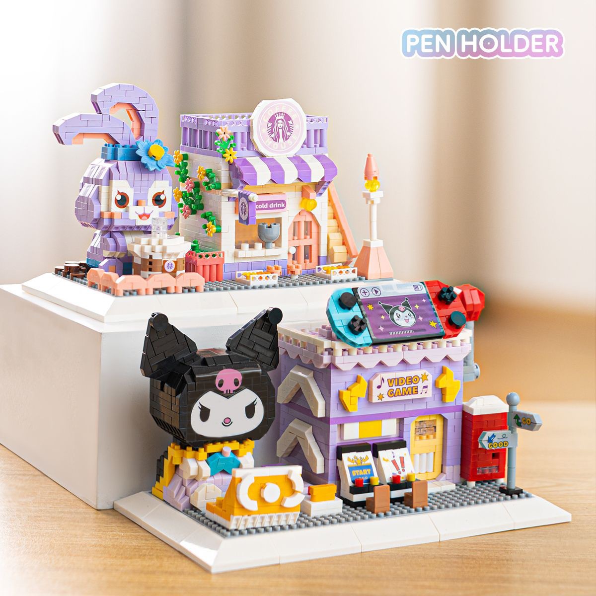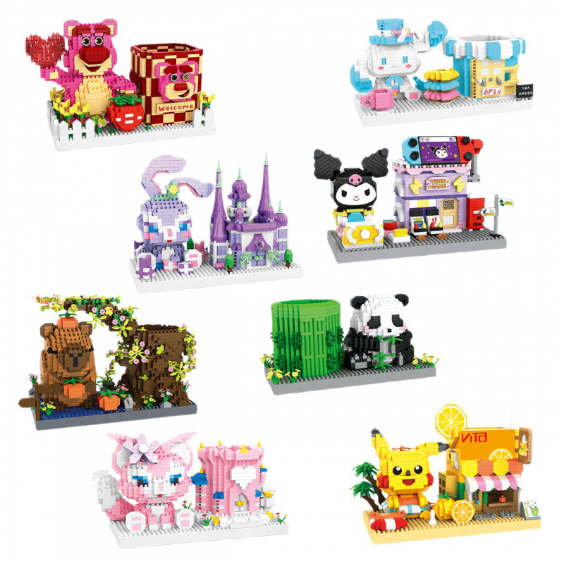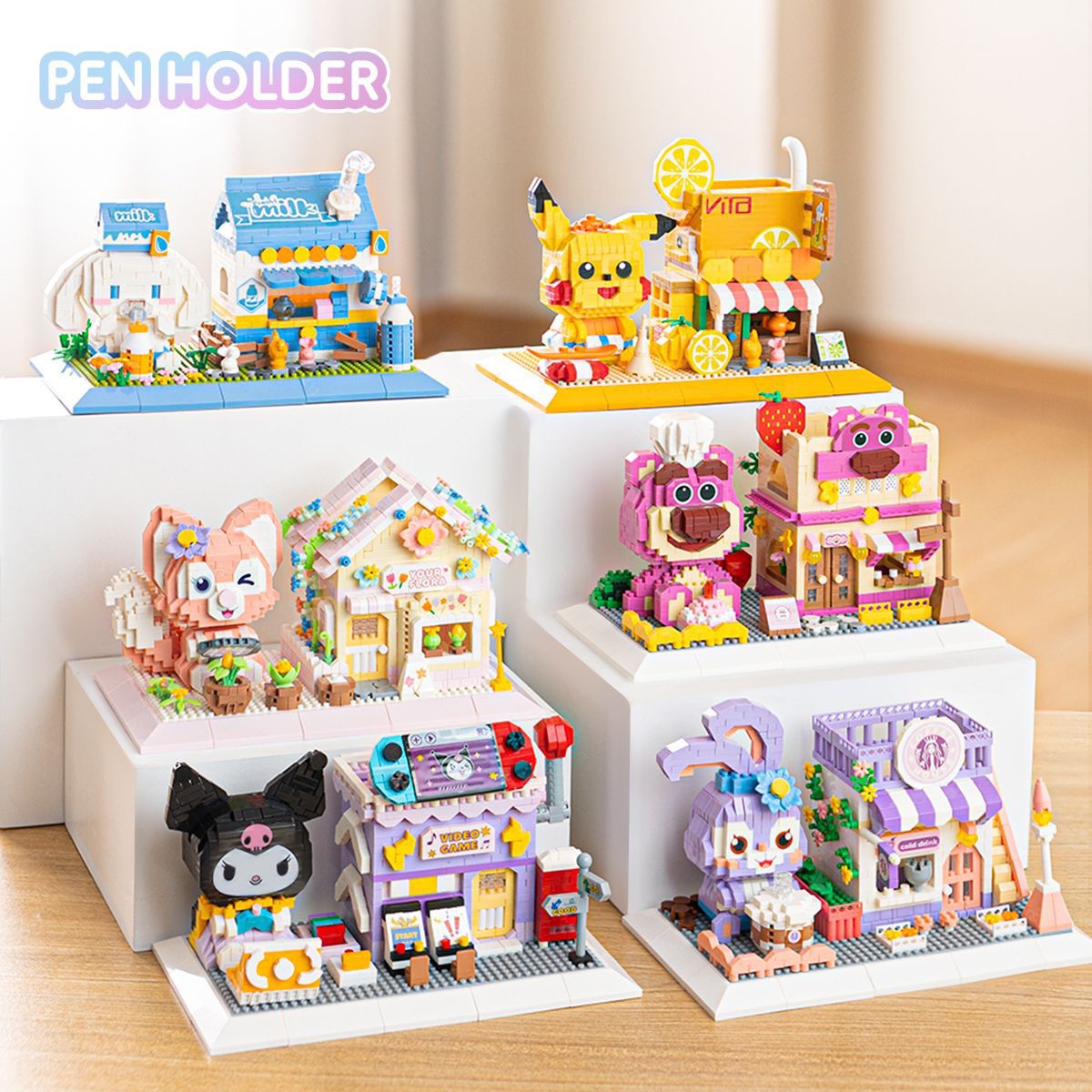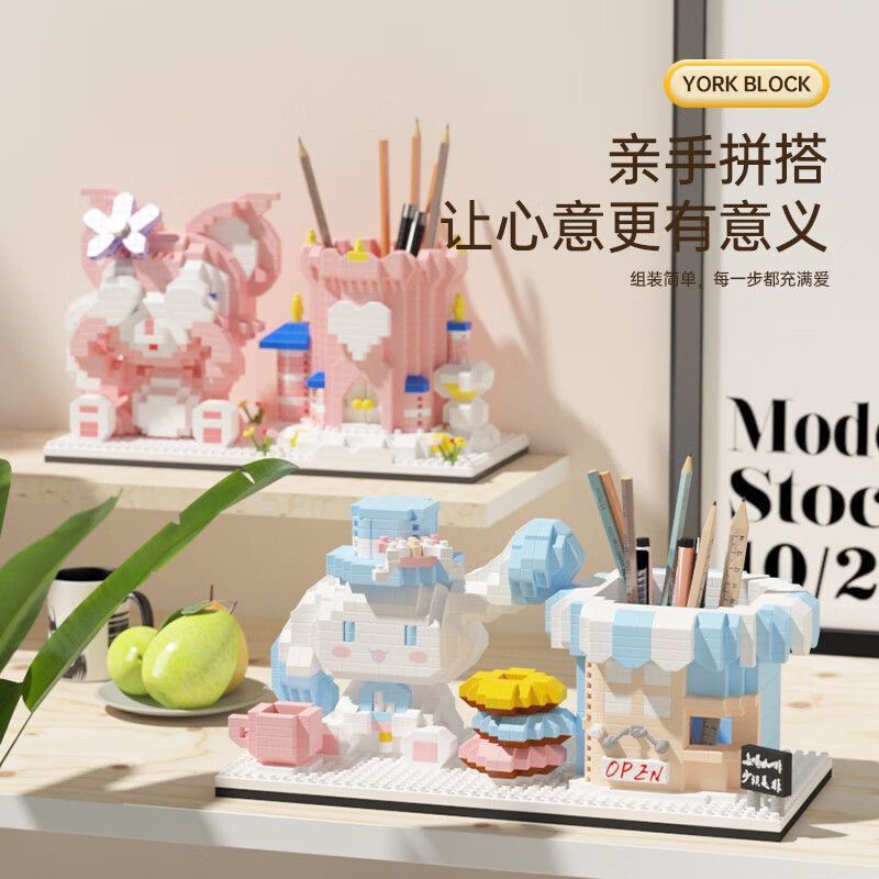 【批发代发】卡通可爱街景积木笔筒摆件拼装diy学生玩具