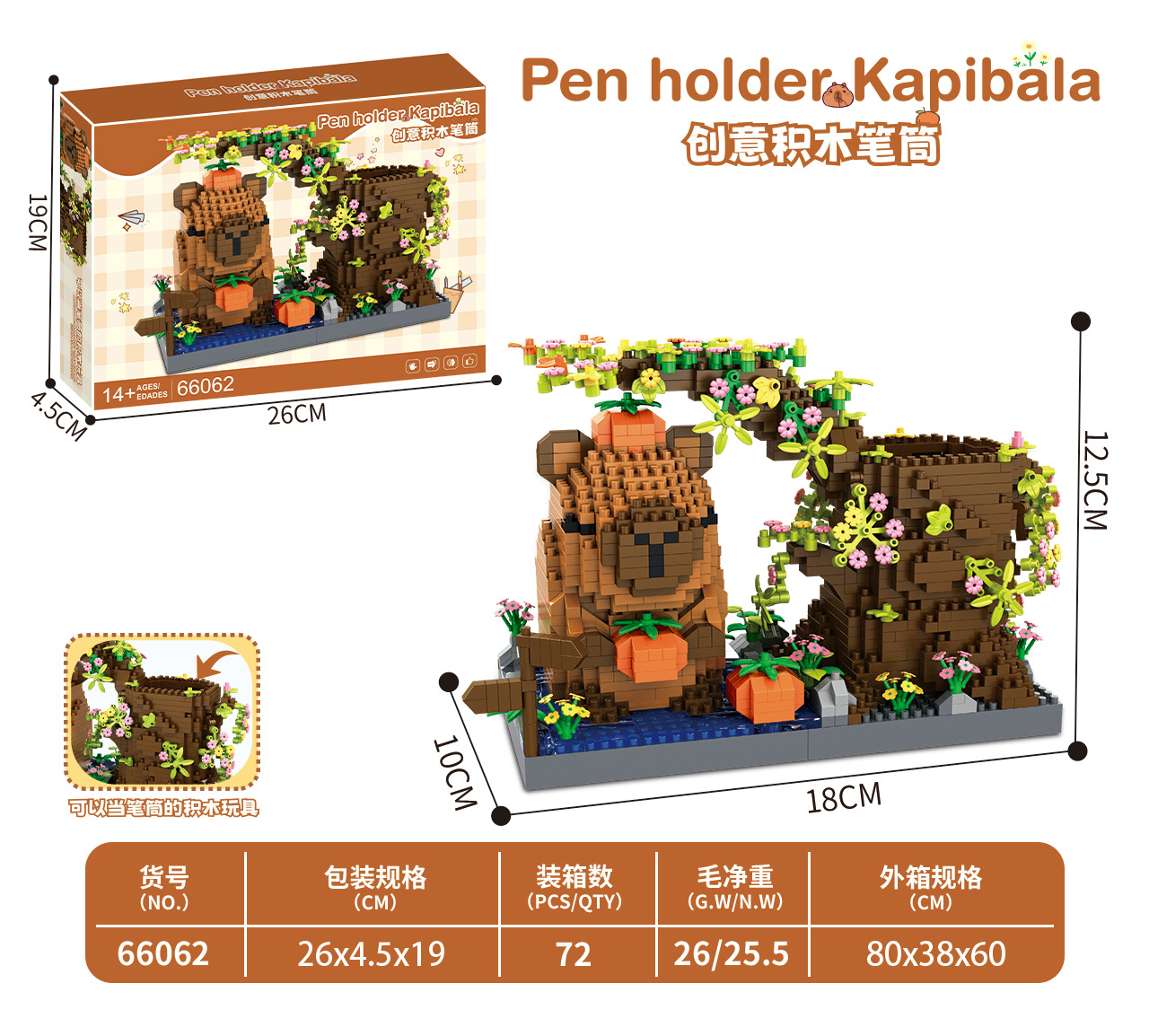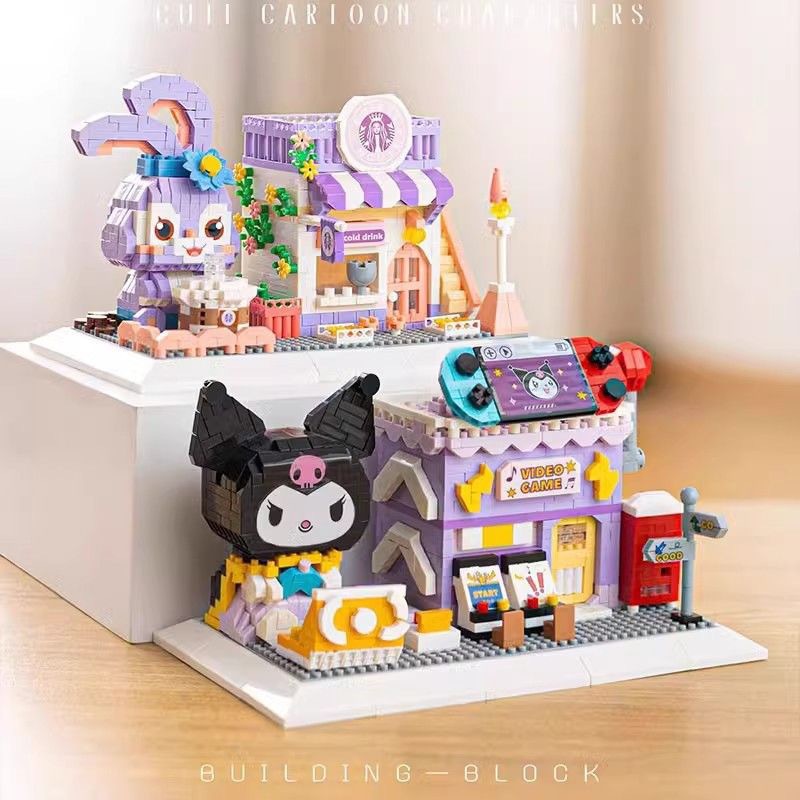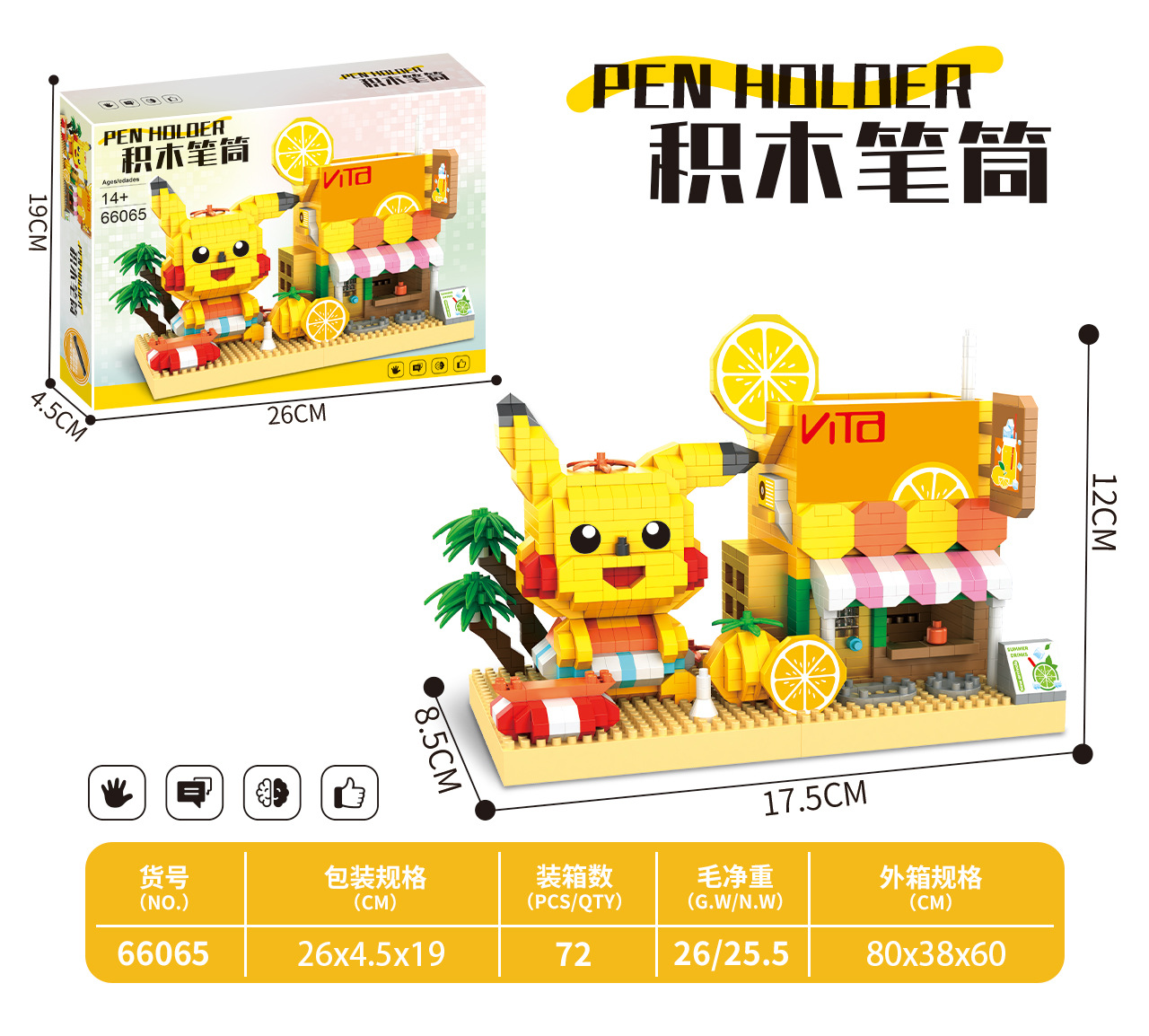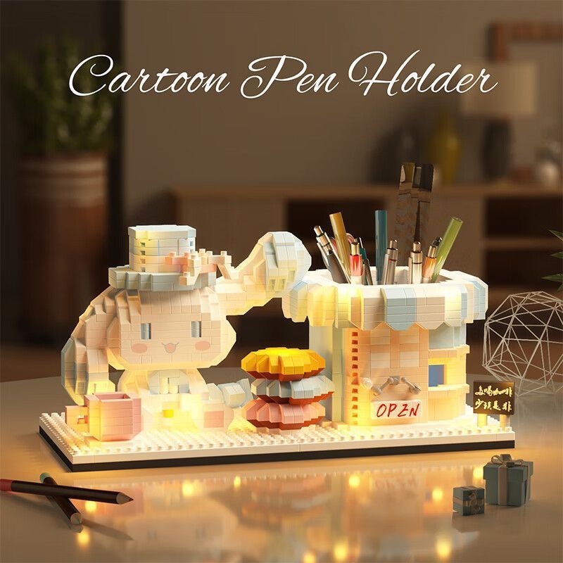【批发代发】卡通可爱街景积木笔筒摆件拼装diy学生玩具