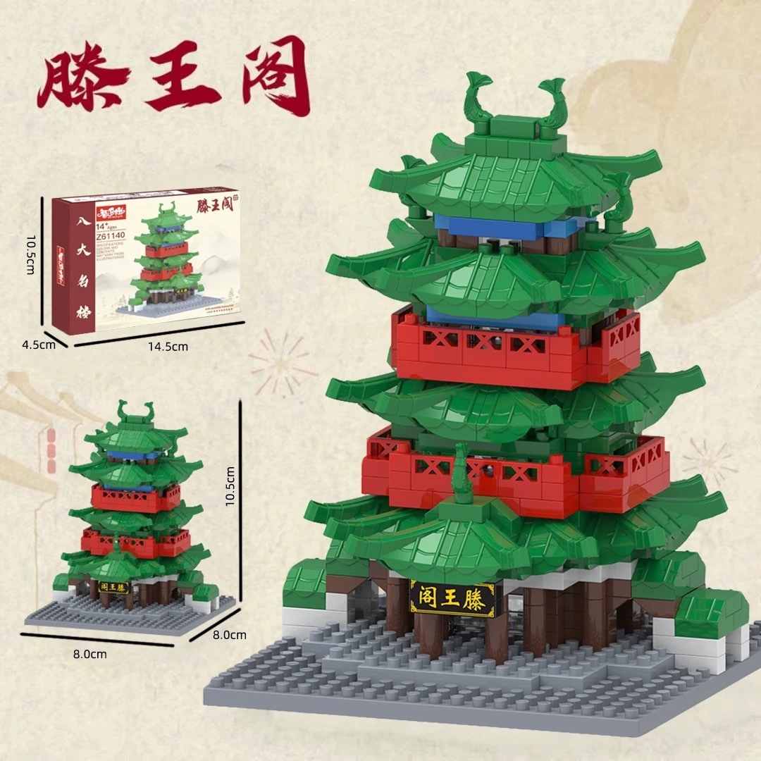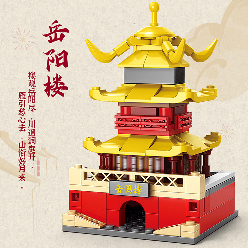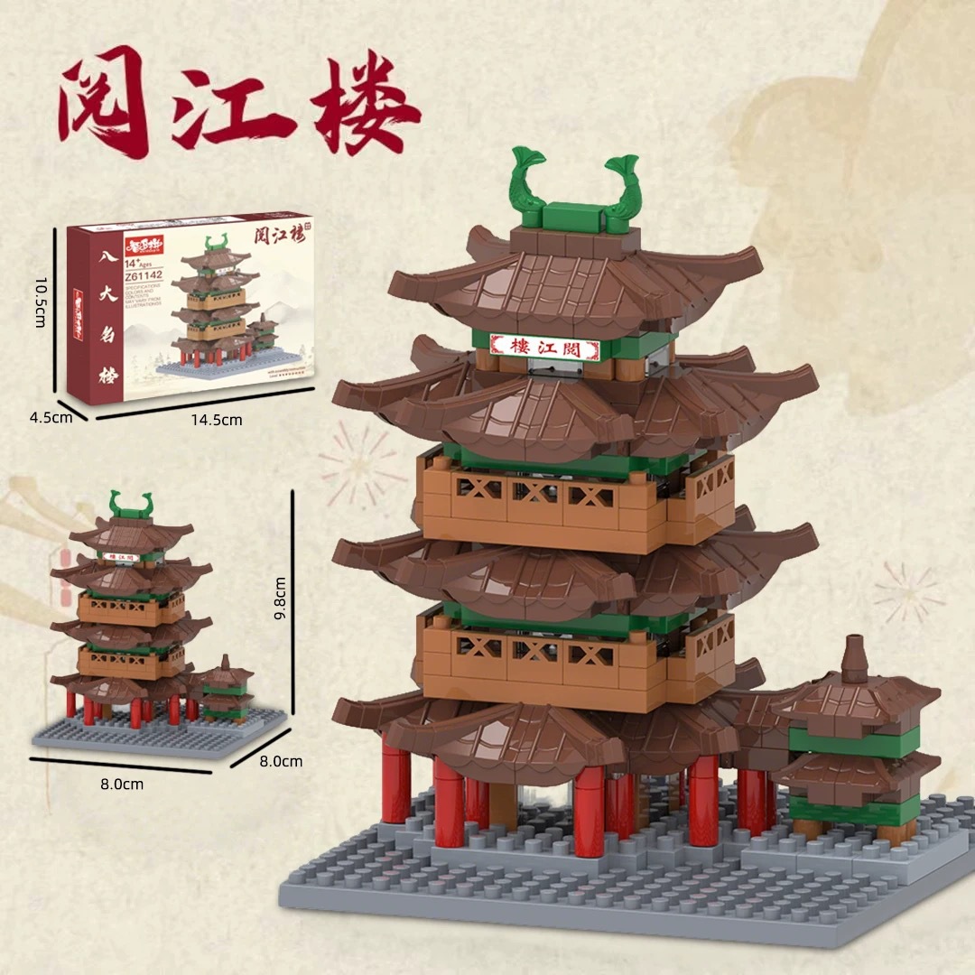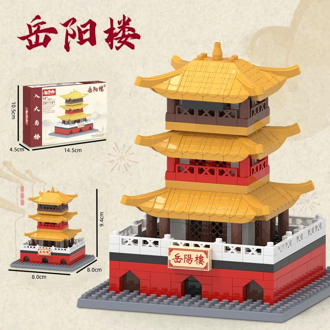 网红八大名楼古建筑模型摆件微颗粒拼装玩具男女