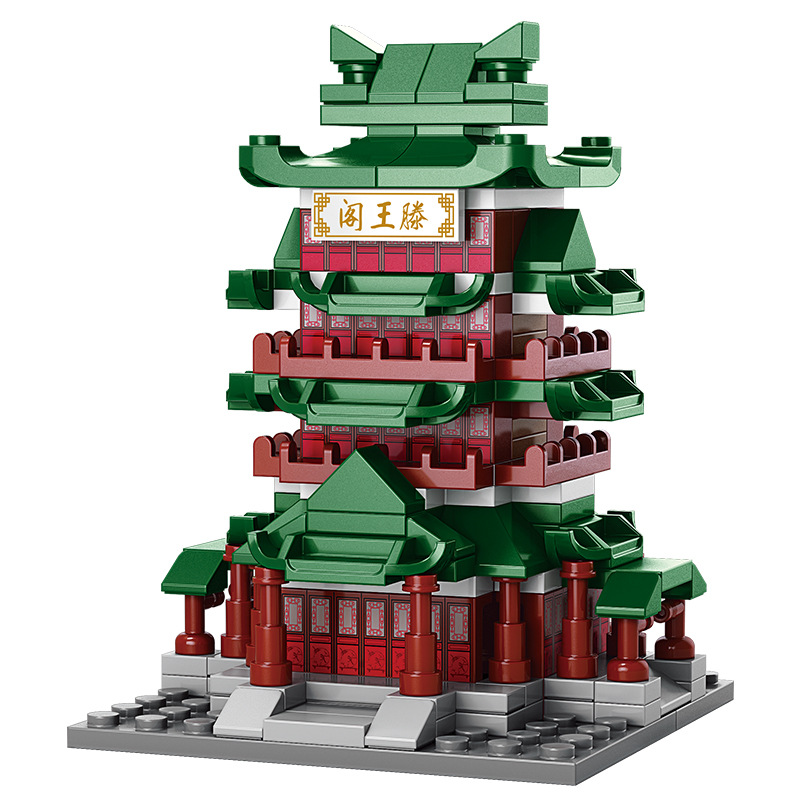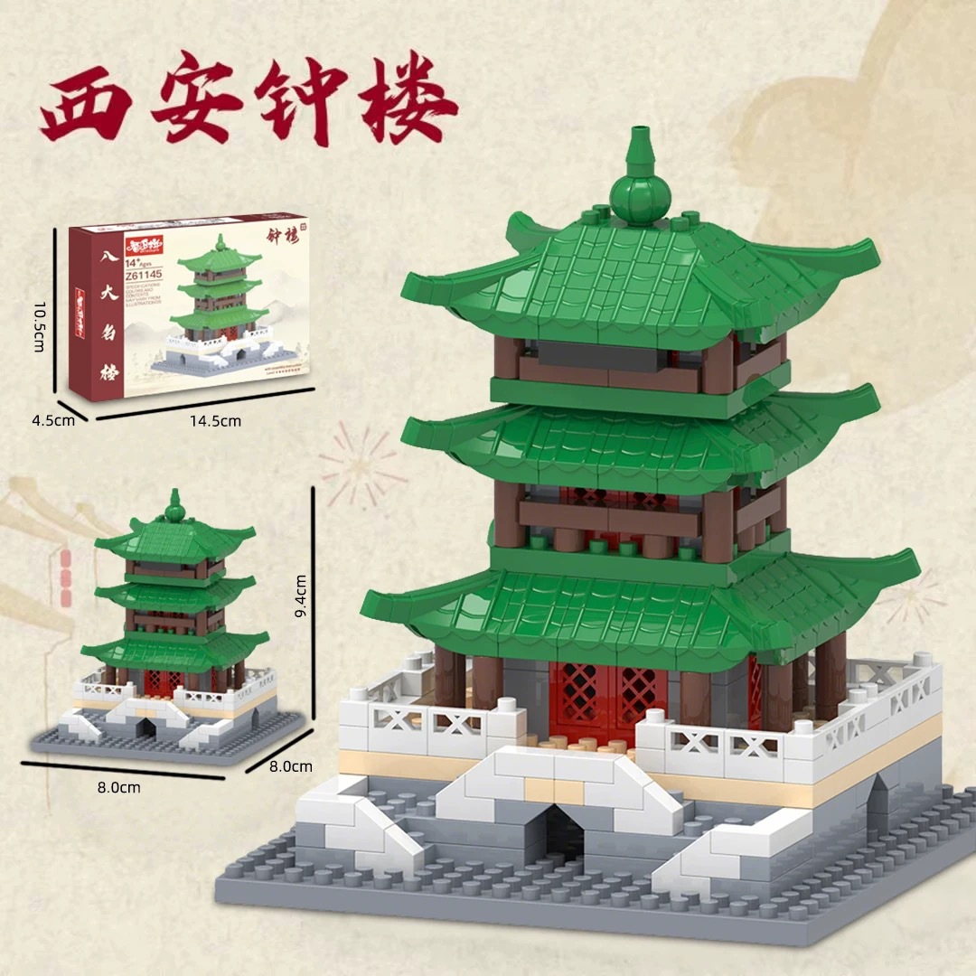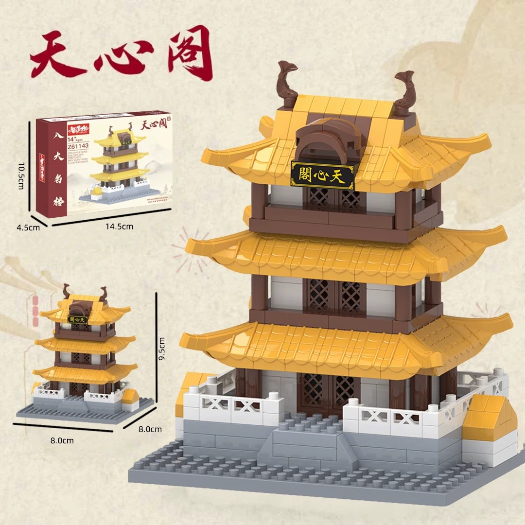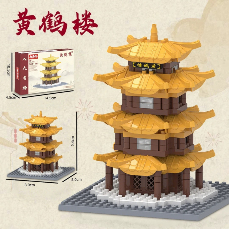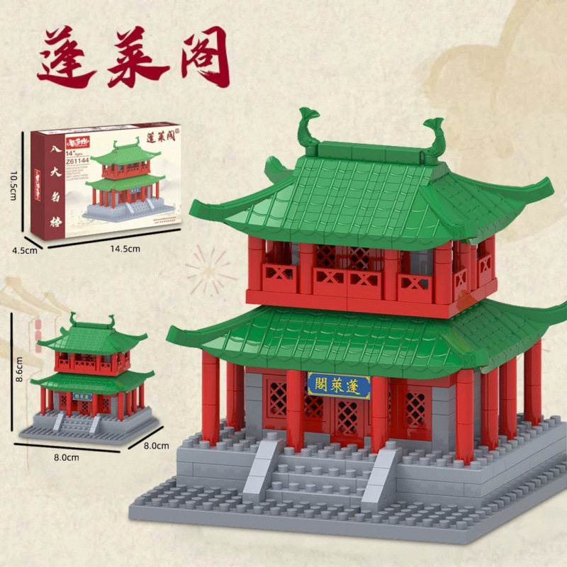 网红八大名楼古建筑模型摆件微颗粒拼装玩具男女