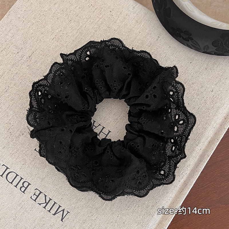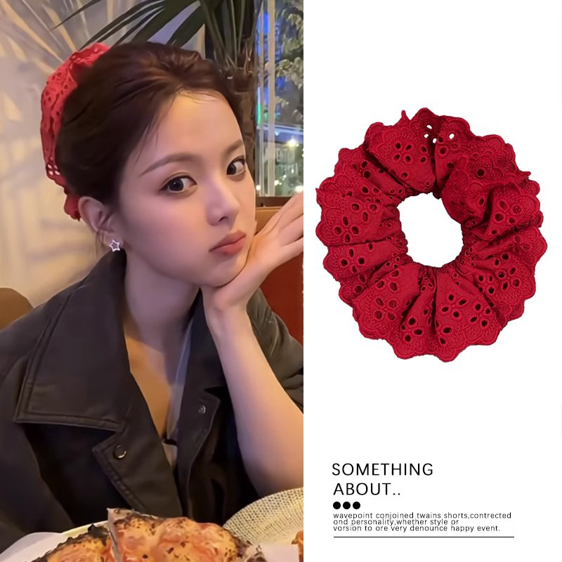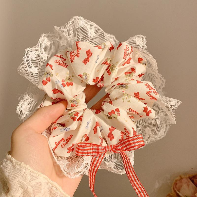 甜美大肠发圈女高级感缎面韩系百搭发绳温柔蕾丝波点发饰方巾头饰