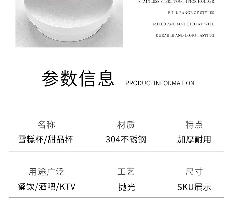 304不锈钢雪糕杯甜品杯INS博主同款复古布丁杯冰激凌冰淇淋杯奶冻