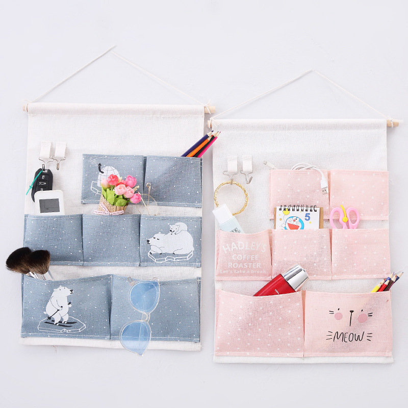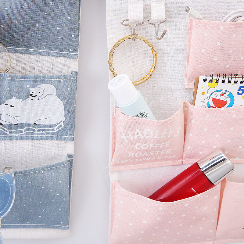 棉麻卡通7兜收纳挂袋卧室收纳储物袋布艺收纳袋
