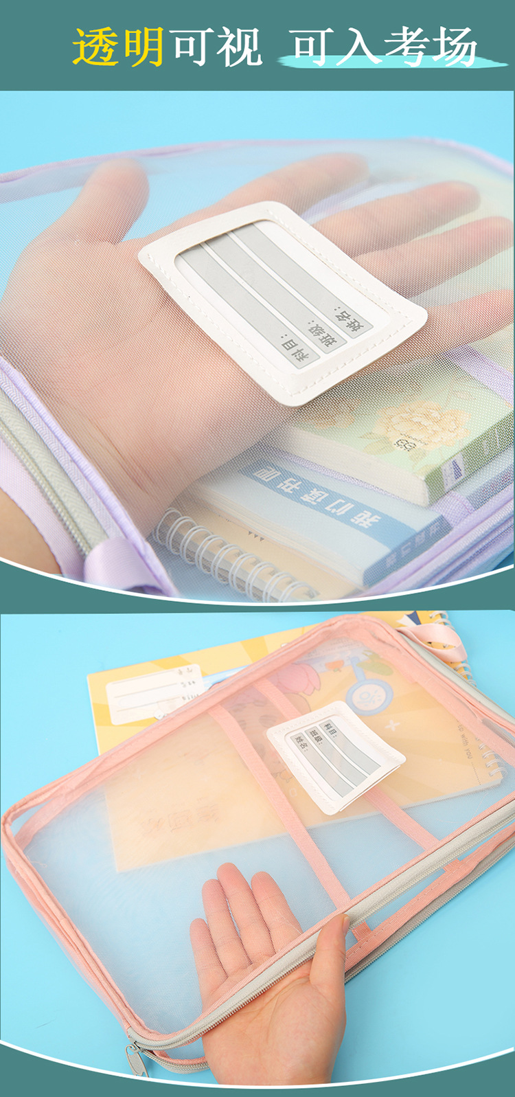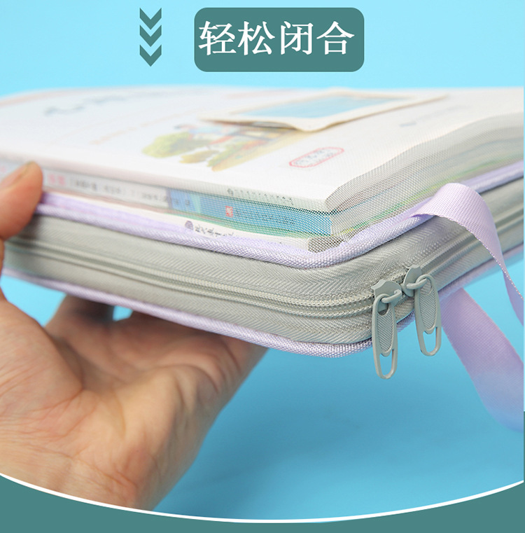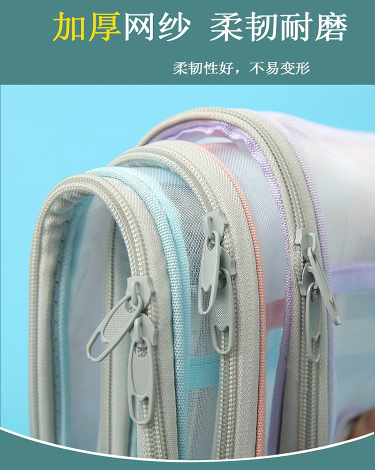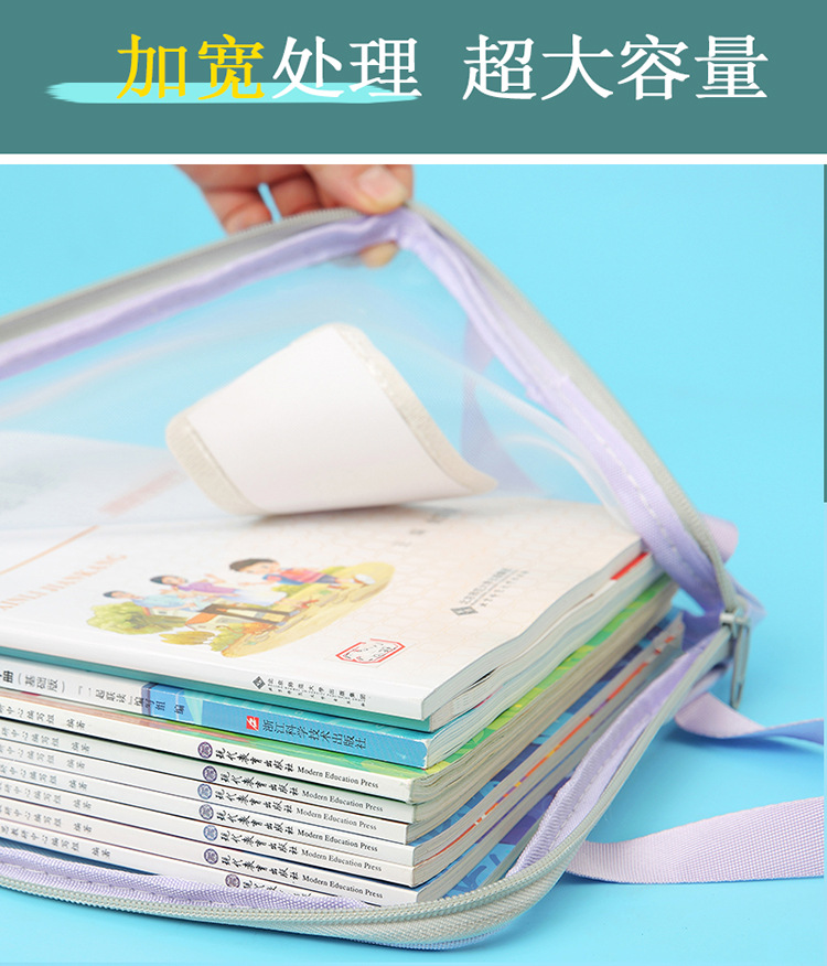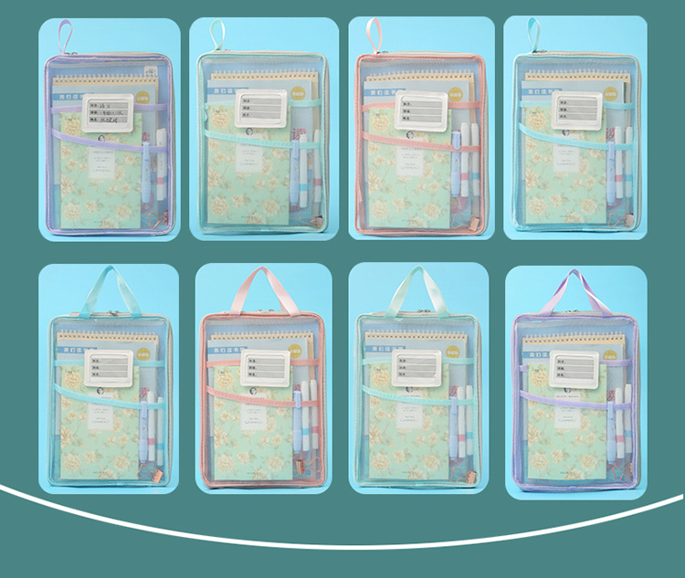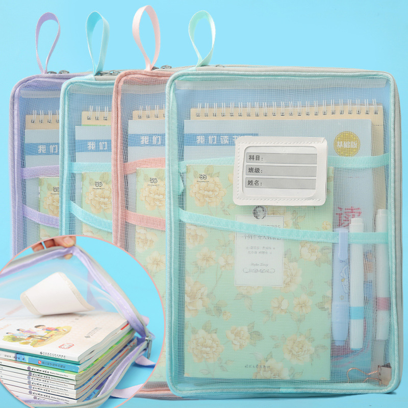 A4科目袋三层大容量L型大开口文件袋子 透明网纱学生用试卷收纳袋