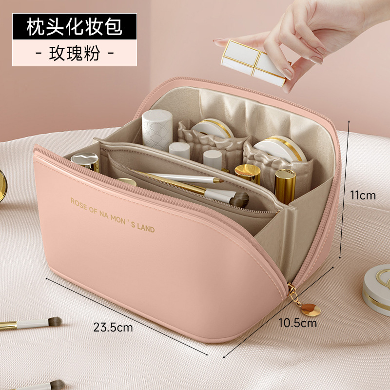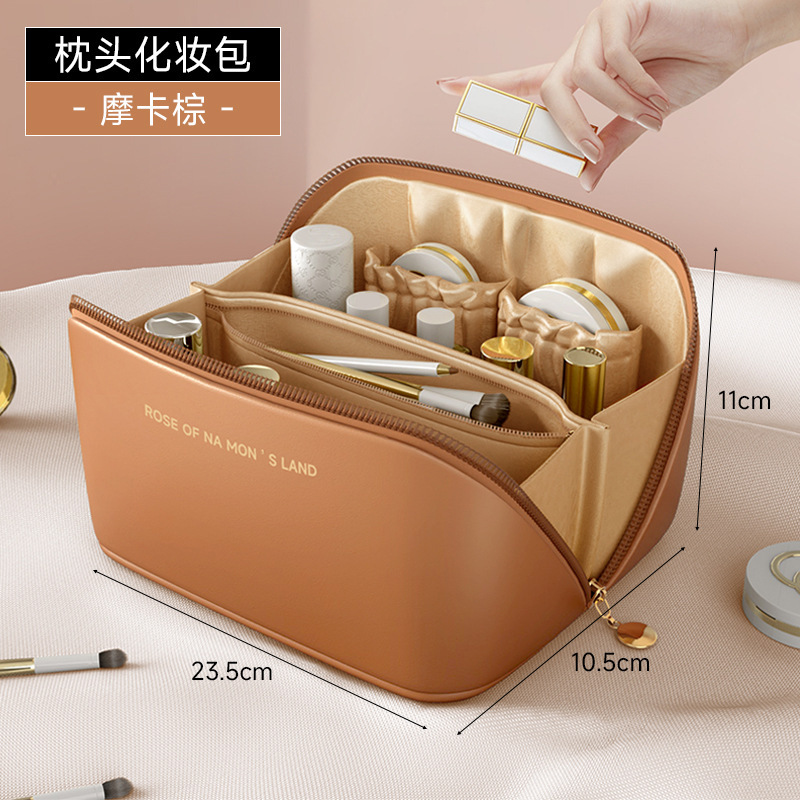 pu枕头化妆包大容量复古便携式家用旅行多功能洗漱包化妆品收纳包