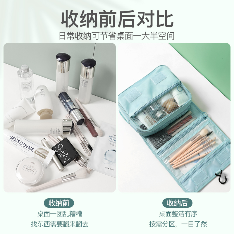 韩版便携化妆包多功能收纳袋挂钩洗漱包大容量折叠悬挂旅行收纳包