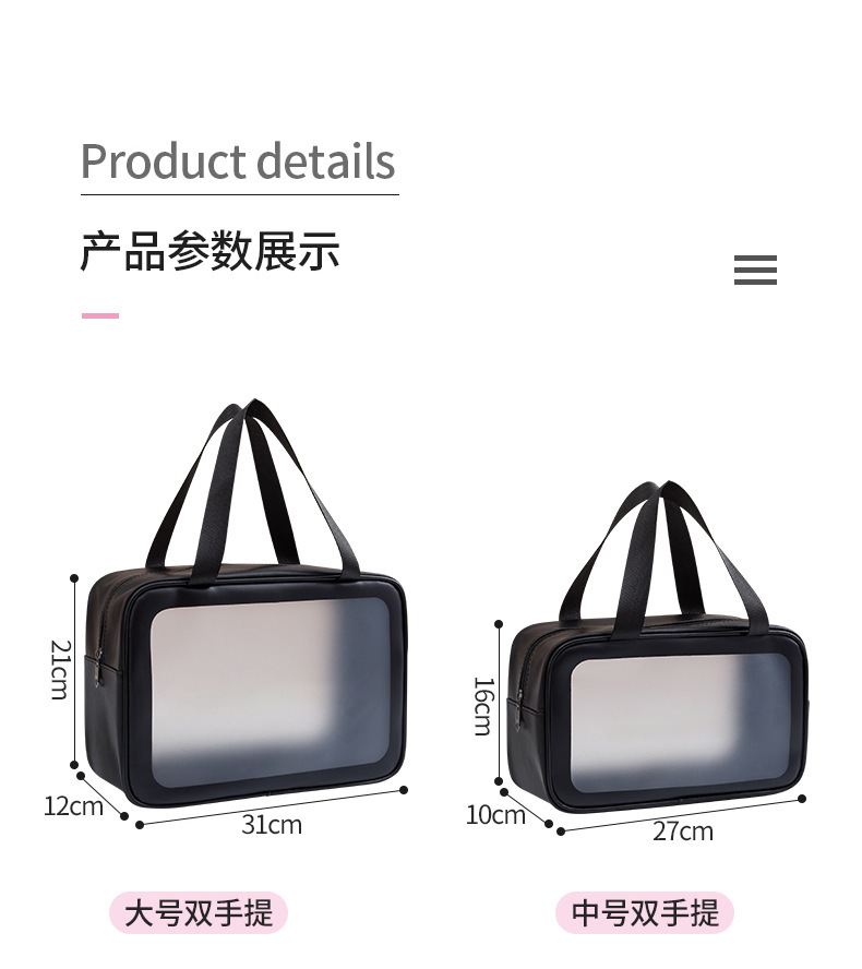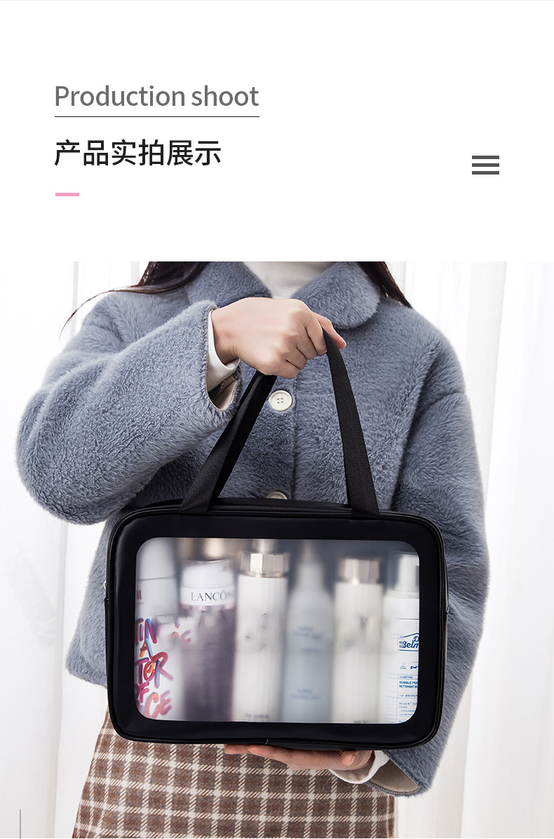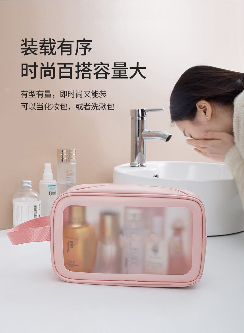 PU化妆包无LOGO简约便携大容量透明洗漱包家用旅行化妆品包收纳袋