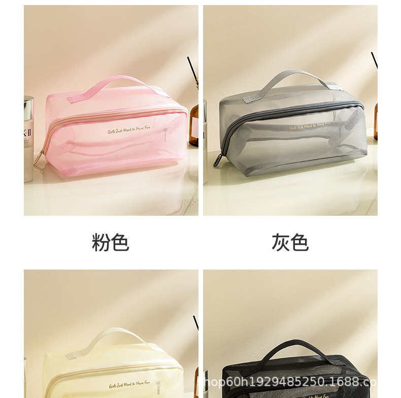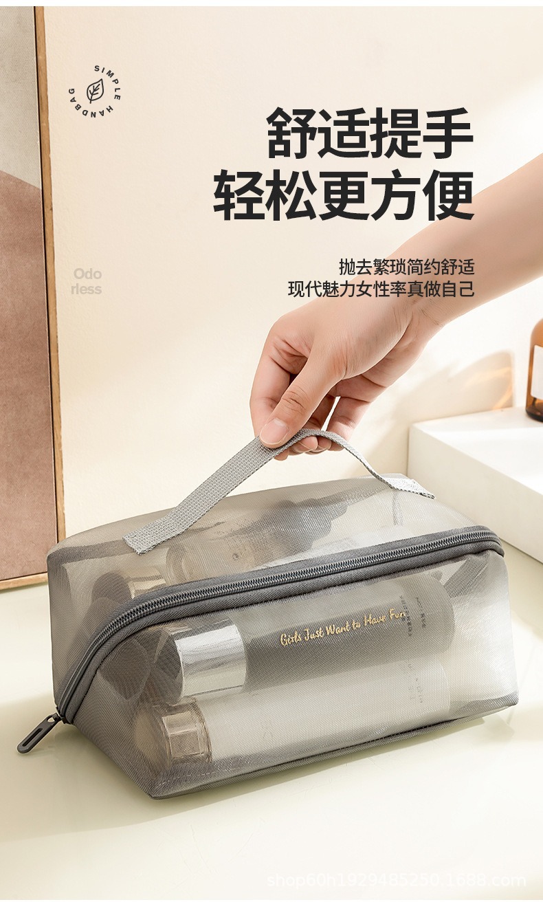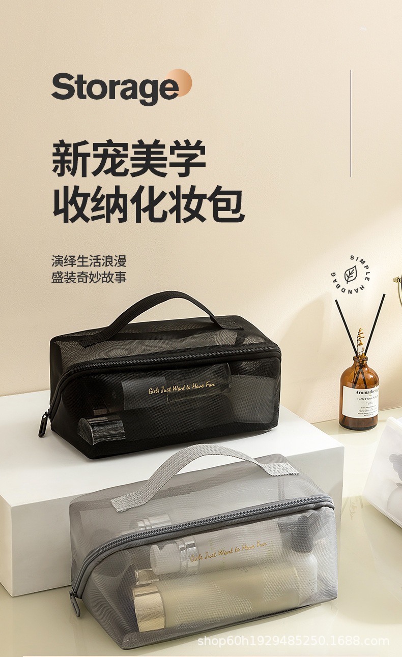 网纱韩式ins大容量多用途化妆包透明简约洗漱袋 化妆品旅行收纳袋