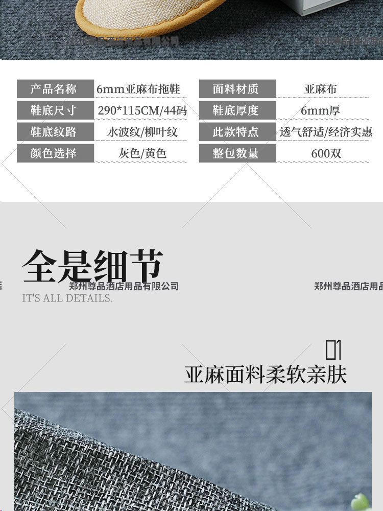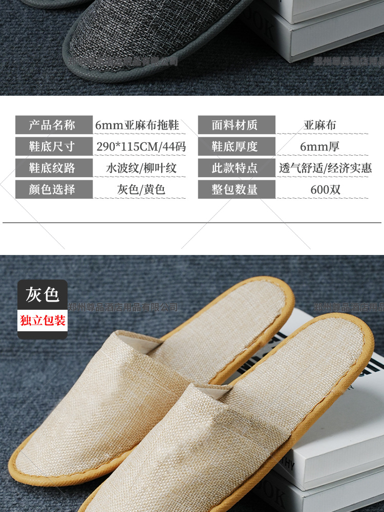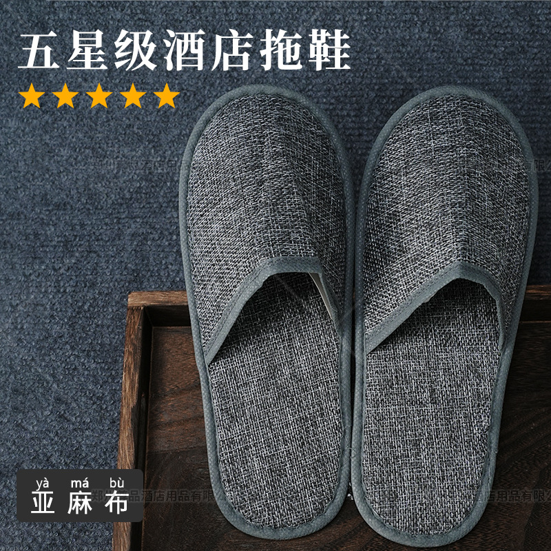 五星级酒店一次性亚麻拖鞋棉麻拖鞋大码防滑宾馆民宿定制厂家批发