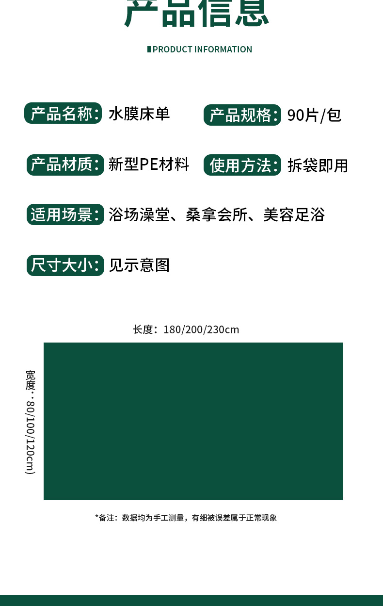 一次性水疗床单搓背桑拿塑料膜澡堂桑拿会所洗浴水摩床浴膜池膜布