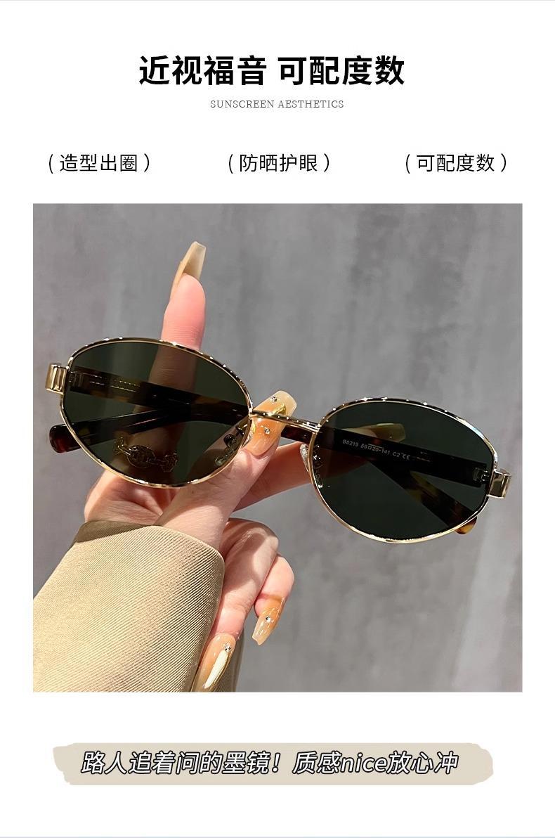 复古港风玳瑁墨镜女高级感近视带度数椭圆形太阳眼镜防紫外线开车