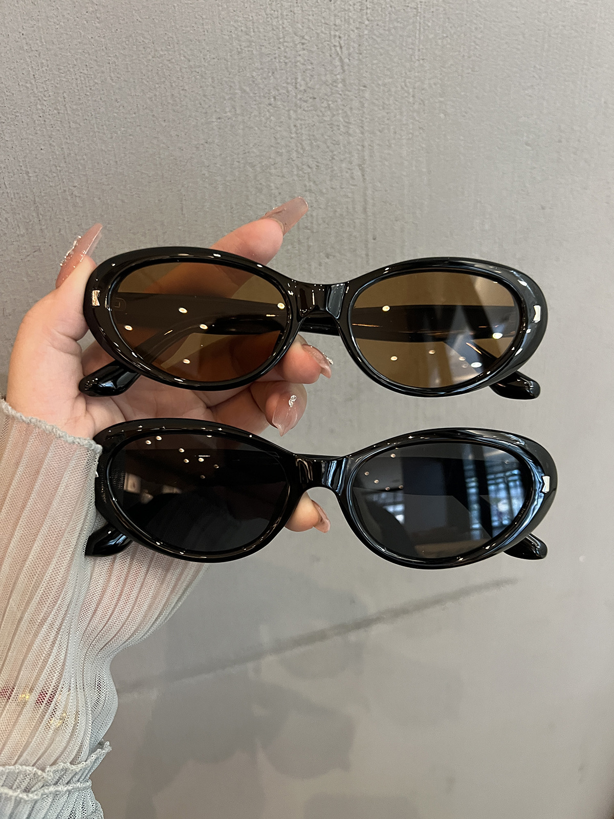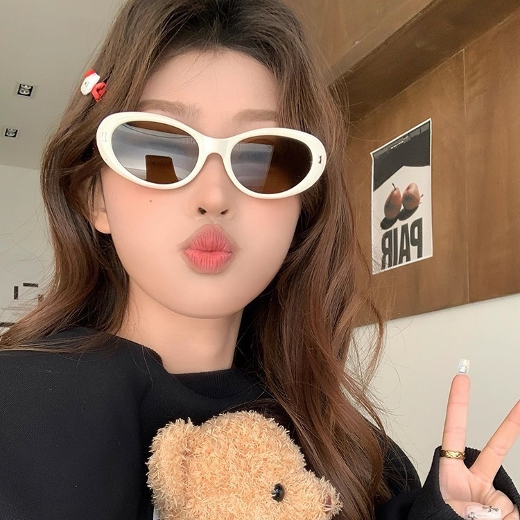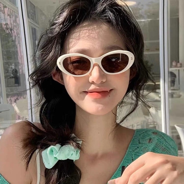 时尚度假风椭圆猫眼拍照出片墨镜海边椰椰甜酷辣妹风太阳镜防晒