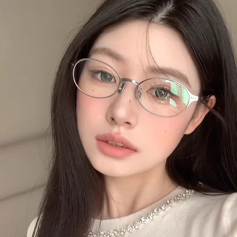 2025新品金属椭圆形眼镜框架女高级智感素颜眼镜近视显瘦可配度数