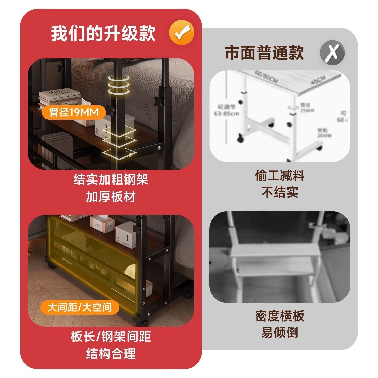 【H钢】床边桌可移动升降电脑桌书桌家用懒人简约小桌子小户型