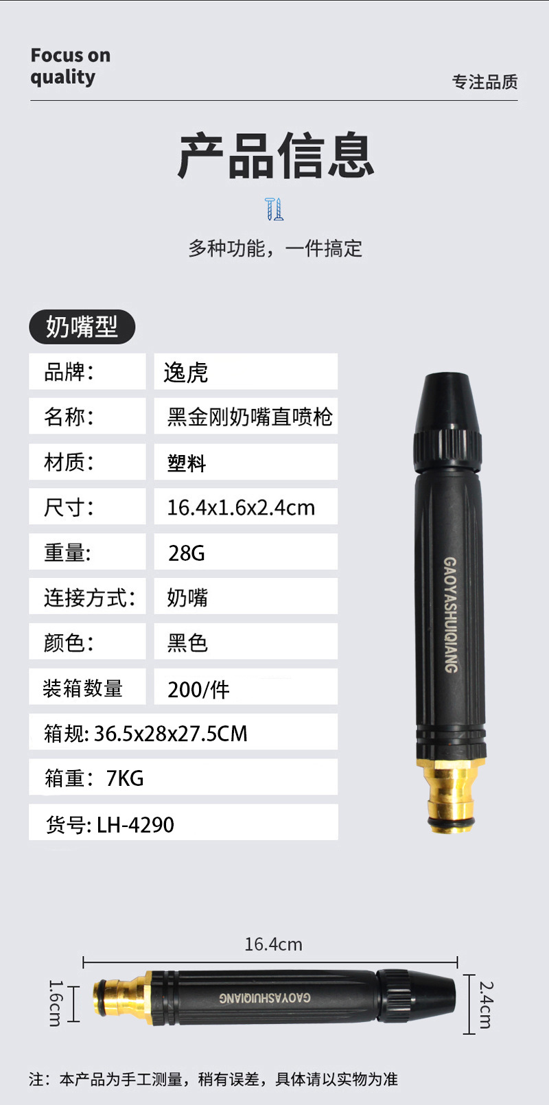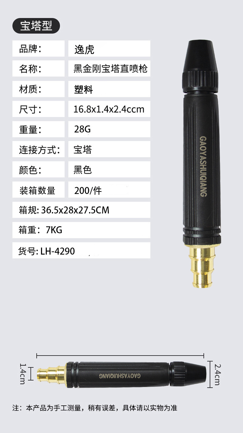 直喷水枪奶嘴宝塔型全塑料款水枪高压水枪批发家用洗车园林黑金刚