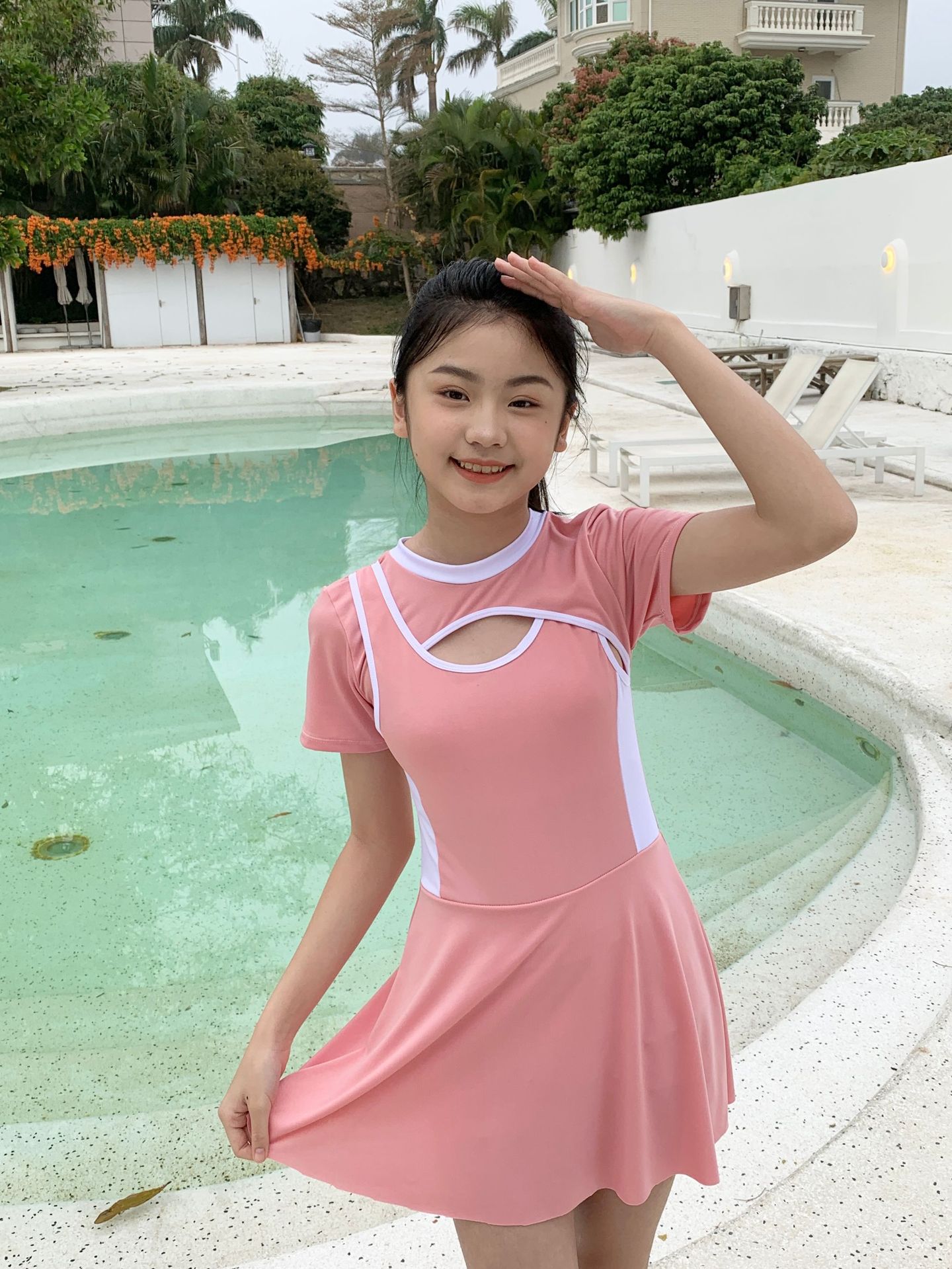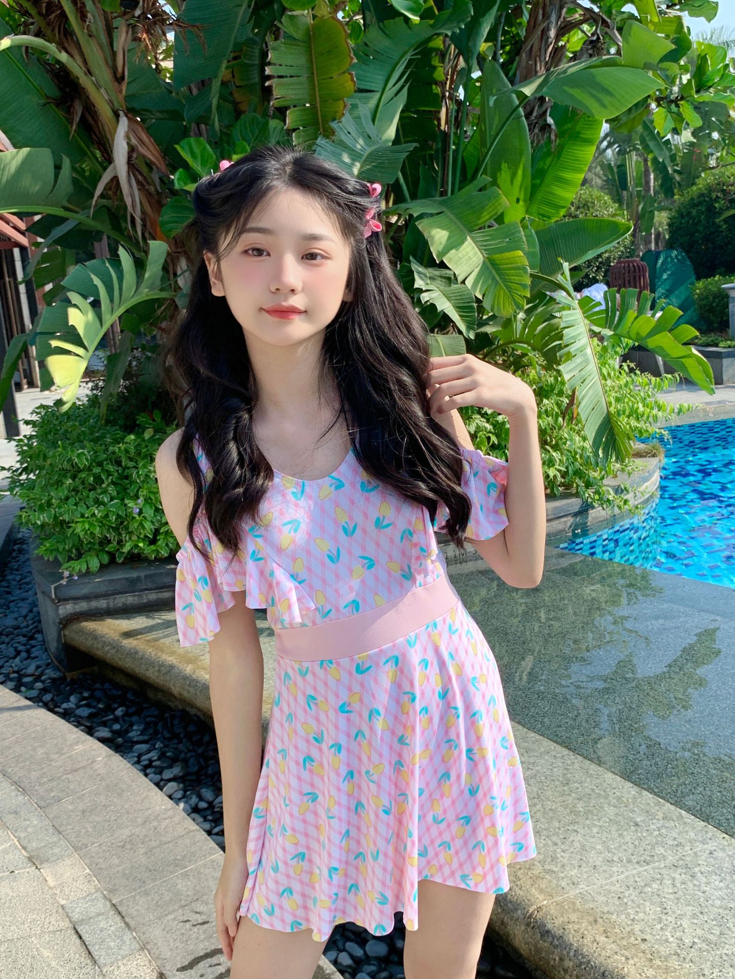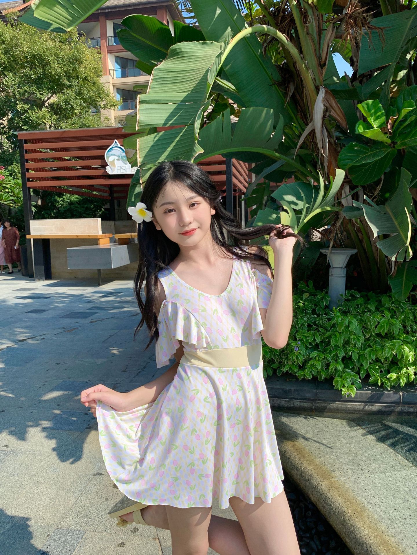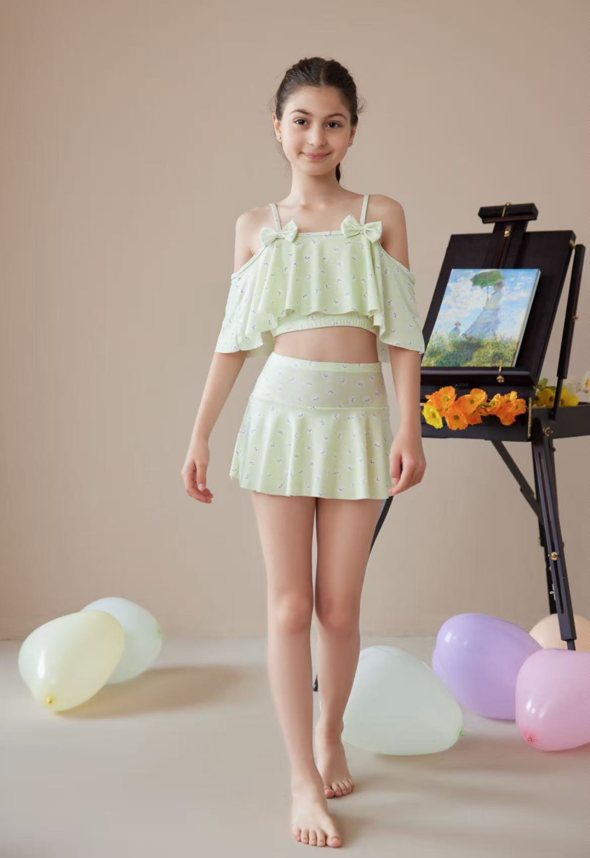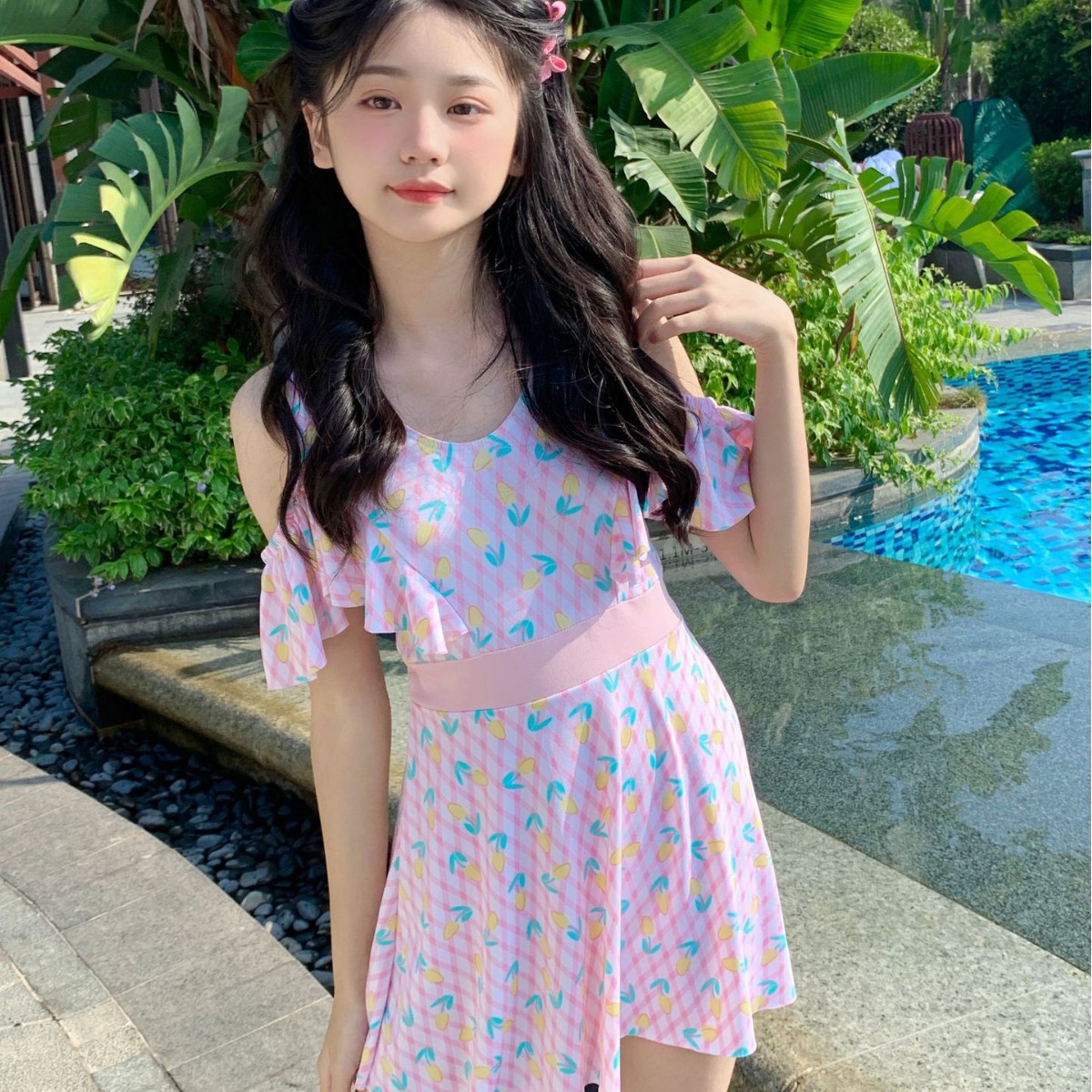 游泳衣女儿童保守中大童小清新运动泳衣套装ins风少女分体