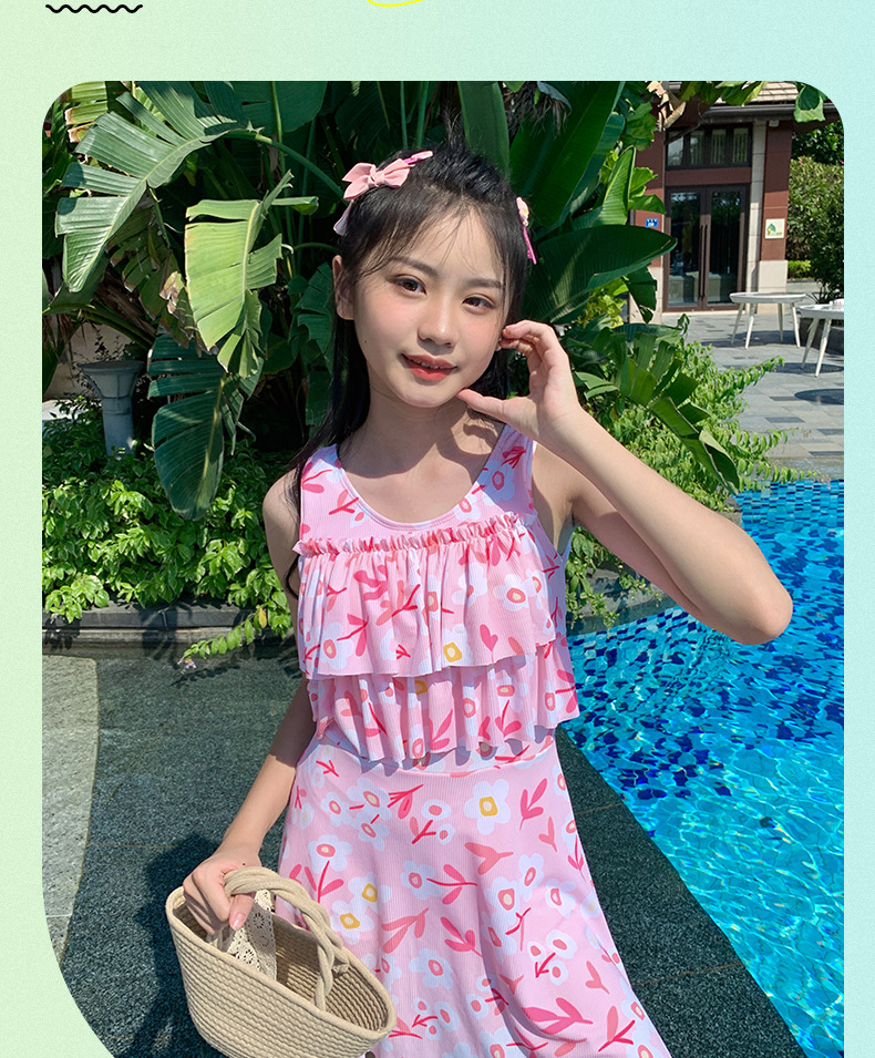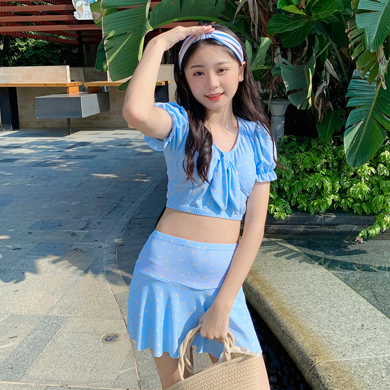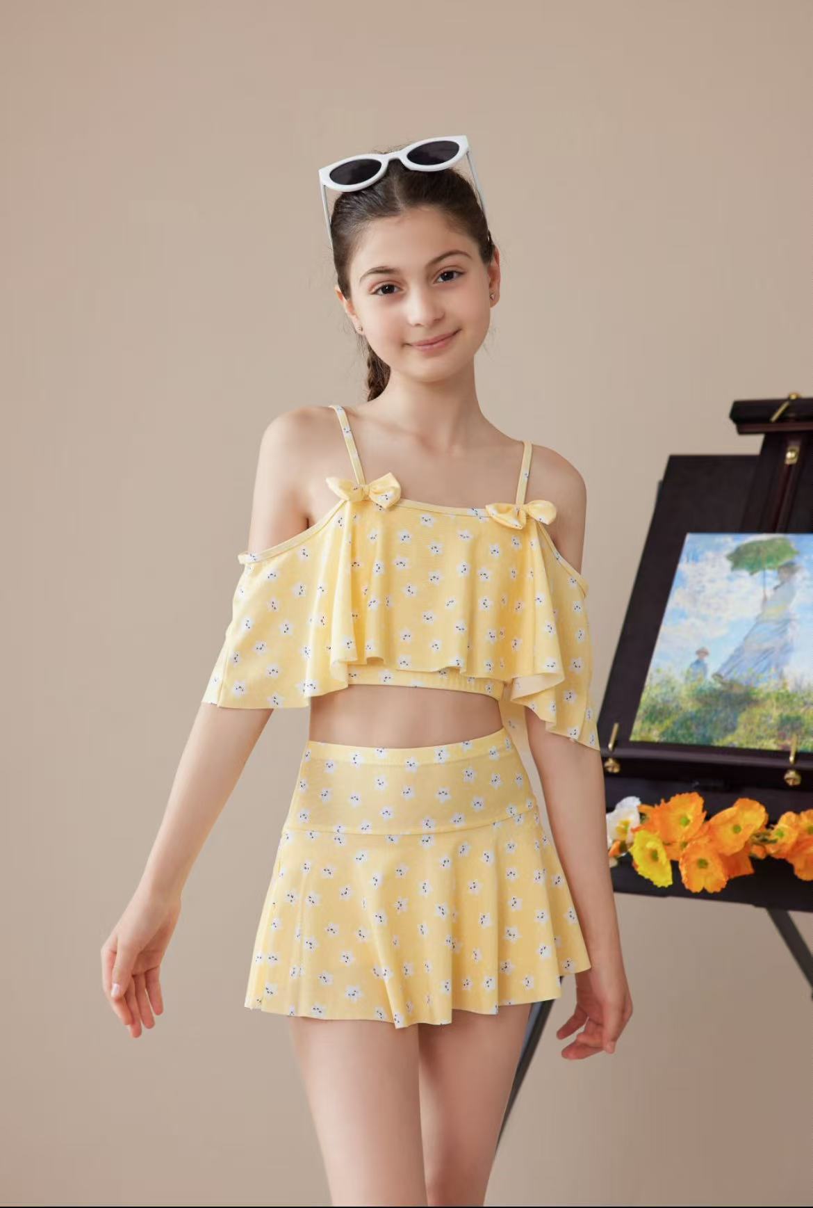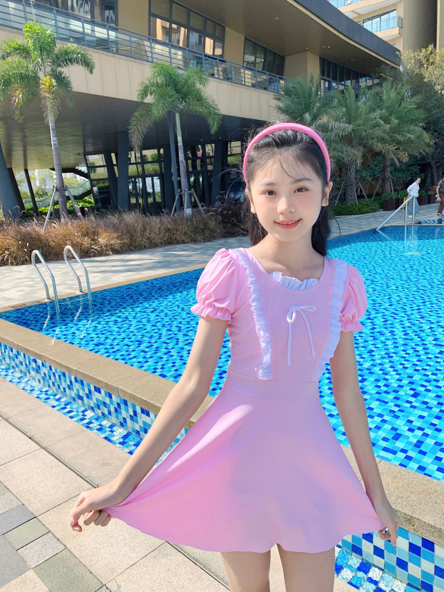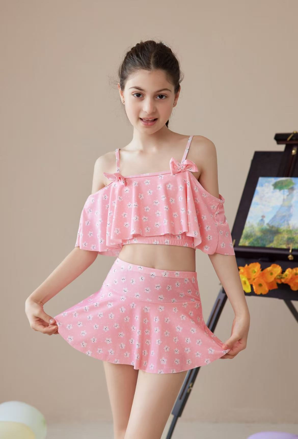 游泳衣女儿童保守中大童小清新运动泳衣套装ins风少女分体