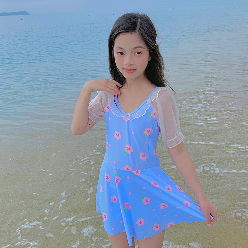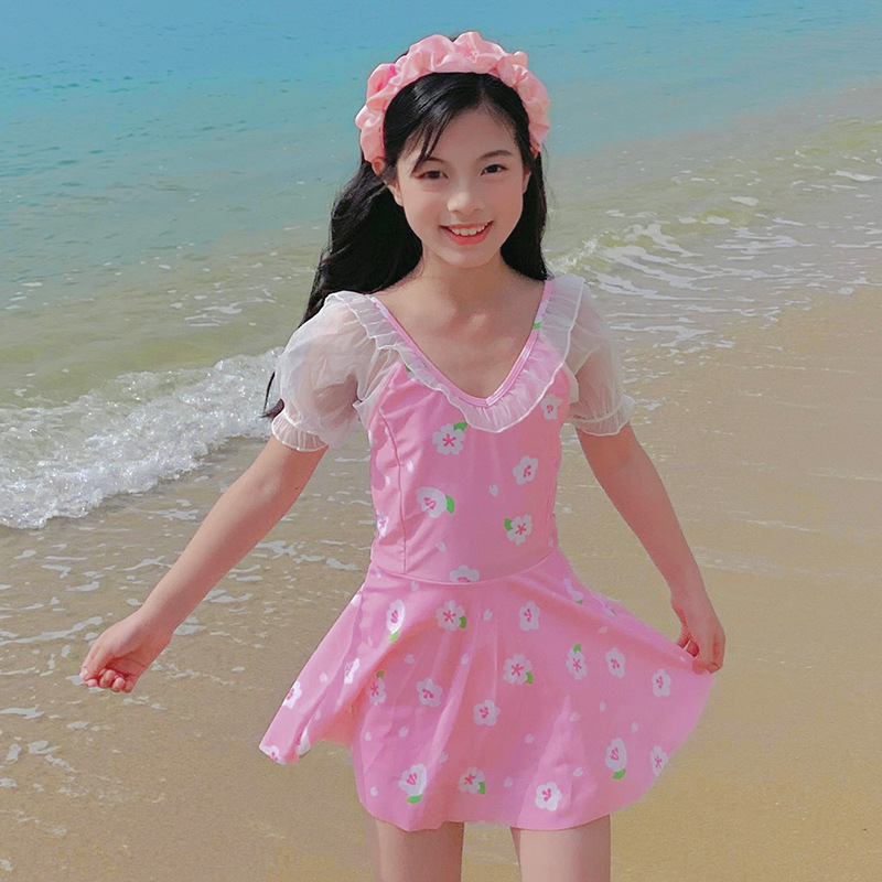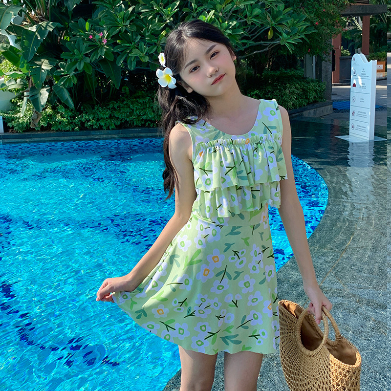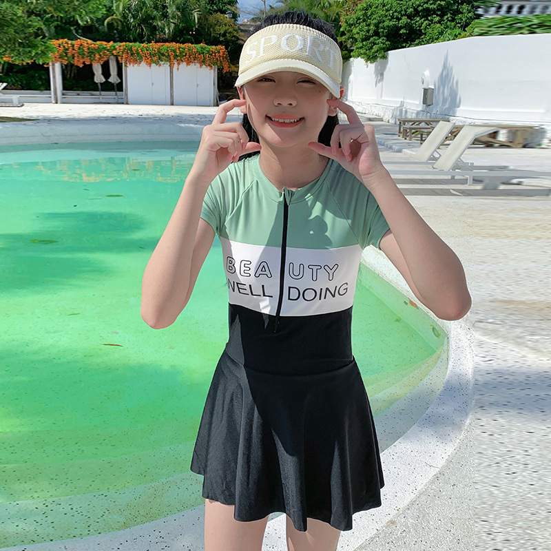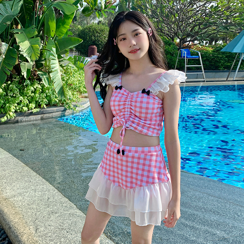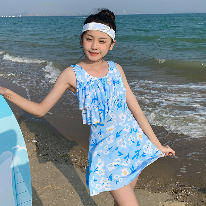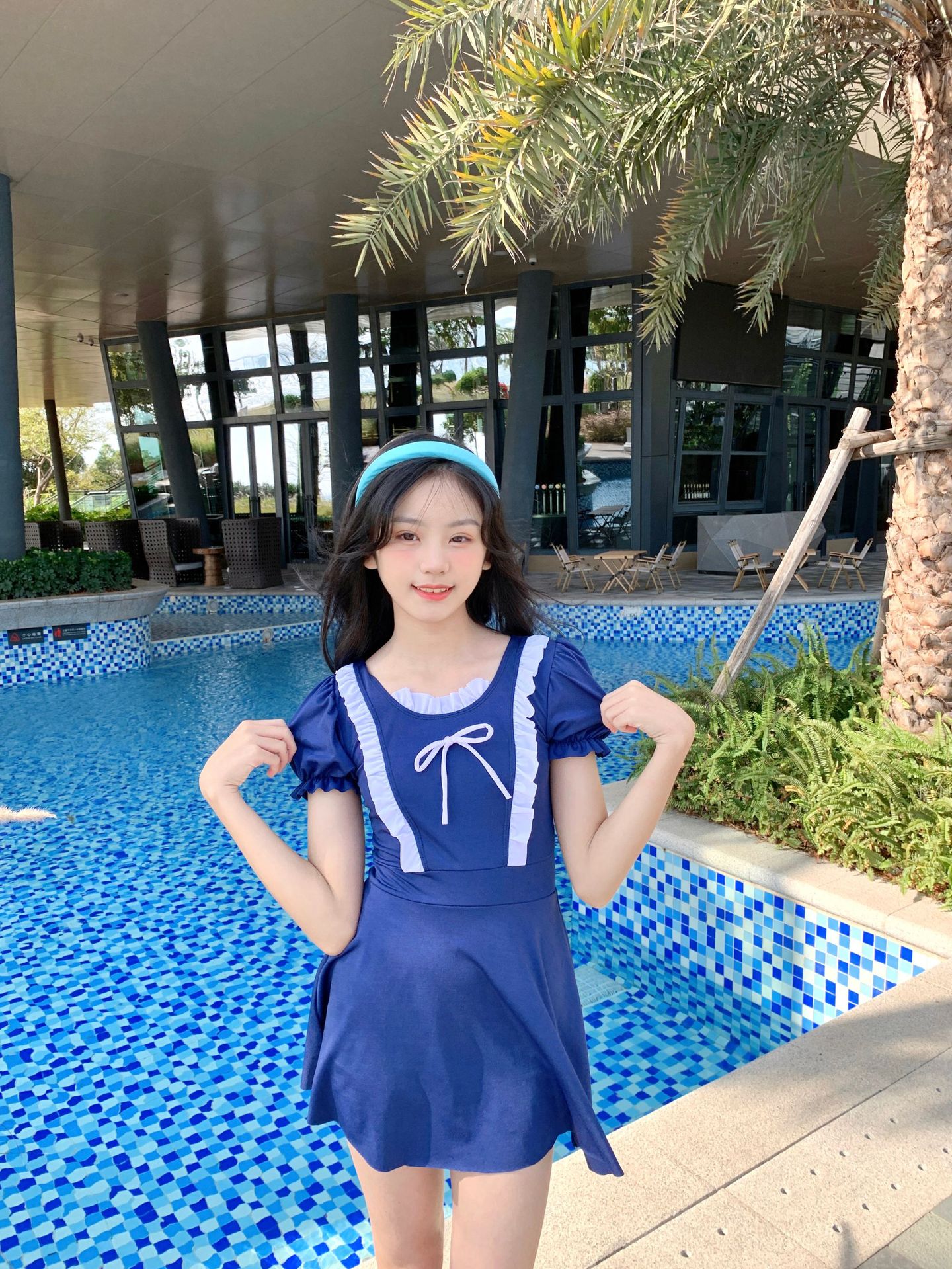 游泳衣女儿童保守中大童小清新运动泳衣套装ins风少女分体