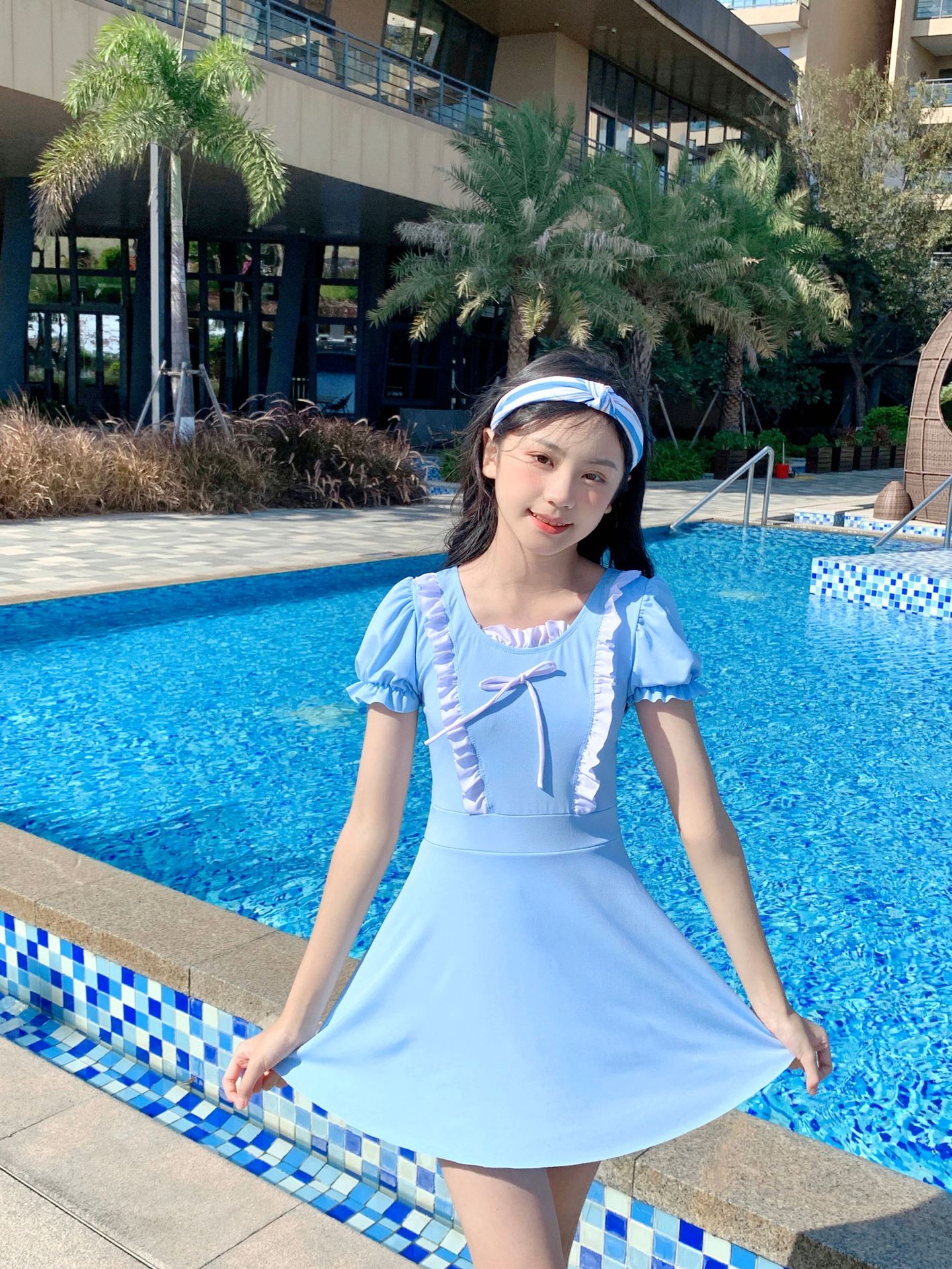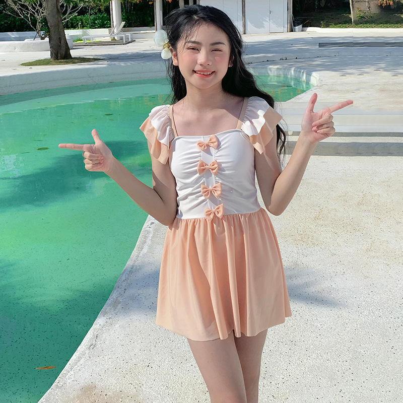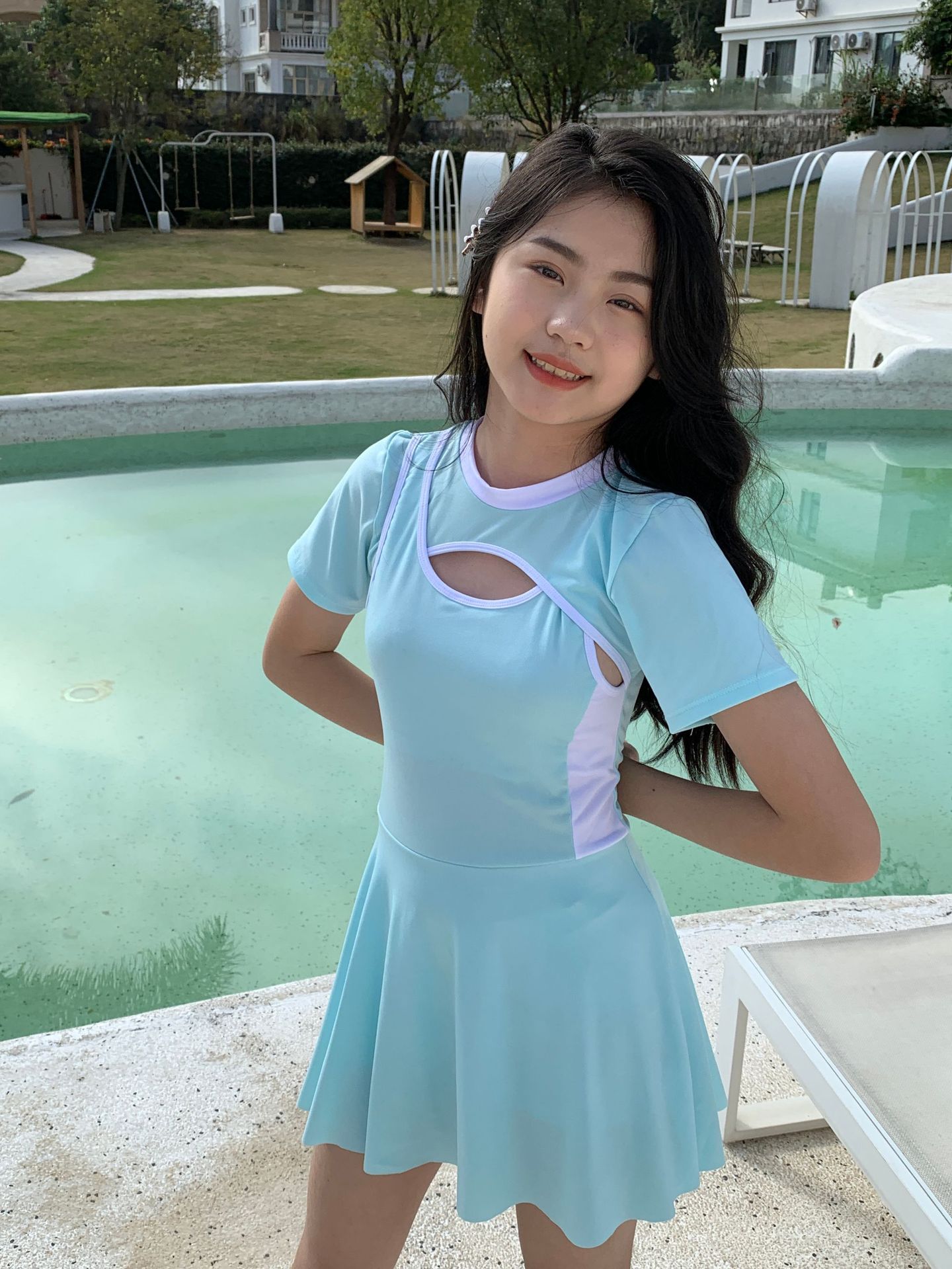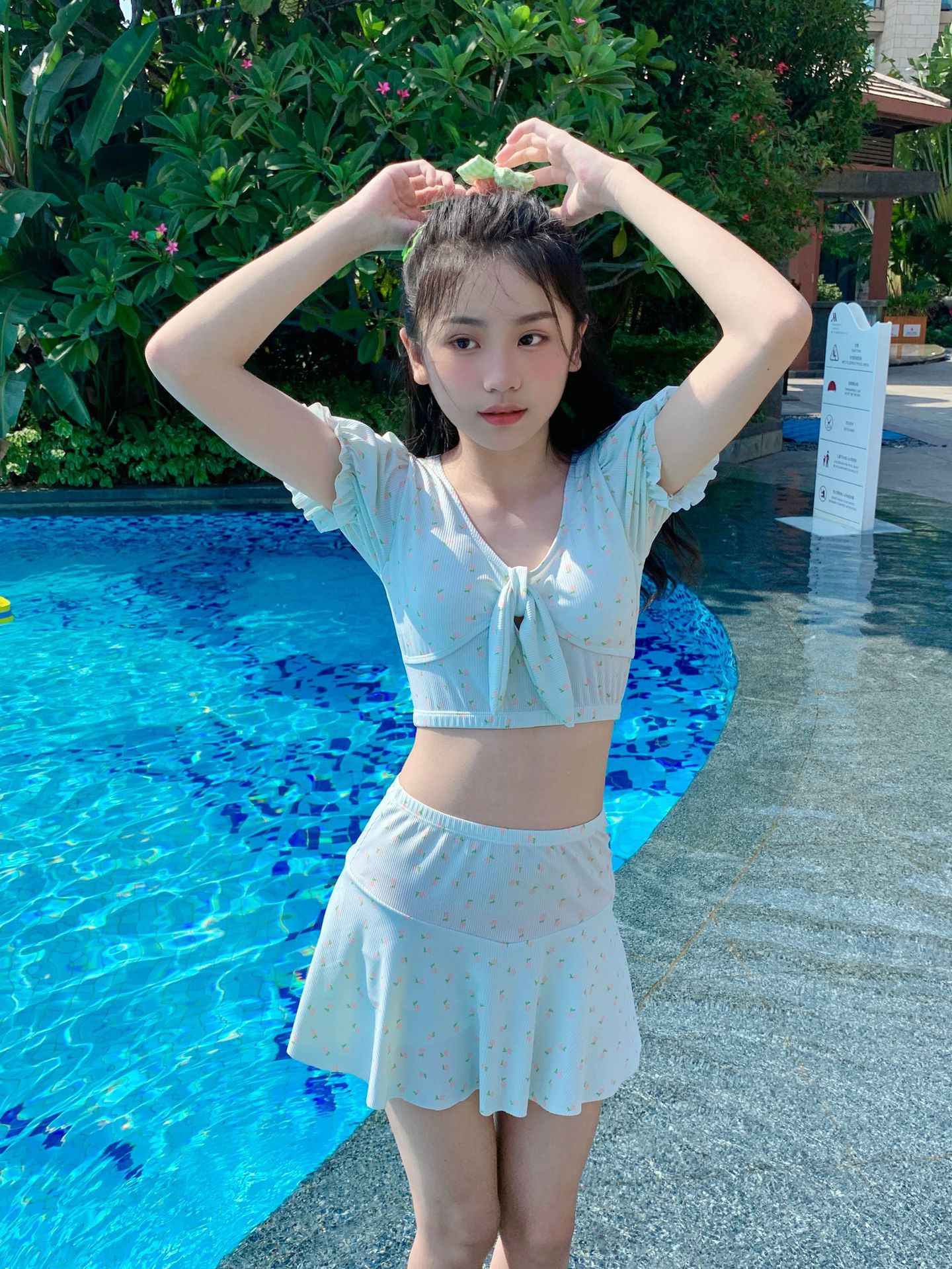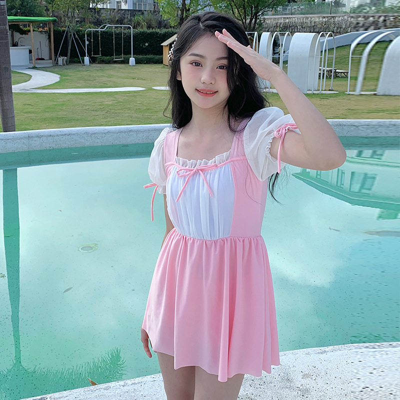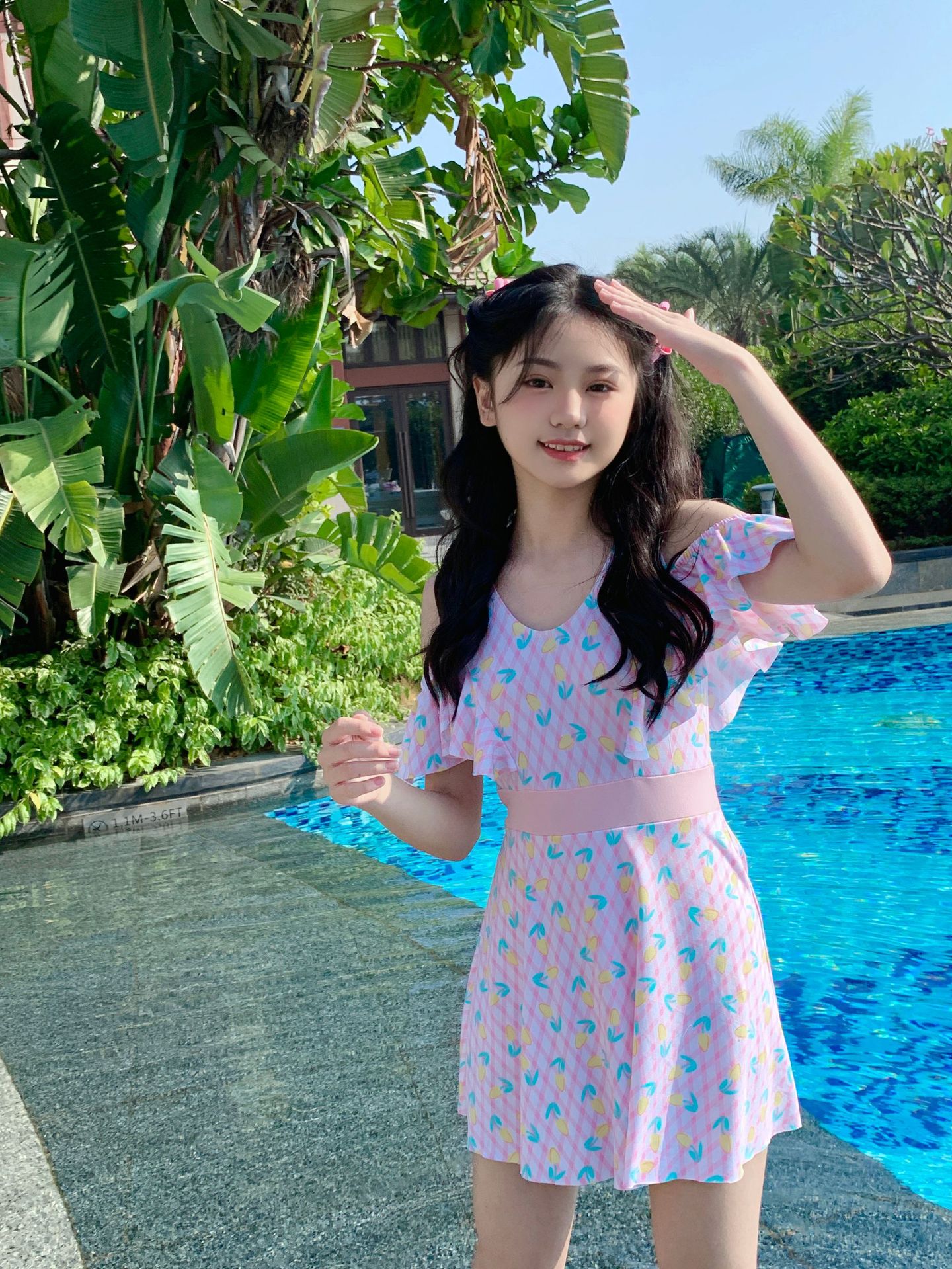 游泳衣女儿童保守中大童小清新运动泳衣套装ins风少女分体