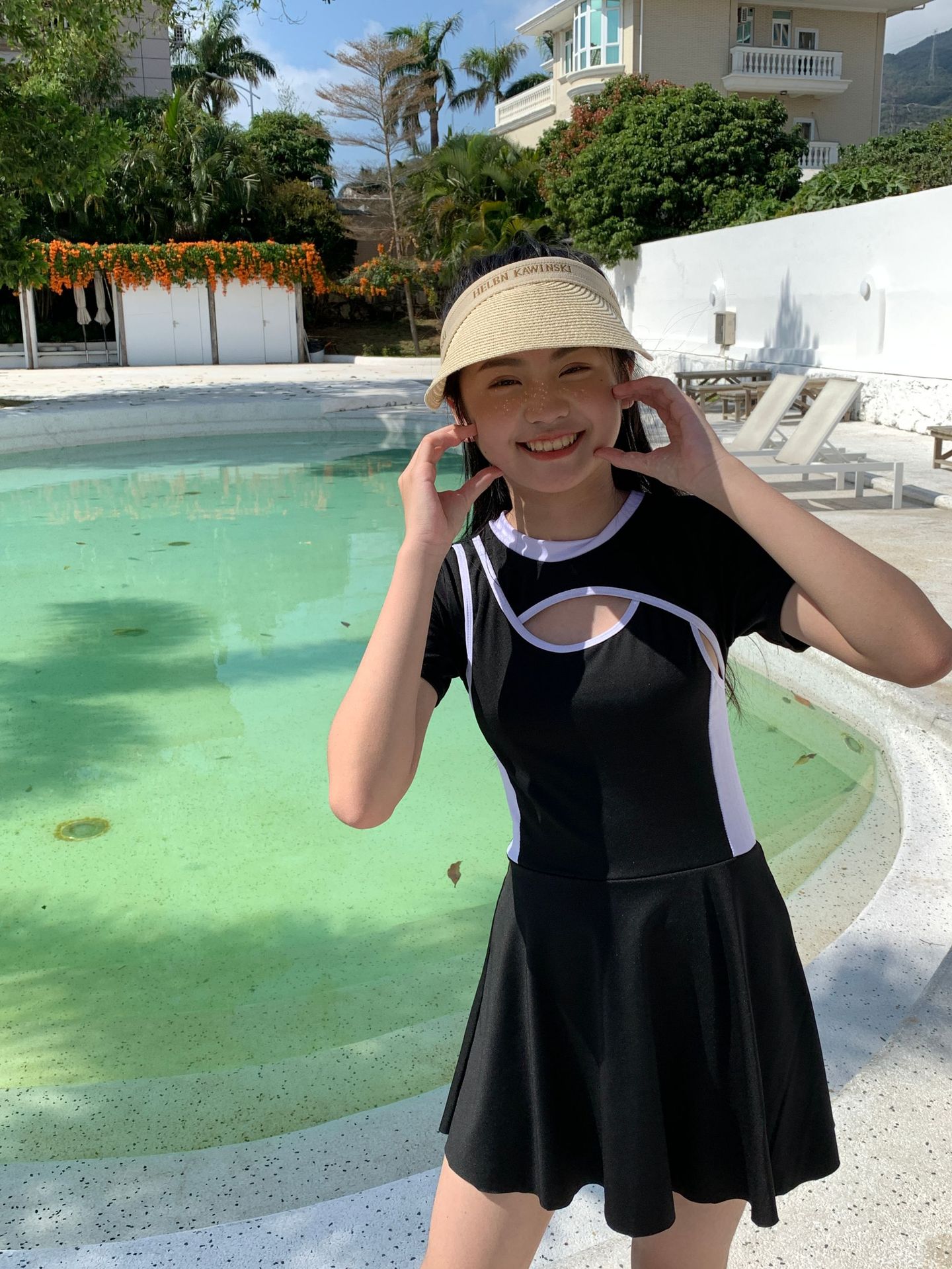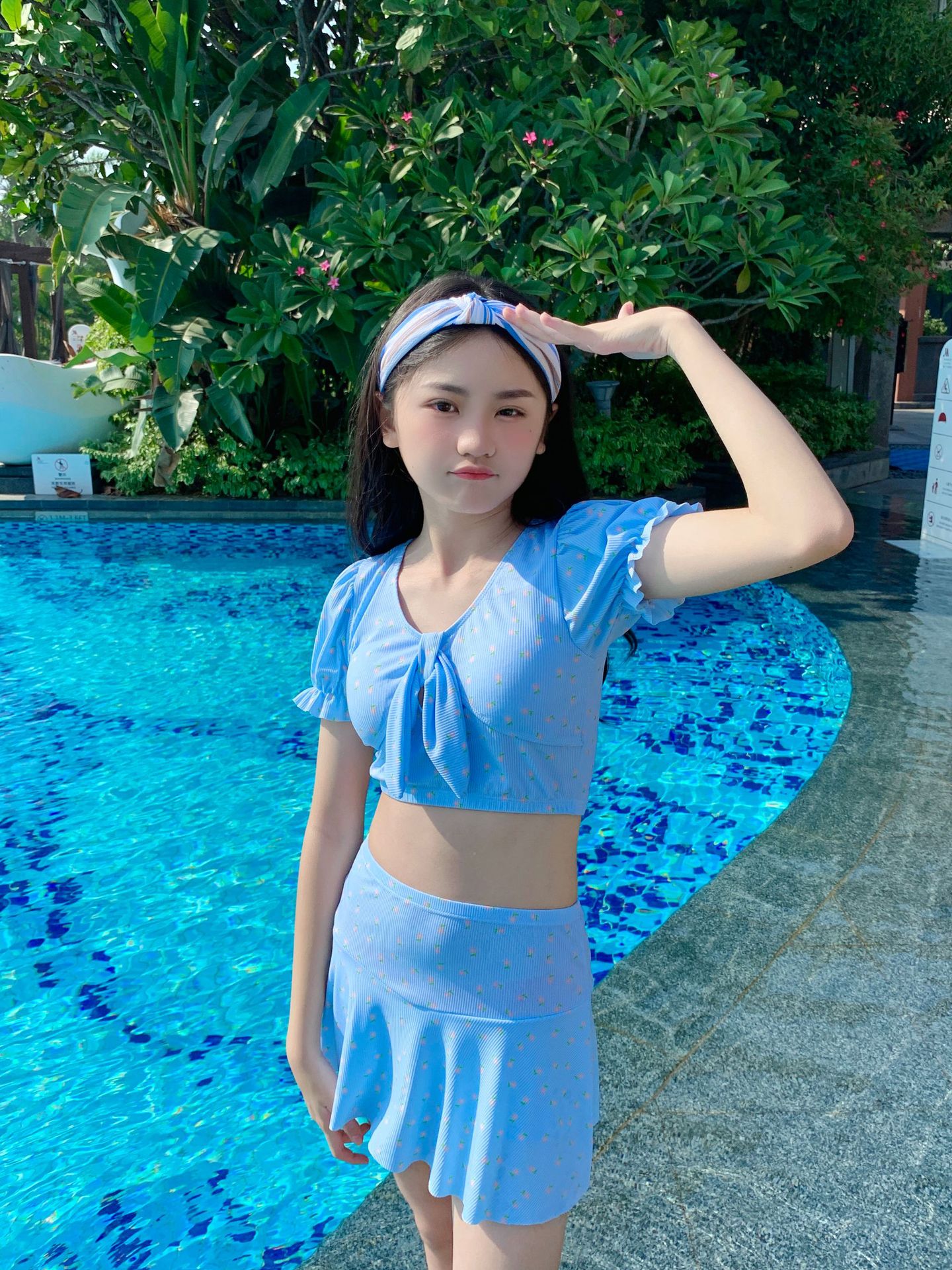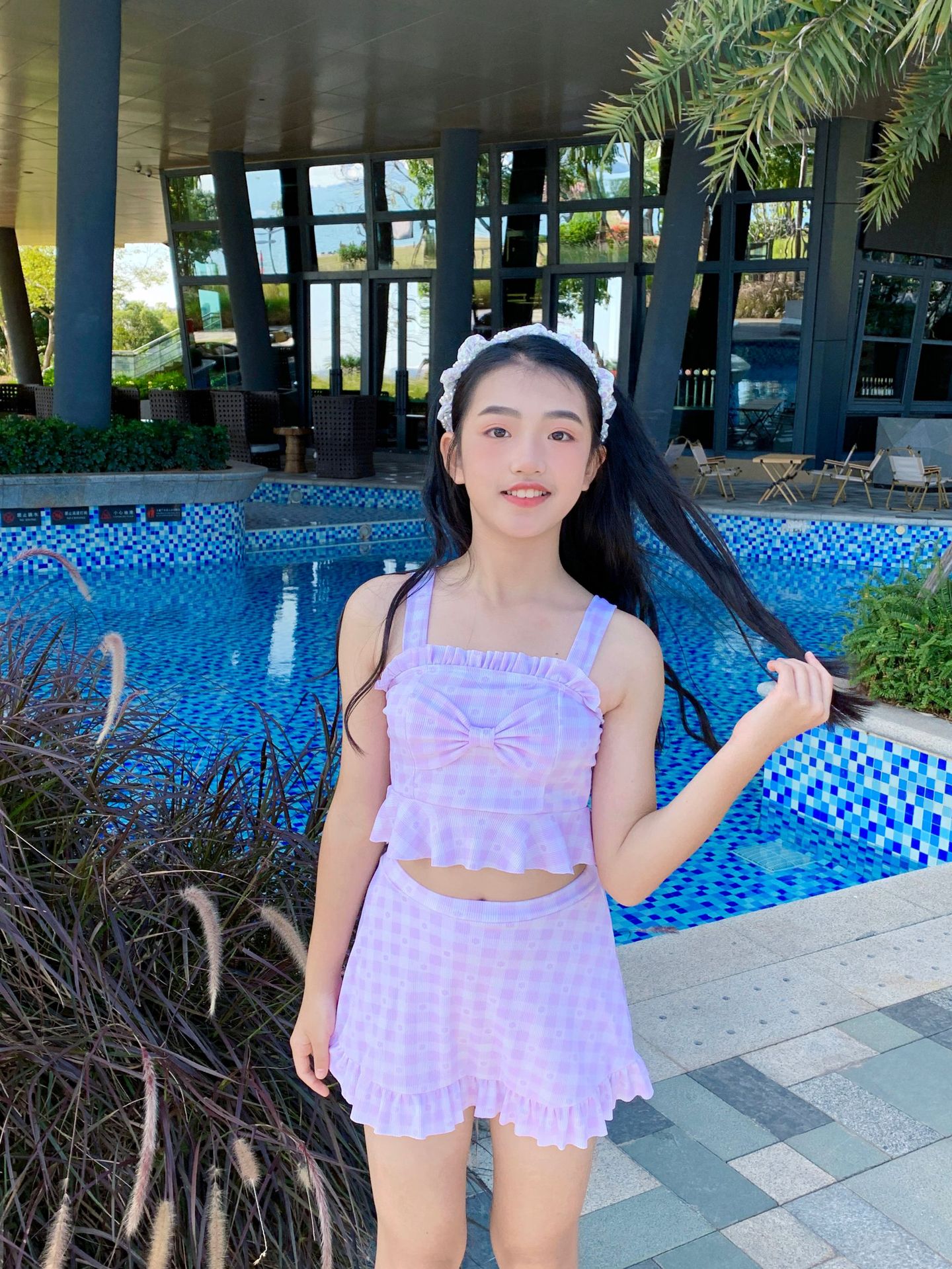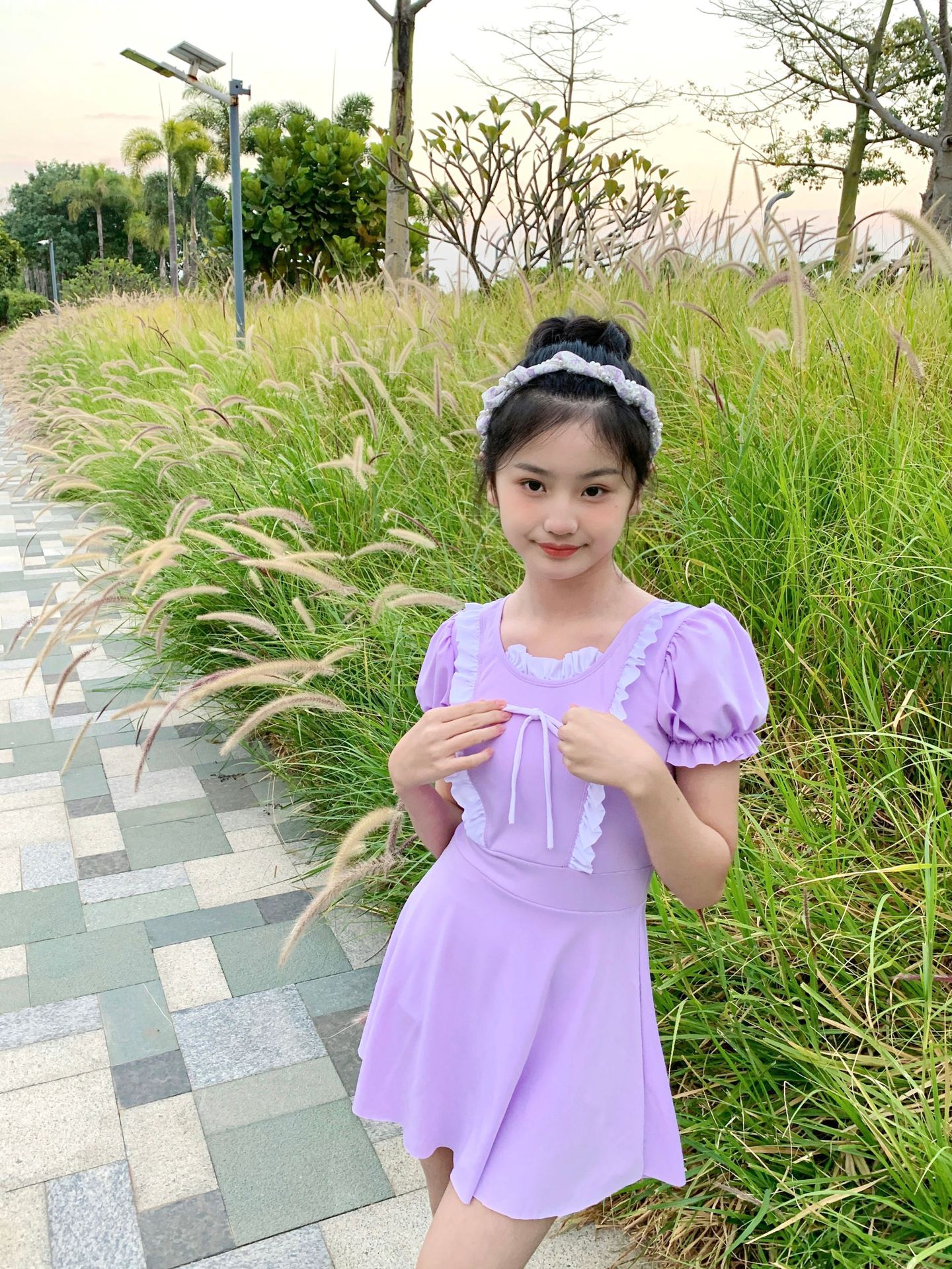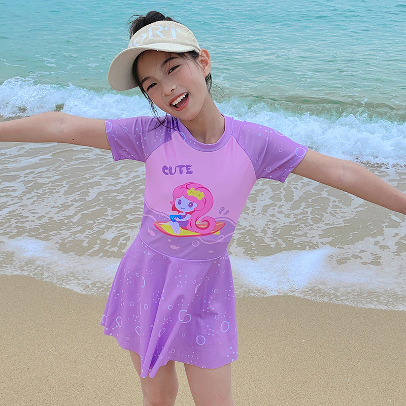 游泳衣女儿童保守中大童小清新运动泳衣套装ins风少女分体