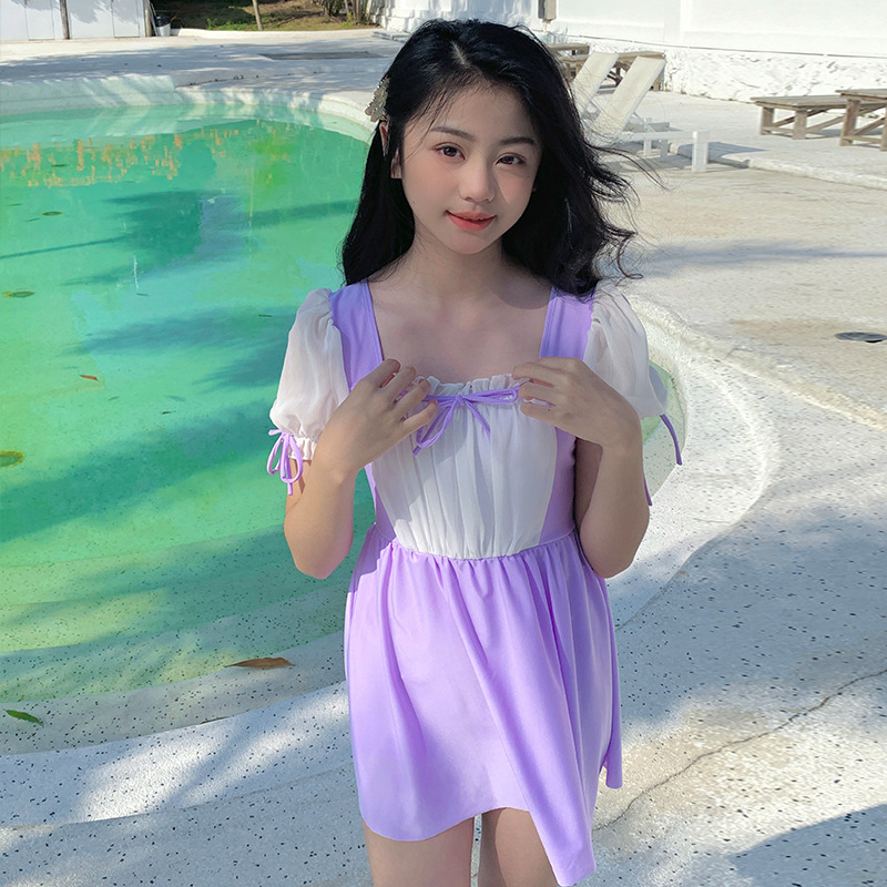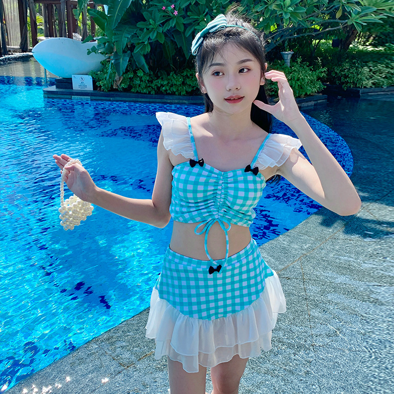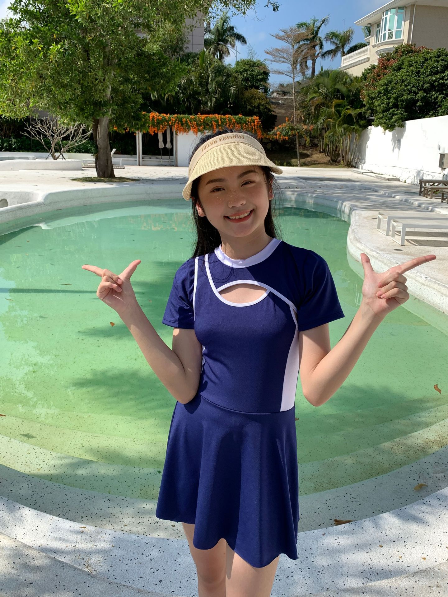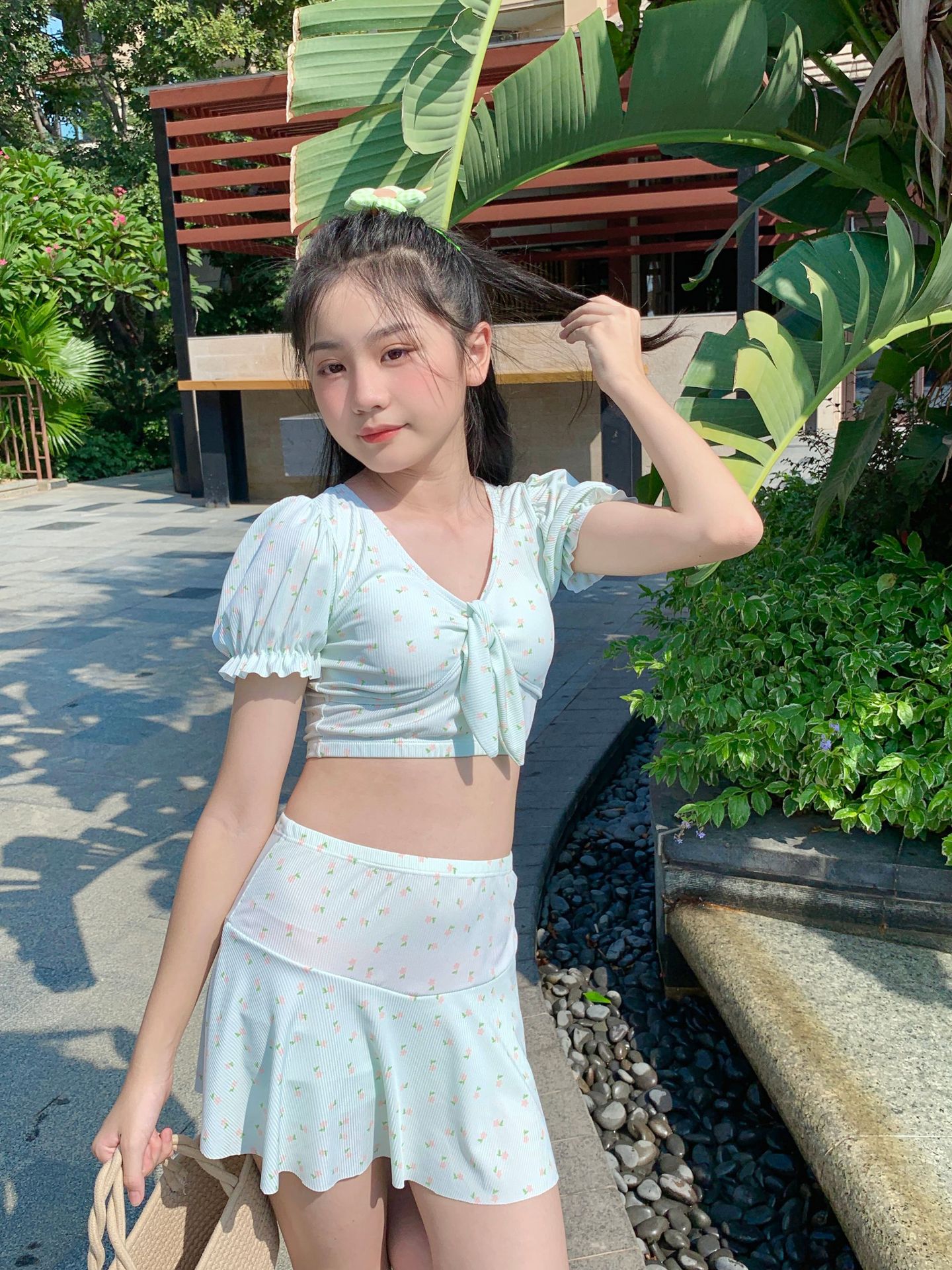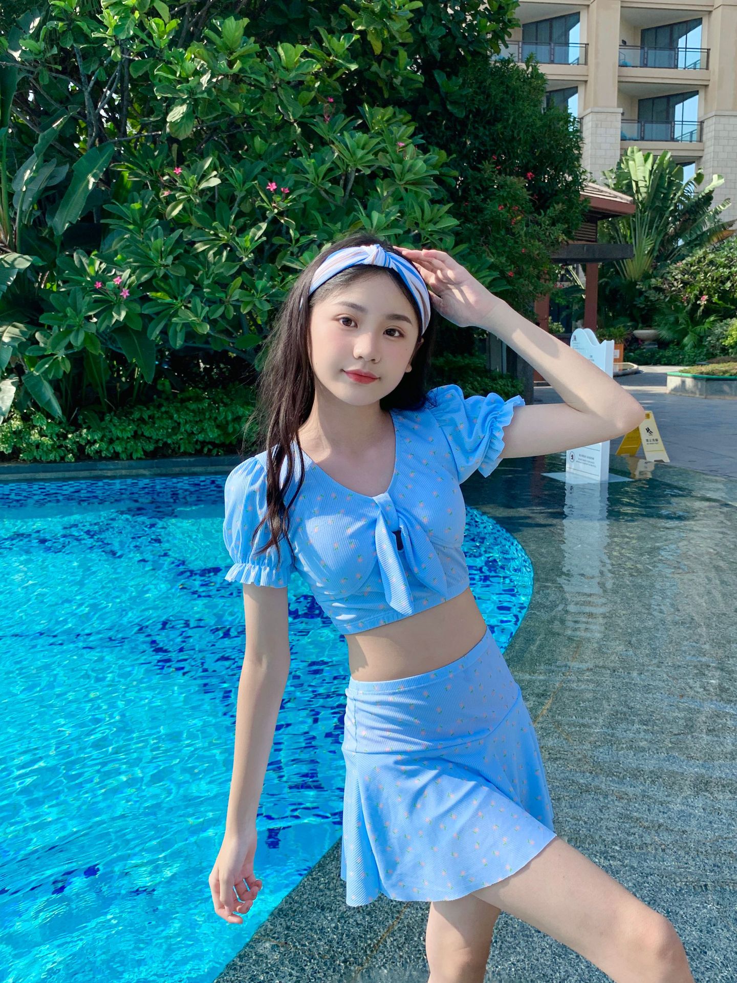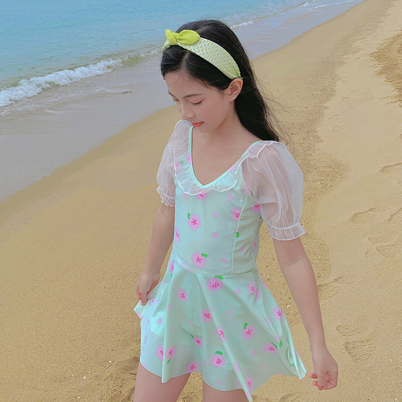 游泳衣女儿童保守中大童小清新运动泳衣套装ins风少女分体