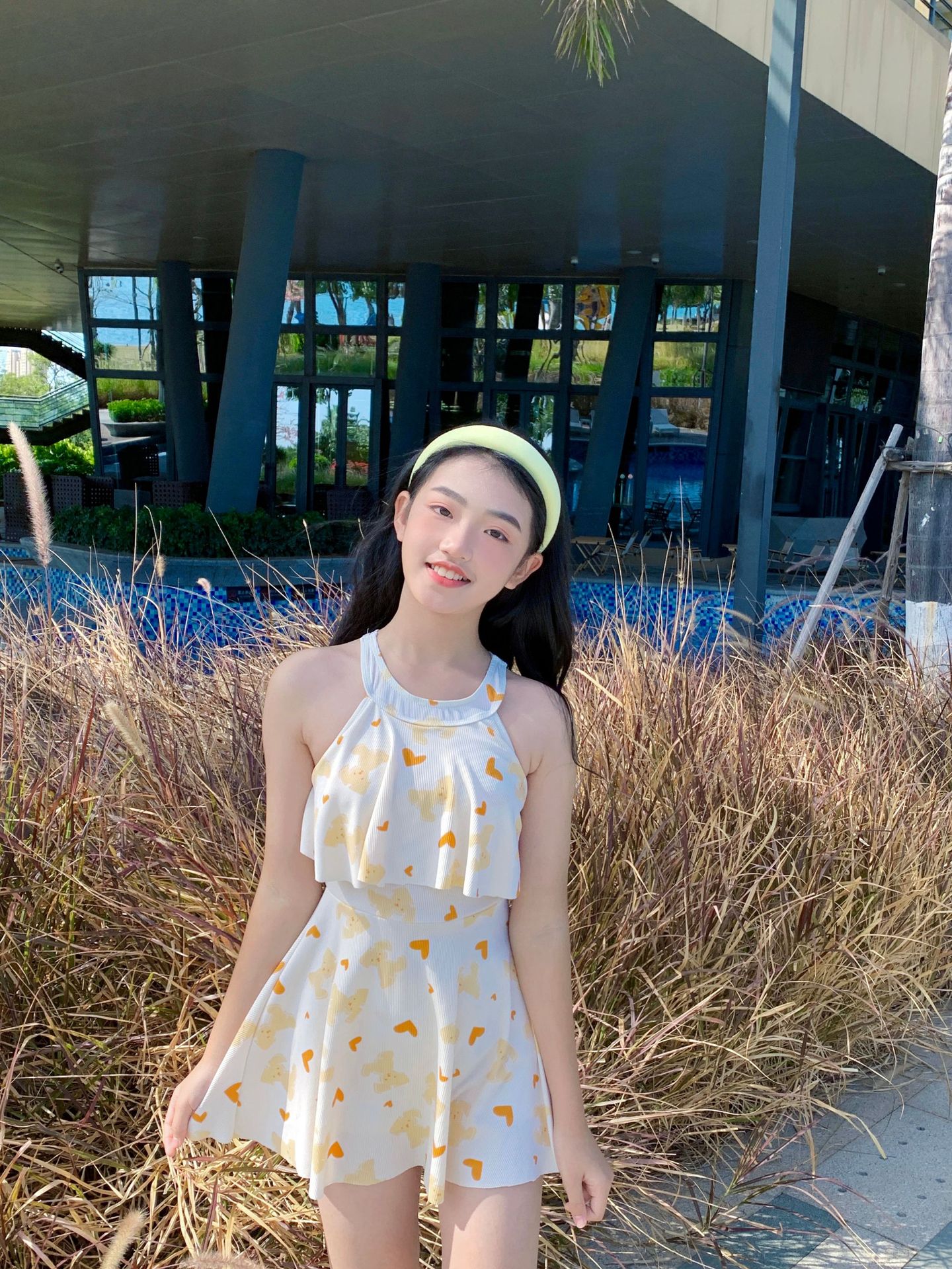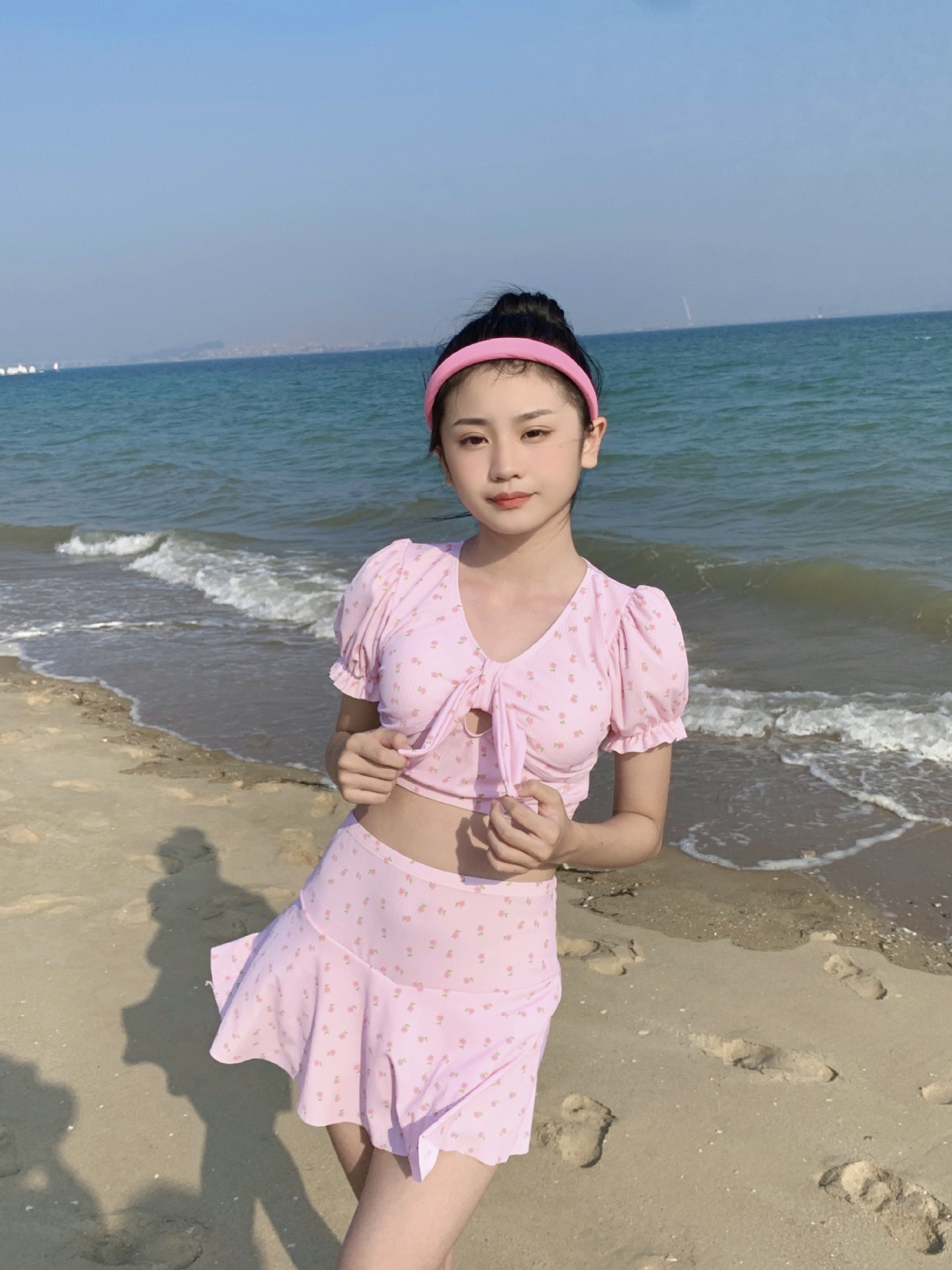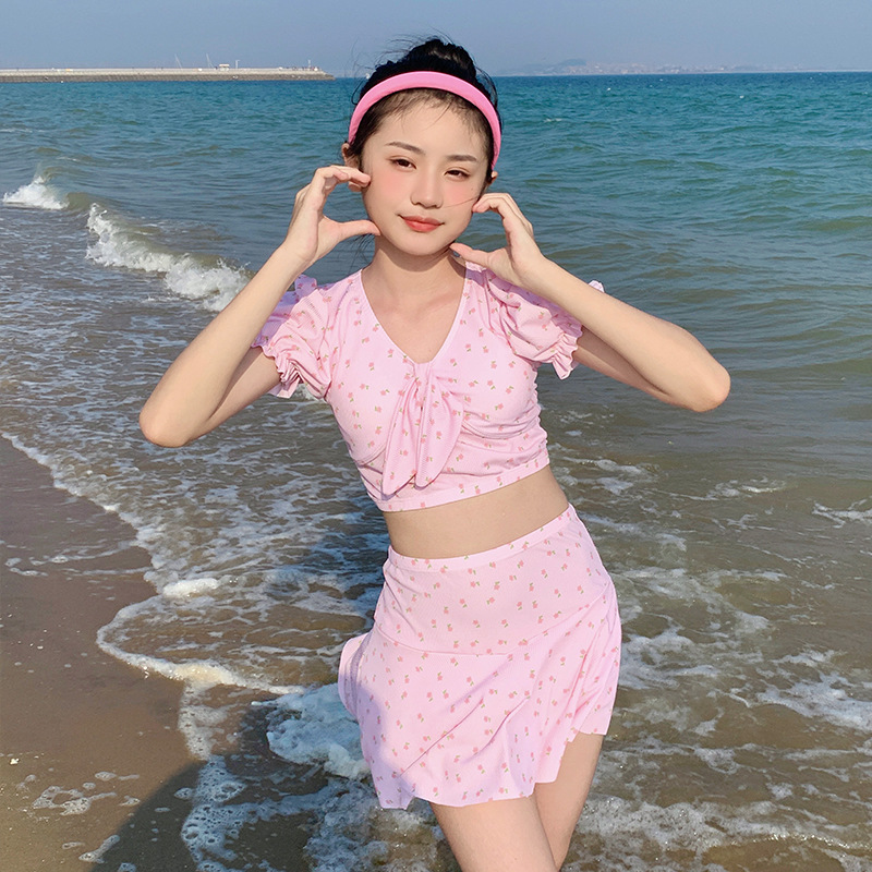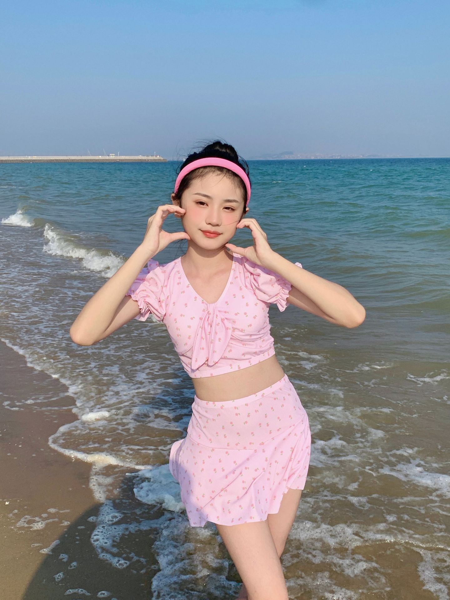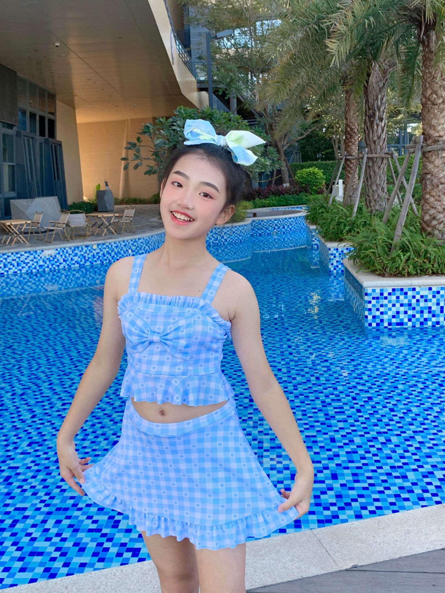 游泳衣女儿童保守中大童小清新运动泳衣套装ins风少女分体