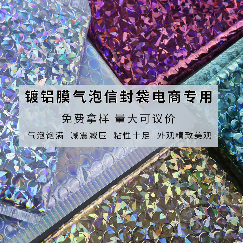 镭射气泡袋彩色镀铝膜防震泡沫电商首饰服装快递打包袋子现货工厂
