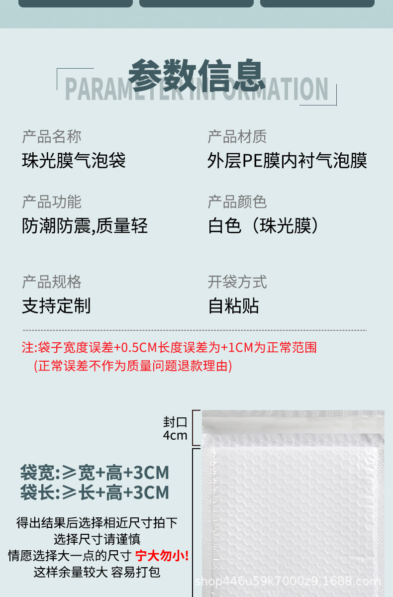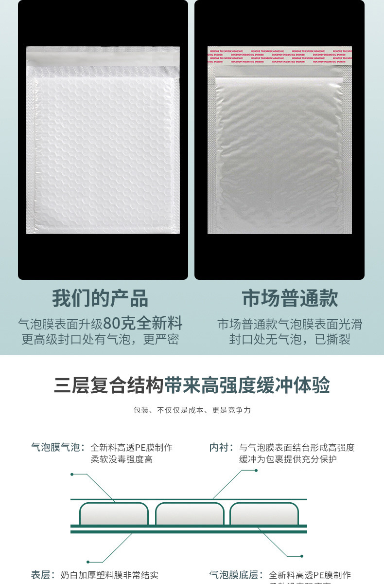 白色珠光膜气泡袋双层加厚泡泡袋快递包装打包袋自粘防水泡沫袋子