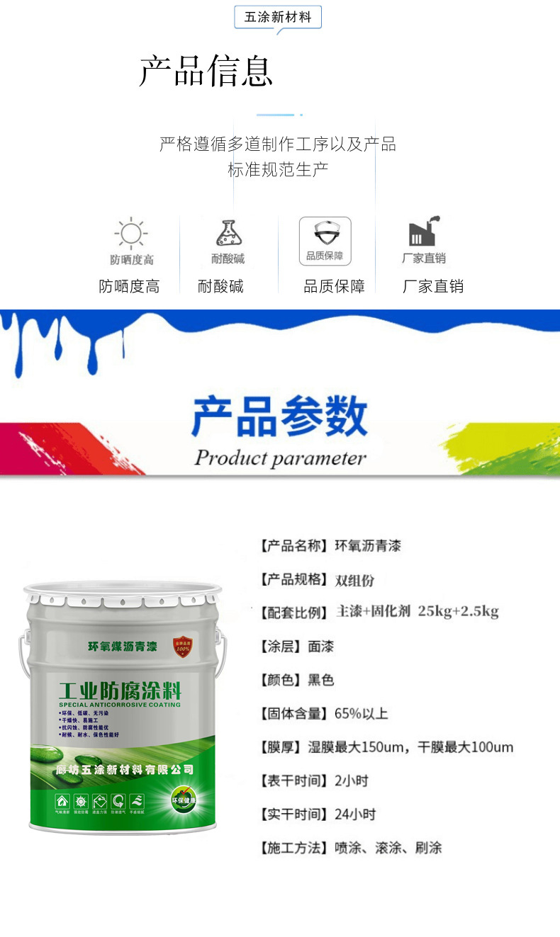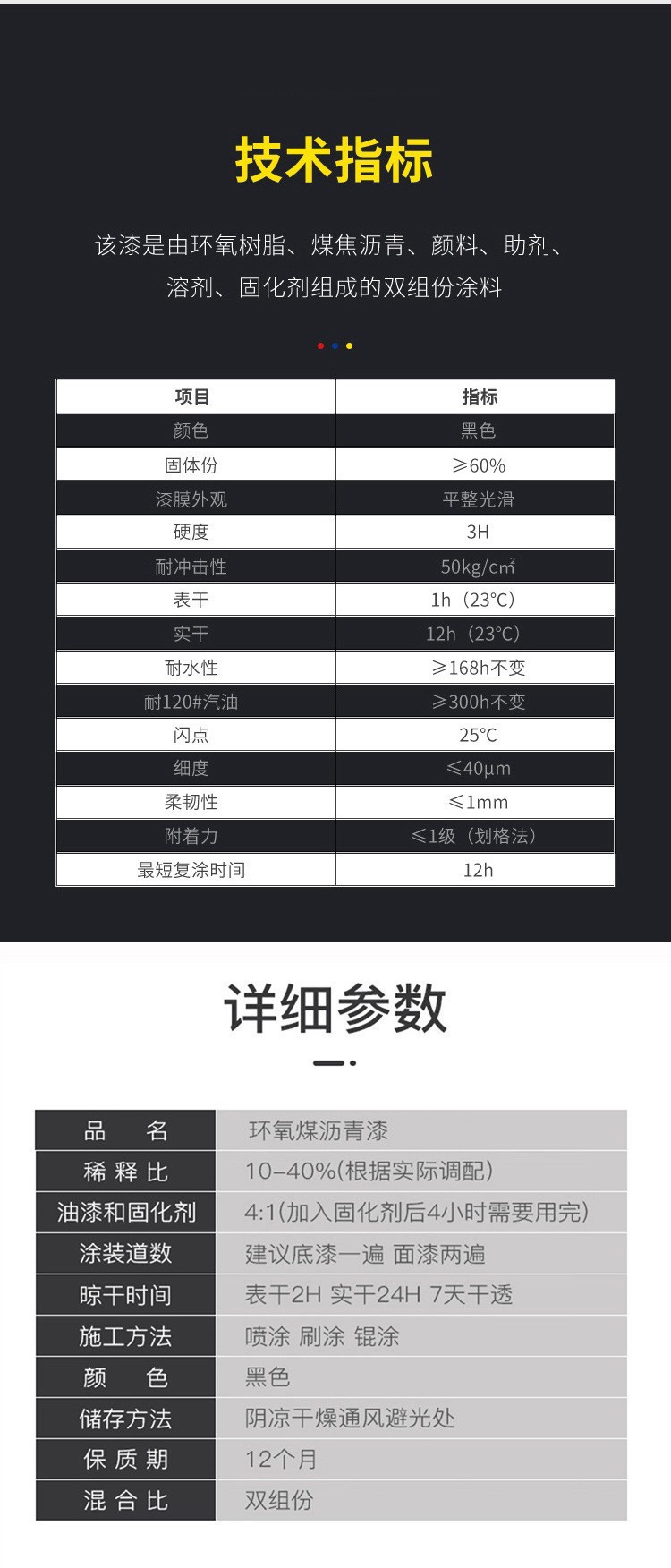 环氧煤沥青防腐漆地埋管道防腐污水池抗渗透船舶防锈油漆沥青漆