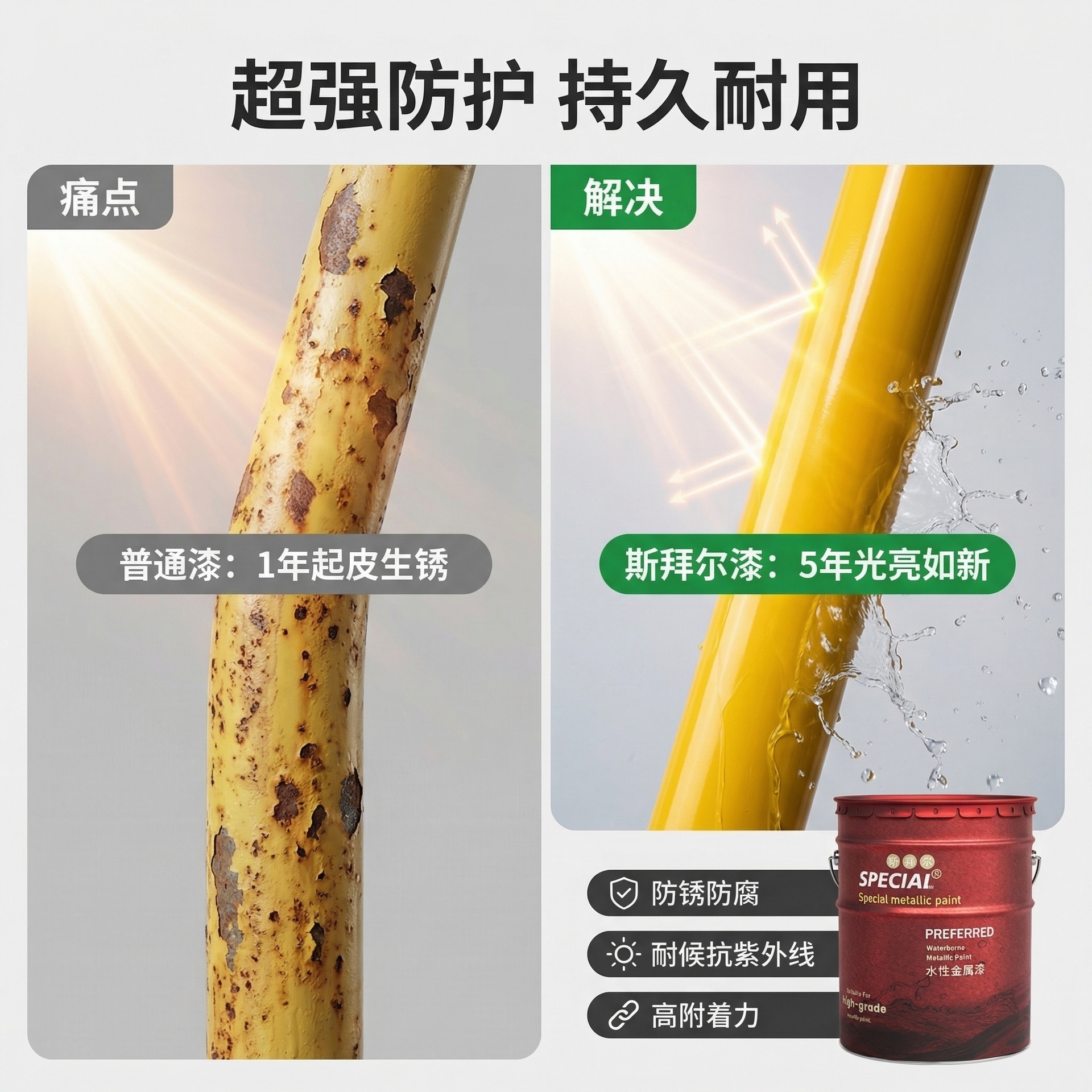 电线杆黄色油漆燃气黄天然气煤气管道翻新快干水性防锈金属漆黄色