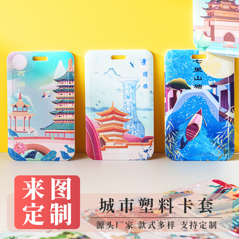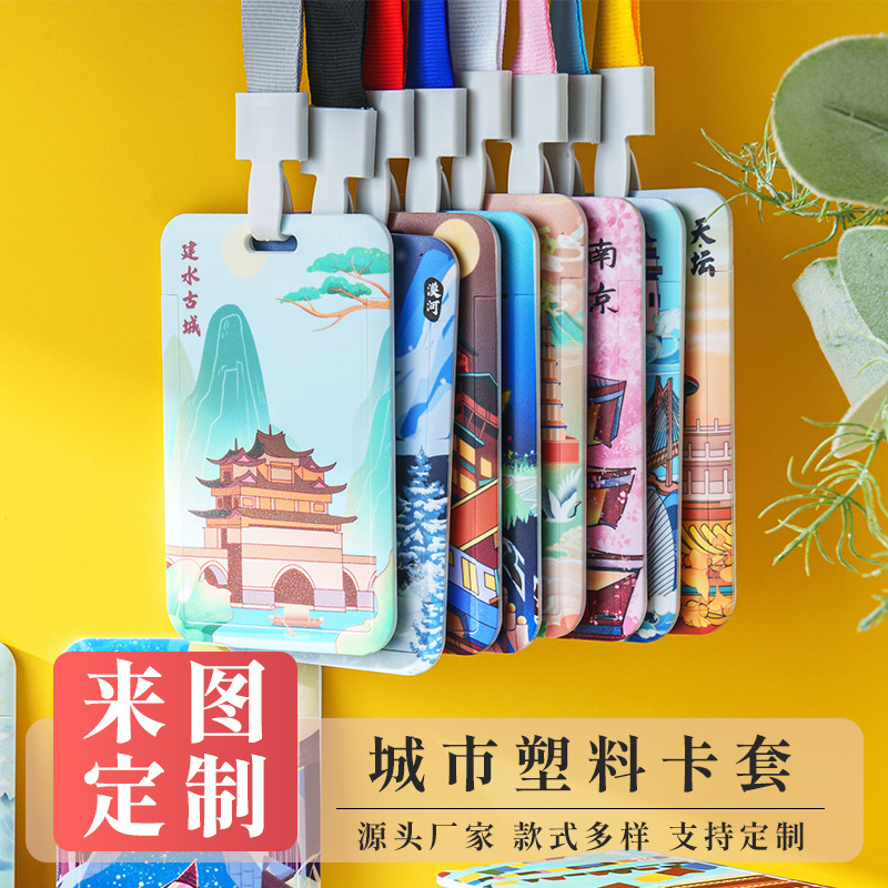 现货城市滑盖卡套批发ABS学生旅游纪念品周边文创卡牌证件卡