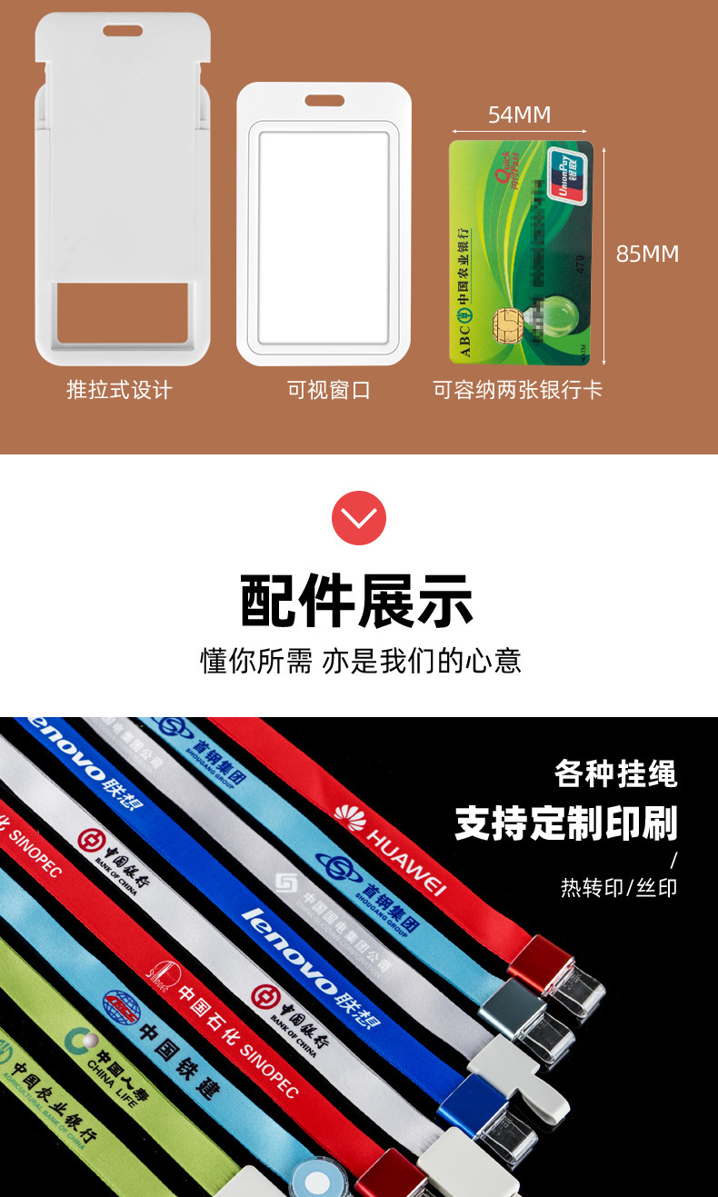 工作证UV印刷工作牌厂牌卡套工牌彩印卡套滑盖证件卡套挂绳定制