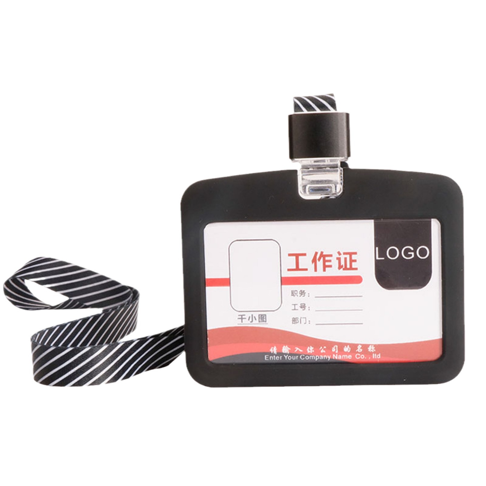 厂家直销现货硅胶卡套横版可印刷工作证展示牌胸卡公交卡挂绳涤纶