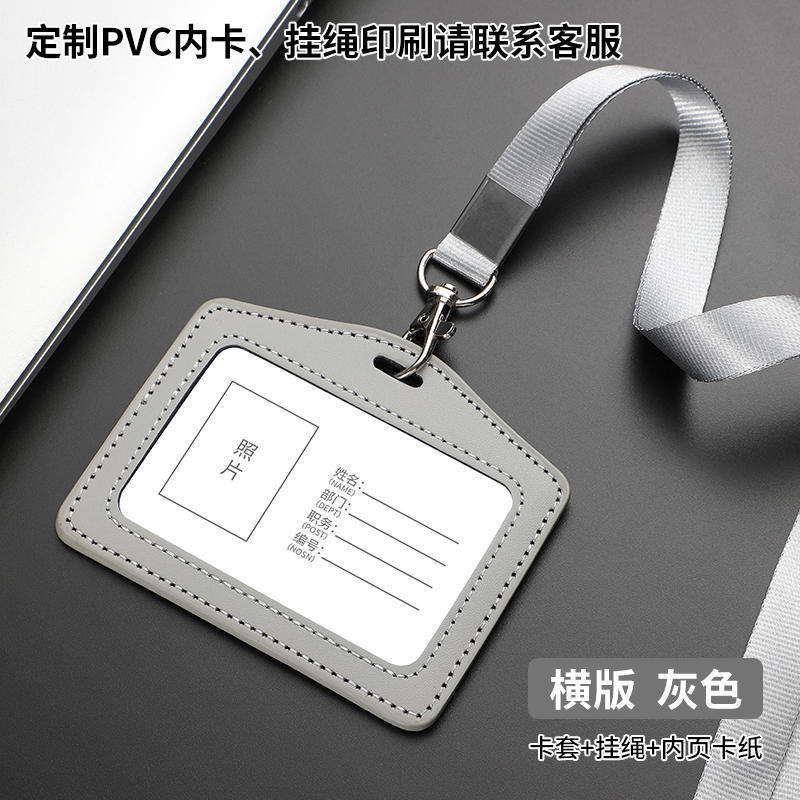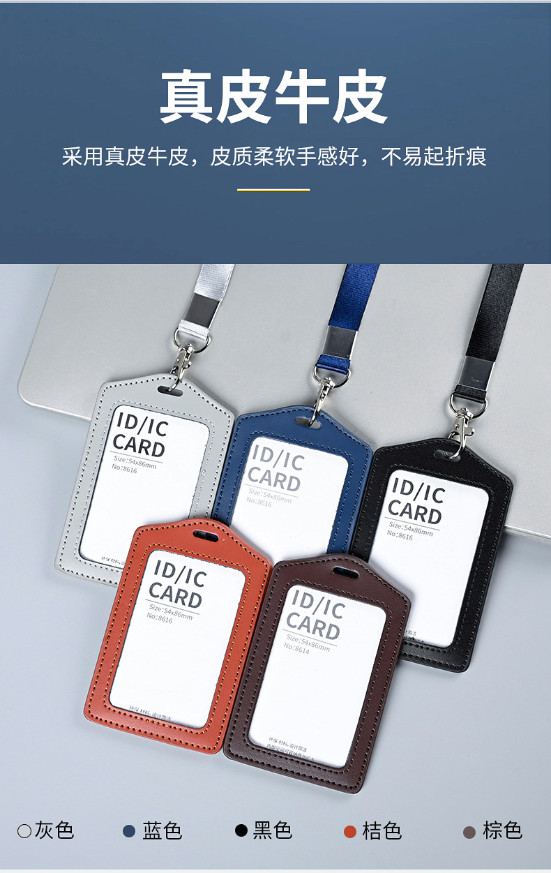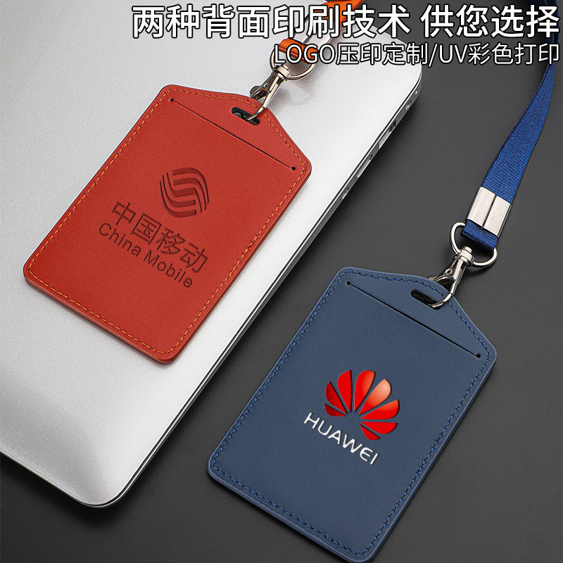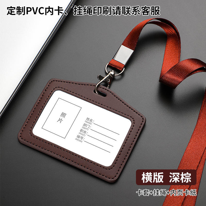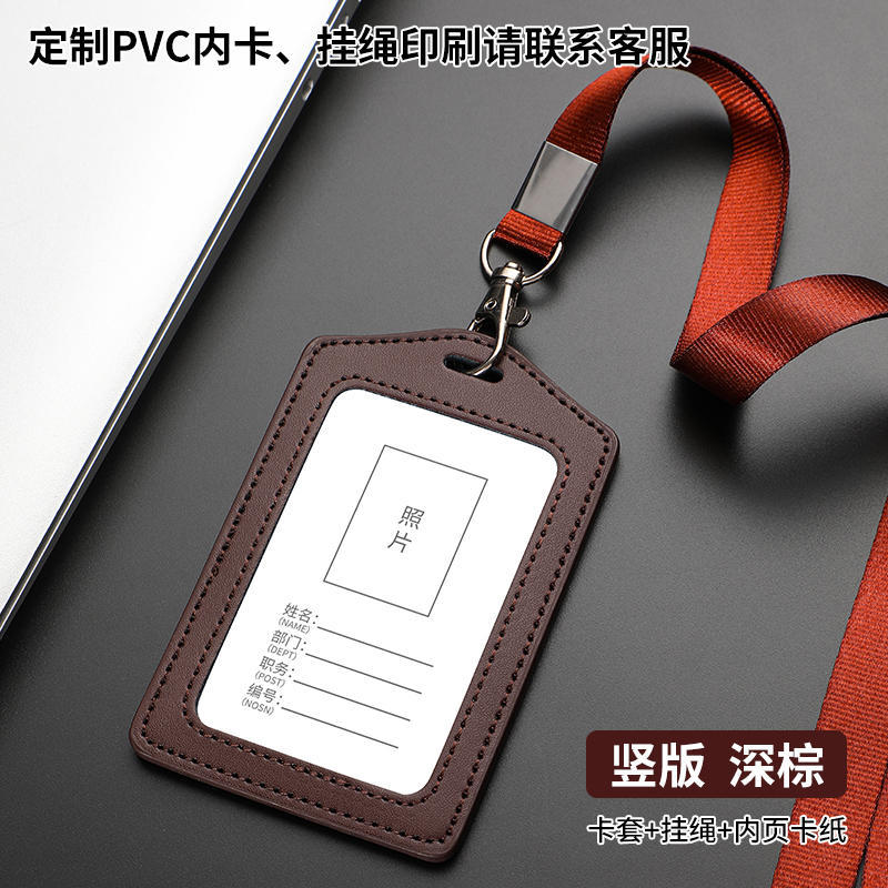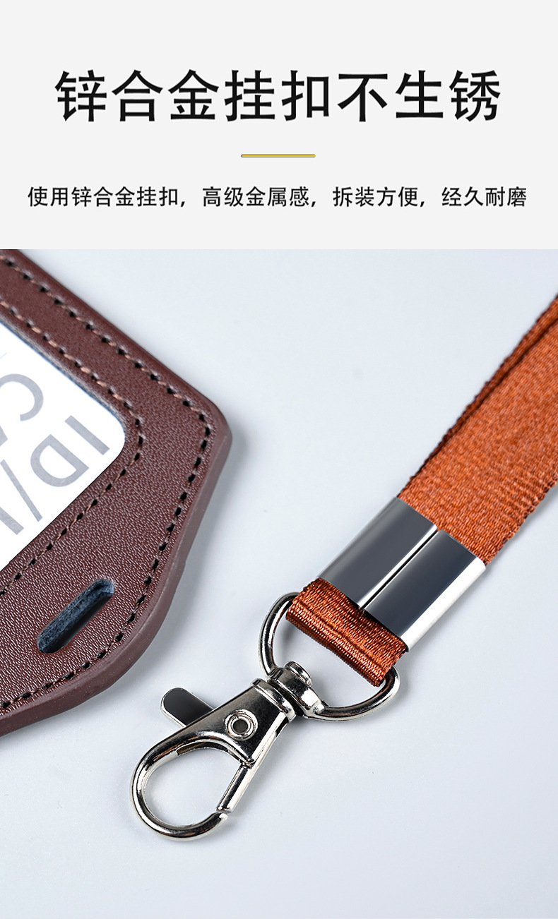 工厂真皮卡套带挂绳工牌胸卡皮质保护套工作证员工卡胸牌现货批发