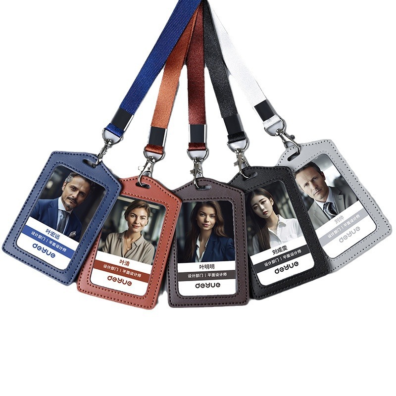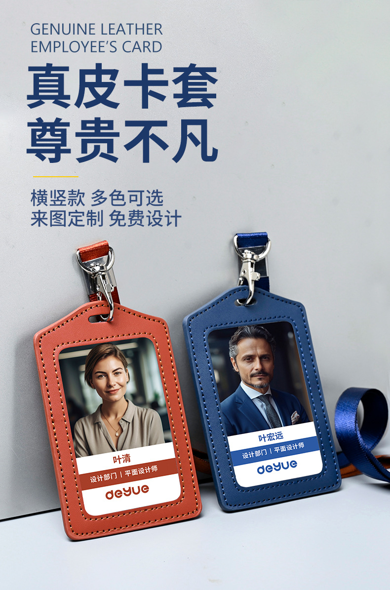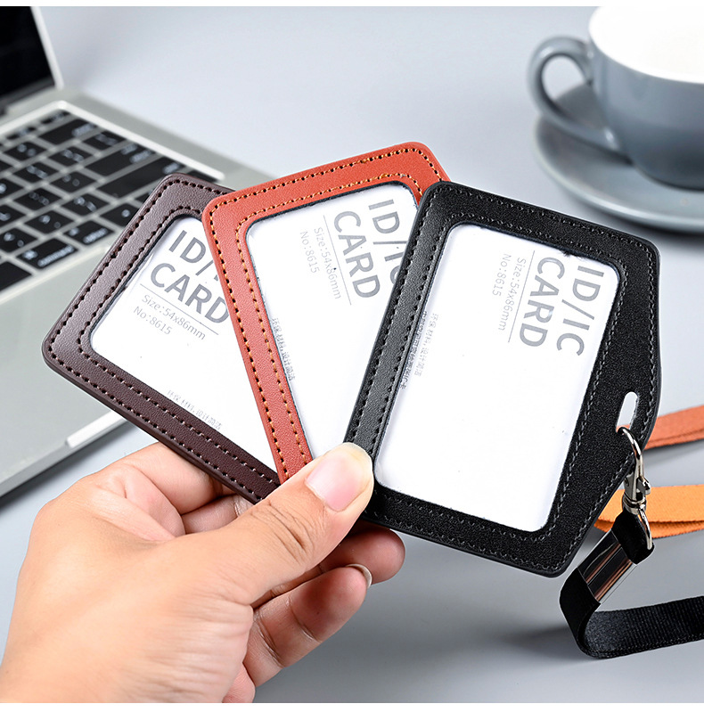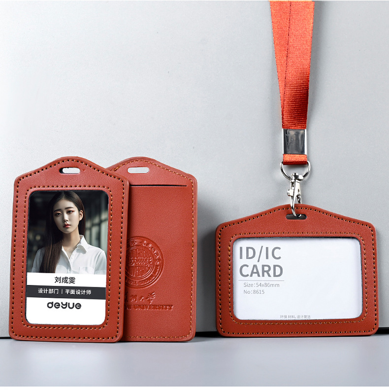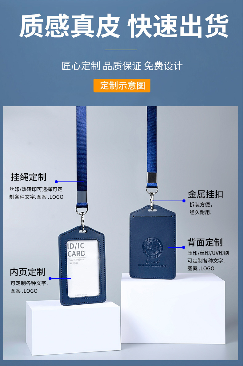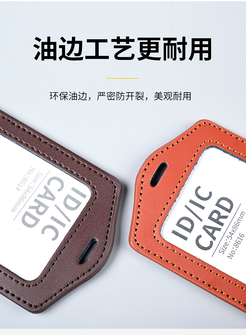 工厂真皮卡套带挂绳工牌胸卡皮质保护套工作证员工卡胸牌现货批发