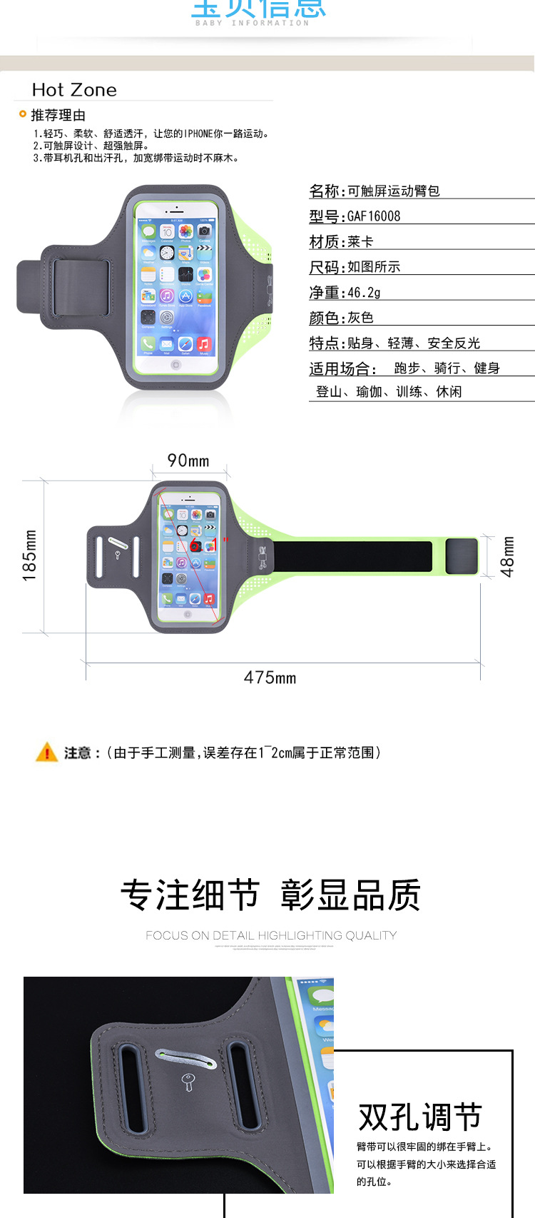 跨境户外运动男女防水轻薄弹力莱卡健身触屏专业跑步手机臂包臂带